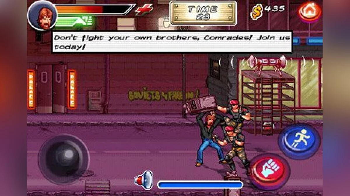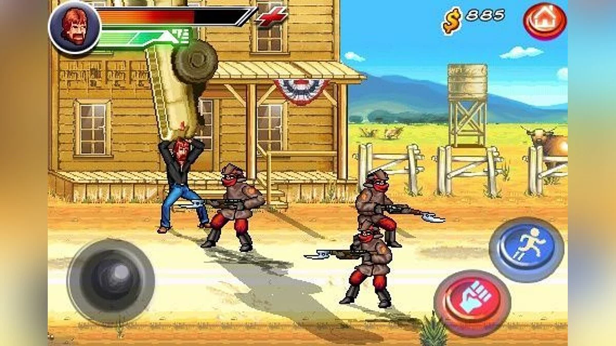 Забудьте про йогу и медитацию — настоящий путь к просветлению лежит через круговые удары ногой! Представляем вам Chuck Norris: Bring on the Pain — мобильную игру-легенду, где вы化身 легендарного Чака Норриса, чтобы лично разобраться с коммунистической угрозой, олицетворяемой самим Фиделем Кастро и Ким Чен Иром. Да-да, вы не ослышались. Пока остальные герои видеоигр спасают принцесс или гоняются за артефактами, Чак Норрис просто делает то, что умеет лучше всего: отправляет в нокаут целые армии злодеев одним взглядом (ну, или парой десятков ударов кулаком и ногой). Эта экшен-игра в жанре beat 'em up — это не просто развлечение, это дань уважения всем мемам и фактам о Чаке, которые взорвали интернет задолго до TikTok.