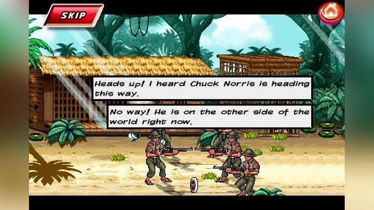 Геймплей Chuck Norris: Bring on the Pain — это чистая, неразбавленная мужественность в лучших традициях классических аркад вроде "Streets of Rage" или "Final Fight", но с фирменным норрисовским колоритом. Вы будете продираться сквозь джунгли, полные безликих головорезов, которые, судя по всему, даже не знают, с кем связались. Ваш арсенал — это не оружие, а ваше собственное тело, отточенное годами боевых искусств. Вас ждут простые, но невероятно удовлетворительные комбо, эпические добивания и полностью разрушаемое окружение. Хотите сломать врага пополам об стол? Пожалуйста! Хотите использовать его же товарища как бейсбольную биту? В этом мире Чака Норриса всё возможно! Главное — спасать заложников и не давать злу ни единого шанса на победу.
