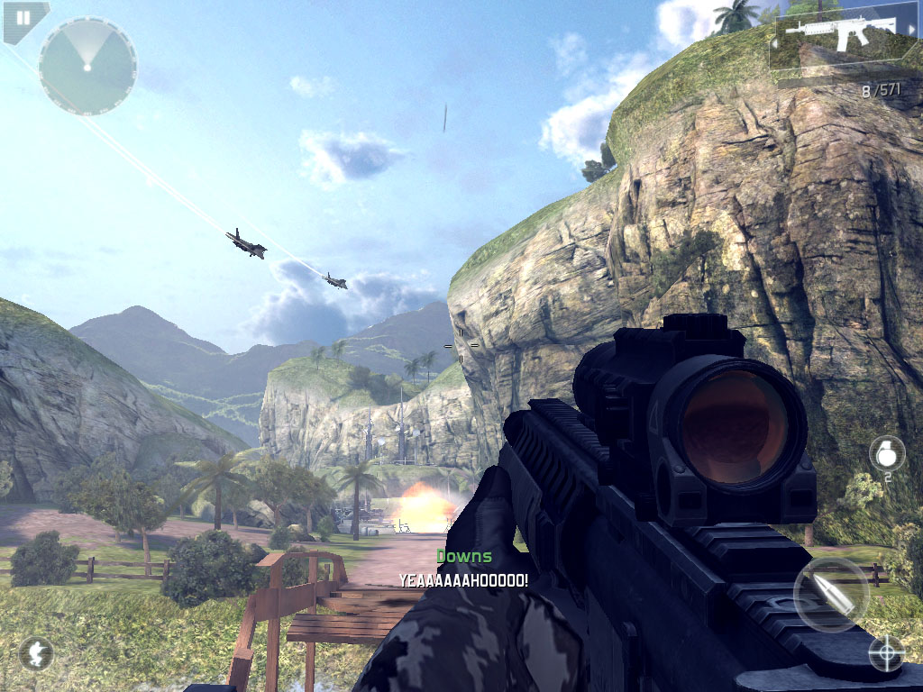 Геймплей Modern Combat 4: Zero Hour — это чистый, неразбавленный экшен в лучших традициях жанра FPS. Вас ждут захватывающие одиночные миссии, где вы будете штурмовать вражеские базы, снайперствовать с крыш и даже управлять тяжелой техникой. А если вам покажется, что спасать мир в одиночку — дело неблагодарное, добро пожаловать в многопользовательский режим! Здесь вы сможете сразиться с друзьями или игроками со всего мира в различных режимах: от классического Team Deathmatch до напряженного Capture the Flag. Игра предлагает огромный арсенал оружия — от верных AK и M4 до гранатометов и снайперских винтовок, каждое из которых можно кастомизировать под свой стиль игры. А продуманная система управления и помощь при наведении (aim assist) позволят даже новичкам чувствовать себя как Рэмбо, а не как беспомощный турист в зоне боевых действий.