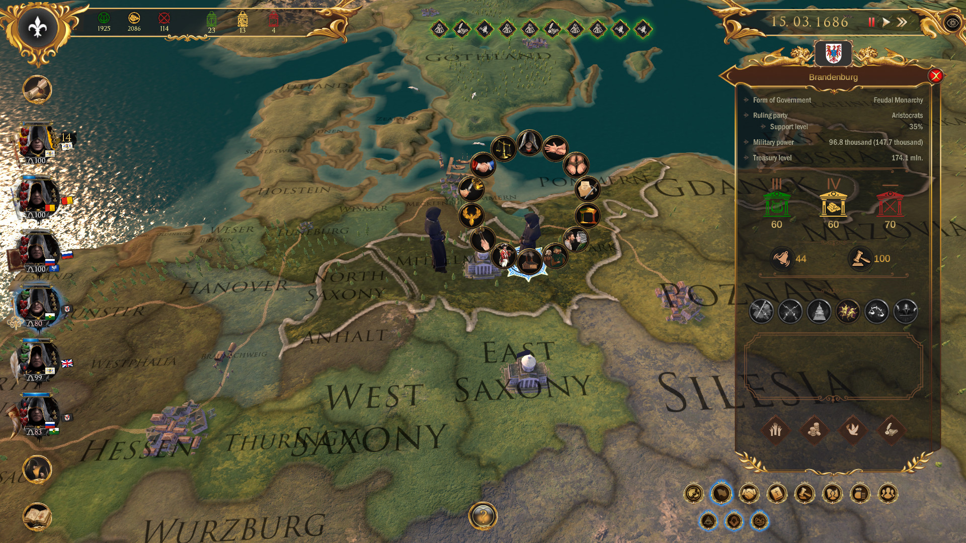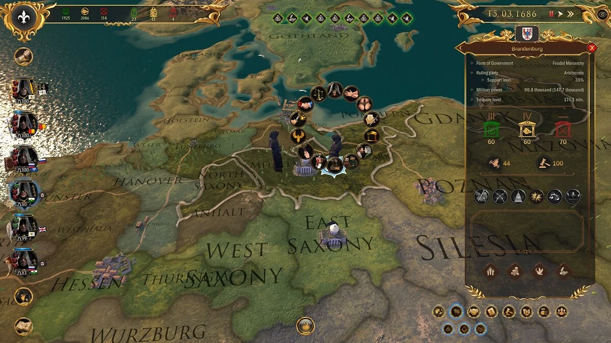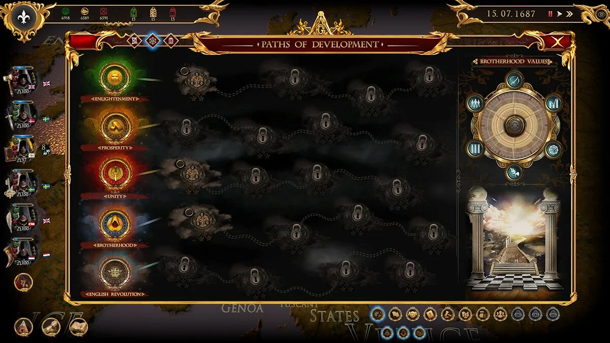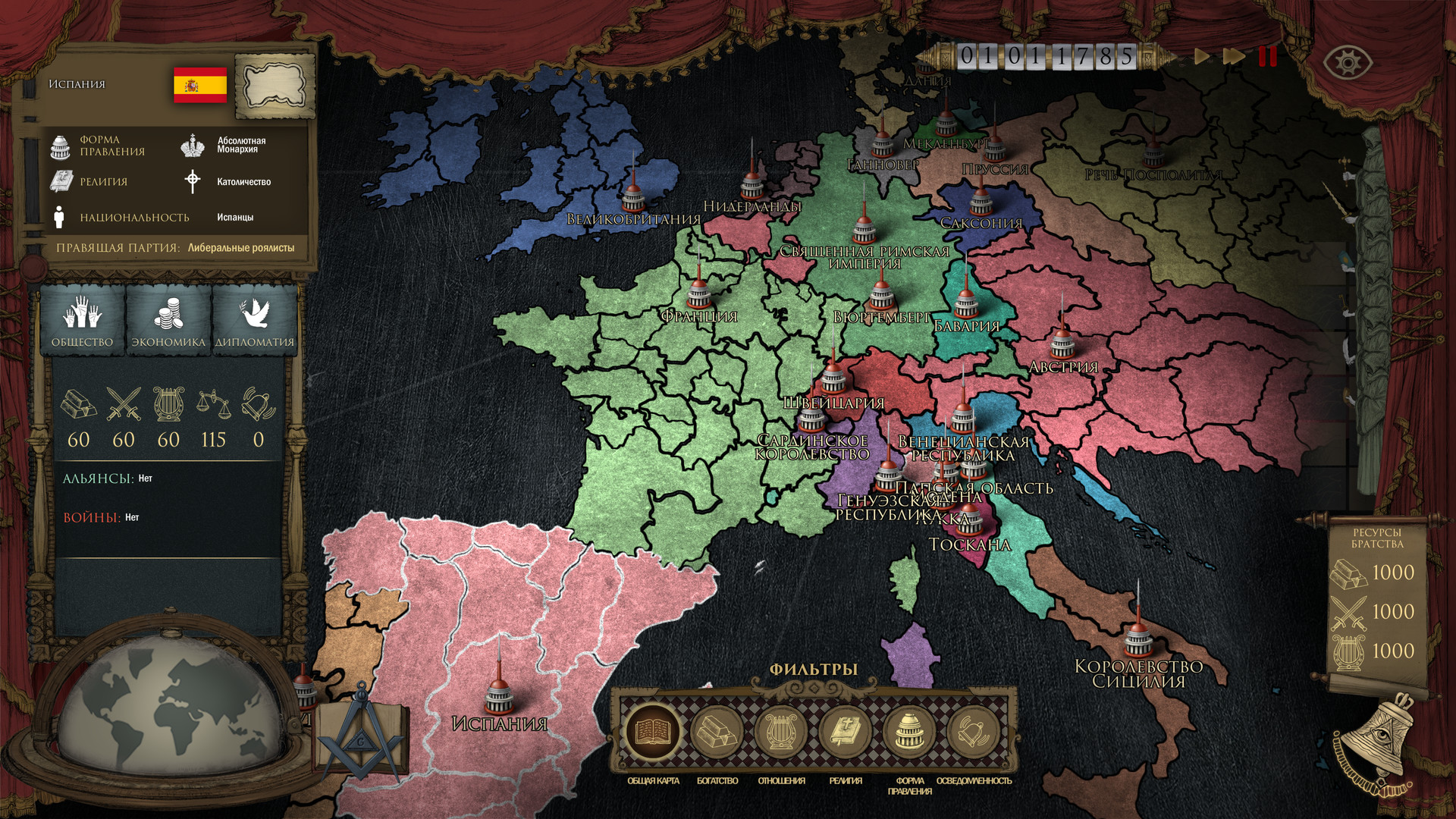 Геймплей Secret Government напоминает сложную партию в шахматы, где все фигуры — это целые государства, а вы — невидимый гроссмейстер. Игра предлагает уникальный подход к управлению: вместо прямых приказов вы используете влияние, ресурсы и особые способности членов вашего ордена для достижения целей. Вы будете балансировать между четырьмя ключевыми сферами — политикой, экономикой, наукой и культурой, стараясь сохранить глобальный баланс сил, который выгоден именно вам. Каждое ваше решение имеет долгосрочные последствия, а мир живёт своей динамичной жизнью, полной случайных событий и поворотов судьбы. Это не просто глобальная стратегия, это симулятор настоящего «теневого правительства» для тех, кто всегда подозревал, что за кулисами мировой политики творится что-то гораздо более интересное.