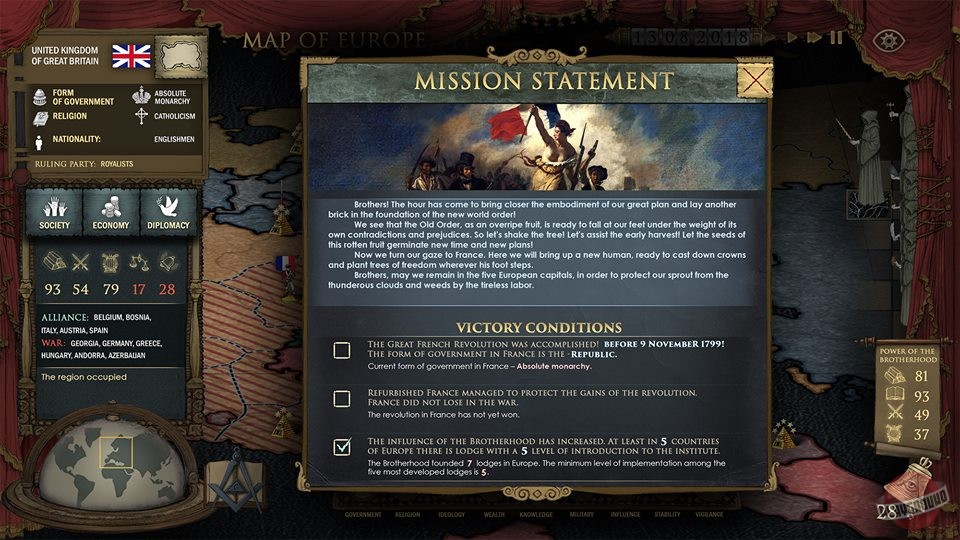 В Secret Government вы не будете напрямую командовать армиями или строить заводы. Вместо этого вы станете мастером интриг и тонких намёков. Расправляйте по миру своих агентов — харизматичных политиков, гениальных учёных, влиятельных банкиров и даже популярных блогеров (ну, или их аналоги в XVIII веке). Ваша цель — внедриться в ключевые институты власти и общества, чтобы мягко, но уверенно направлять ход истории в нужное русло. Хотите, чтобы две страны поссорились? Подбросьте компромат. Нужно ускорить научный прогресс? Профинансируйте правильного учёного. А может, пора устроить глобальный экономический кризис для личной выгоды? В этой пошаговой стратегии всё возможно, главное — не засветиться! Ведь если ваше Братство будет разоблачено, человечество устроит вам такой флэшмоб, от которого мало не покажется.