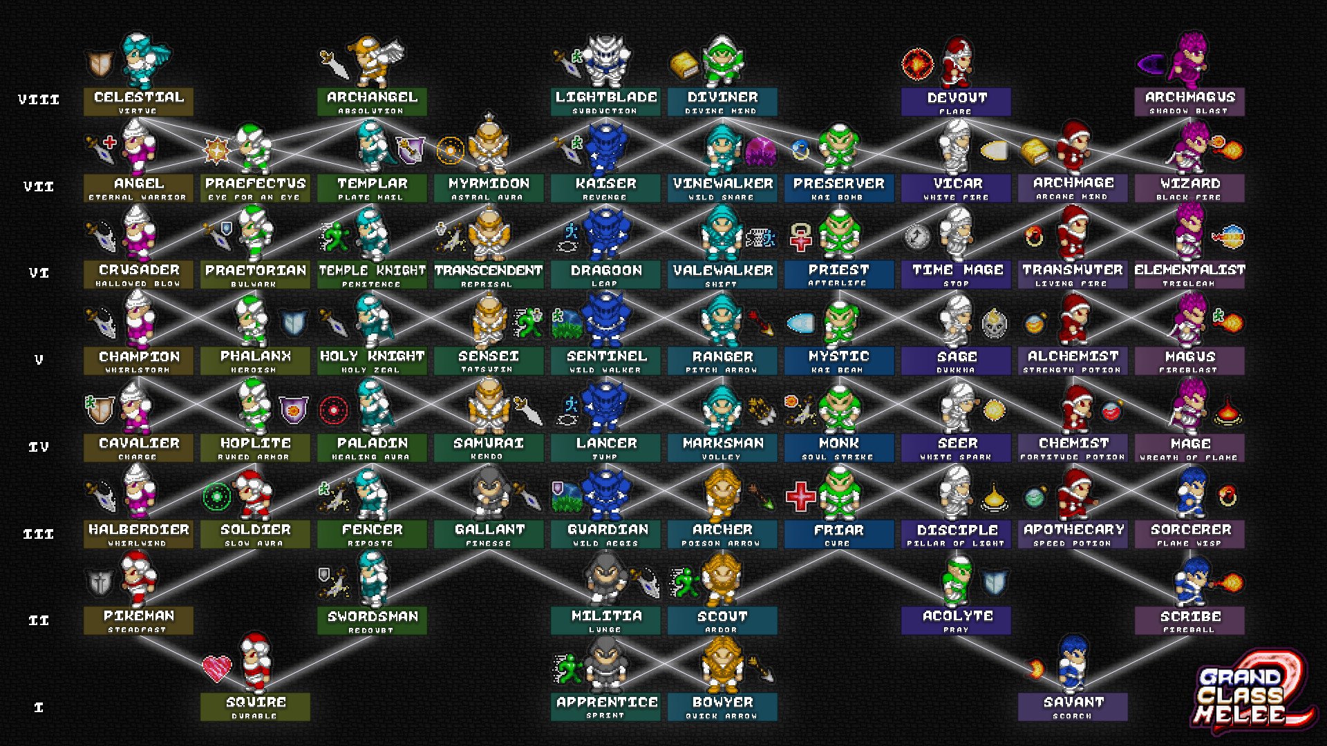 Геймплей Grand Class Melee 2 — это чистый, нефильтрованный адреналин и простой, но глубокий боевой симулятор. Управление интуитивно понятное: базовая атака, специальные способности и уклонение — вот ваш арсенал. Но не дайте себя обмануть этой простотой! Каждый из 60 классов обладает своим уникальным деревом развития, набором умений и стилем ведения боя. Хотите стать дальнобойным лучником, засевшим в высокой траве? Пожалуйста! Мечтаете о том, чтобы быть танком, который в одиночку выдерживает весь урон команды? Легко! А может, вы — фанат ролевых игр и обожаете кастомизировать своего персонажа? Тогда вас ждет настоящий рай: подбирайте экипировку, экспериментируйте с билдами и находите свой идеальный стиль. Игра напоминает культовую TowerFall, но с гораздо большим разнообразием классов и возможностей для тактических комбинаций.