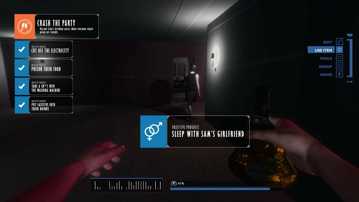 В Party Crasher Simulator вам предстоит освоить тонкое искусство незваного гостя. Ваш персонаж — молодой человек, для которого чужие праздники становятся личным полигоном для оттачивания навыков хаоса. Геймплей предлагает огромное разнообразие задач: от поиска идеального предлога для входа («Я друг брата кузена хозяина» звучит убедительно?) до выполнения специальных заданий, вроде кражи последнего канапе или танца ламбады на обеденном столе. Игра наполнена юмористическими диалогами, неловкими ситуациями и множеством способов вызвать панику среди приглашённых. Каждая вечеринка — это уникальный уровень с собственной атмосферой, от гламурного коктейля до безумной студенческой тусовки, что обеспечивает высокую реиграбельность и не даёт заскучать.