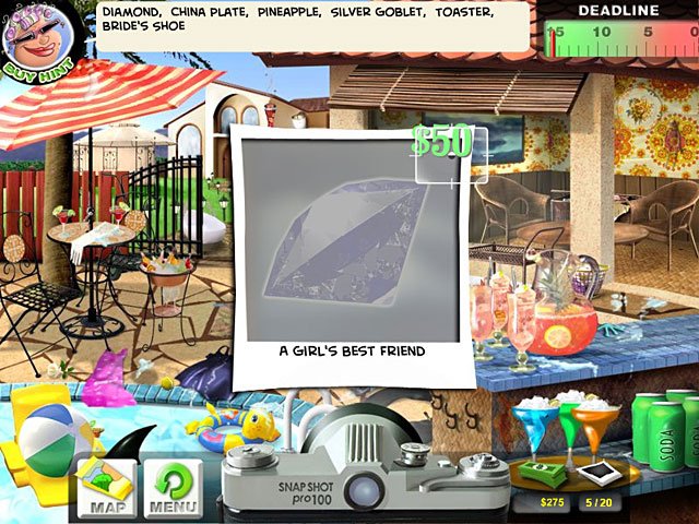 Геймплей Paparazzi построен на увлекательных мини-играх и классических механиках поиска предметов (hidden objects). Вам предстоит исследовать 15 уникальных локаций — от роскошных особняков и шумных ночных клубов до закулисья театров и тихих парков, — чтобы найти именно те объекты или ситуации, которые заказал ваш редактор. Нужно поймать звезду за поеданием хот-дога на диете? Пожалуйста! Заснять, как поп-идол гоняется за своим убежавшим питомцем? Легко! Главное — быть быстрее конкурентов и не попасться на глаза разъяренной охране. Каждый успешный снимок приносит вам деньги и славу, открывая доступ к новым, еще более скандальным заданиям.