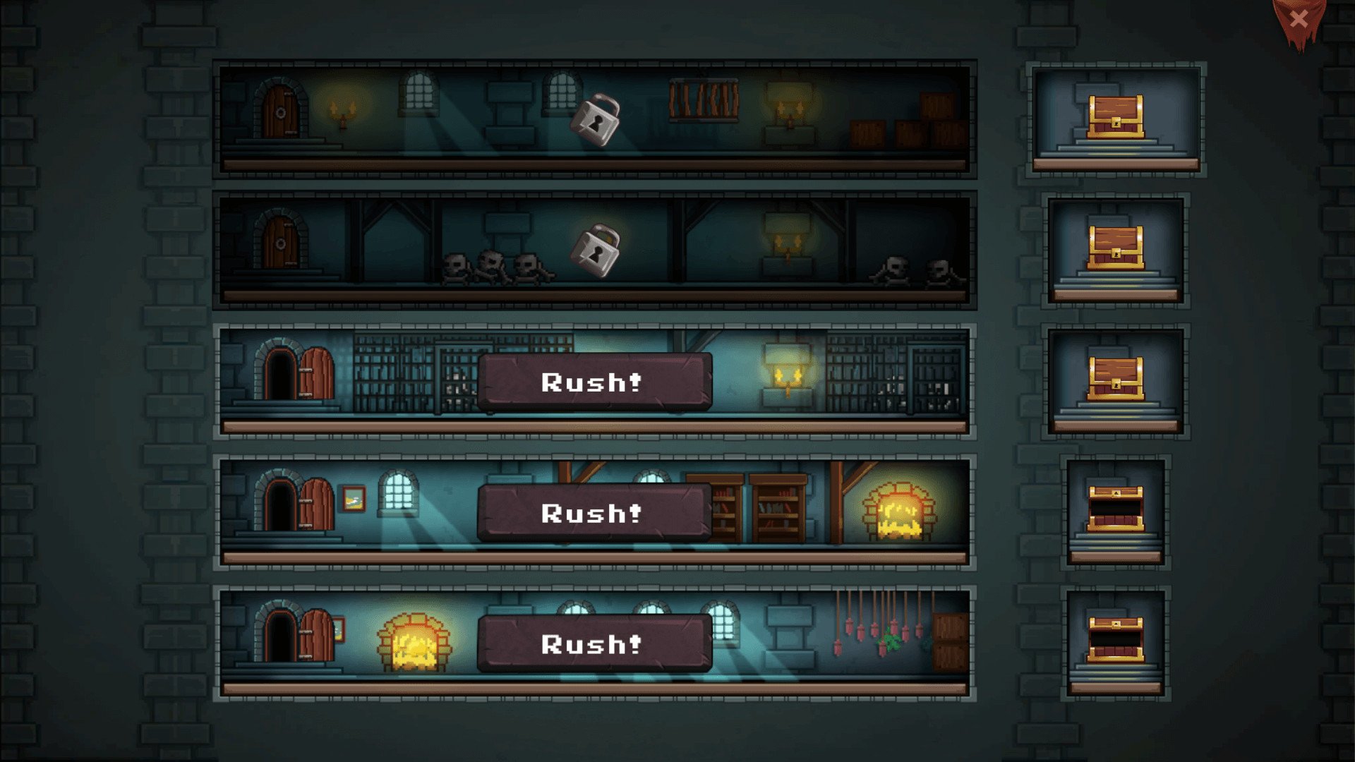 Ваша главная цель в Dungeon Rushers — найти спрятанное сокровище на каждом уровне, но поверьте, путь к нему будет извилистым, как сюжет сериала «Игра престолов». Вас ждут хитроумные ловушки, которые требуют не только реакции, но и логики (или удачи, если вы верите в нее больше, чем в свою броню), десятки уникальных врагов, от обычных гоблинов до чего-то, что явно сбежало из кошмаров дизайнера, и, конечно же, куча предметов для крафта. Система создания снаряжения здесь — отдельный квест: собирайте ресурсы, экспериментируйте с рецептами и создавайте оружие и доспехи, которые сделают ваш отряд непобедимым... или, наоборот, превратят его в ходячую мишень для насмешек. Каждый запуск игры — это новое подземелье, новая история и новые возможности для героических подвигов или эпических фейлов.