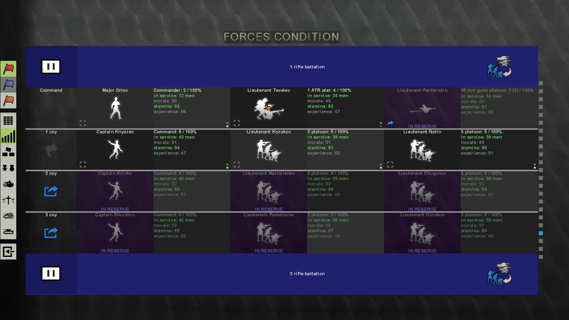 Игроку придется взять на себя командование целым батальоном, охватив площадь в 140 кв. км. Артиллерия, пехота, тяжелая техника и авиация. Доступны четыре операции за Советский Союз и Вермахта, по окончанию которых доступна точная статистика с потерями, анализом нанесенного ущерба.