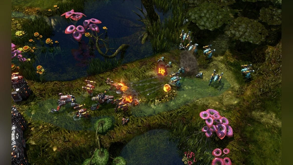 В Grey Goo вы можете примерить на себя роль одного из трёх совершенно уникальных командиров, каждый со своим стилем ведения войны. Люди — это ваш надёжный выбор, если вы верите в силу технологий и чёткого планирования: их базы растут как на дрожжах, а техника может даже самоуничтожиться, чтобы нанести максимальный урон. Раса Бета — это эстеты войны, предпочитающие биологическое оружие и хитроумные ловушки; они умеют прятать свои здания и внезапно обрушивать на врага целые армии мутантов. А вот Гу — это чистый, первозданный ужас. Вы не строите базу, вы просто выпускаете свою серую жижу, которая сама поглощает ресурсы и трансформируется в боевые единицы прямо на поле боя. Это как играть за Тёмного Лорда из «Властелина Колец», только вместо Ока Саурона у вас бесконечная армия из самого страшного кошмара вашего школьного учителя химии.