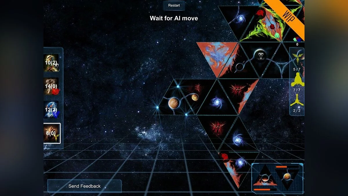 Геймплей Galaxy of Trian — это идеальный баланс между простотой правил и глубиной стратегии. Каждый ход — это маленькая головоломка: куда положить новый тайл, чтобы не отдать соседу самую богатую планету? Как оптимально разместить свой флот, чтобы он приносил максимум очков? Игра динамичная, ходы следуют один за другим, и вы точно не заснете, пока ваш оппонент будет "думать". Это отличный выбор для тех, кто любит настольные игры, но не хочет возиться с расстановкой фишек на физическом столе, или для новичков, которые хотят попробовать жанр tile-laying (выкладывание тайлов) в удобном цифровом формате. Система управления продумана до мелочей, так что даже ваша бабушка сможет освоиться и вскоре начнет вас обыгрывать, используя хитрые тактические ходы.