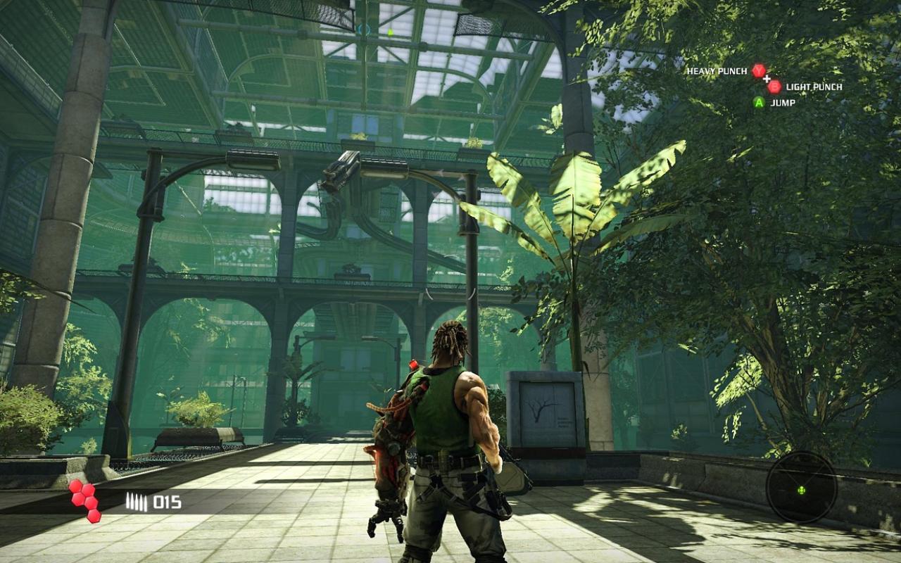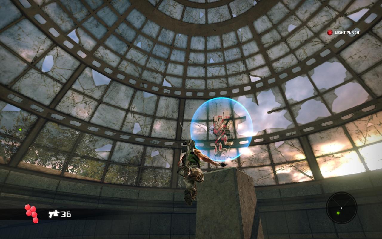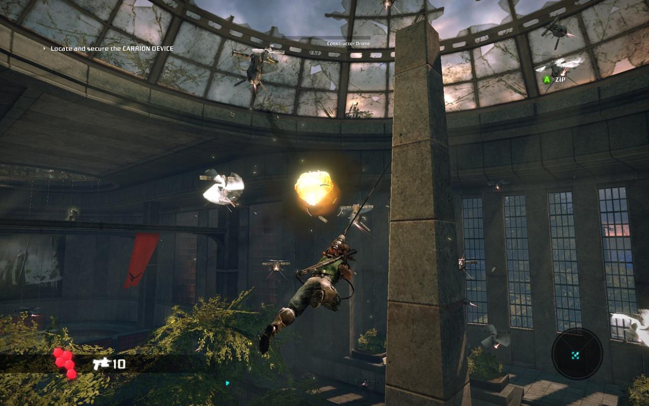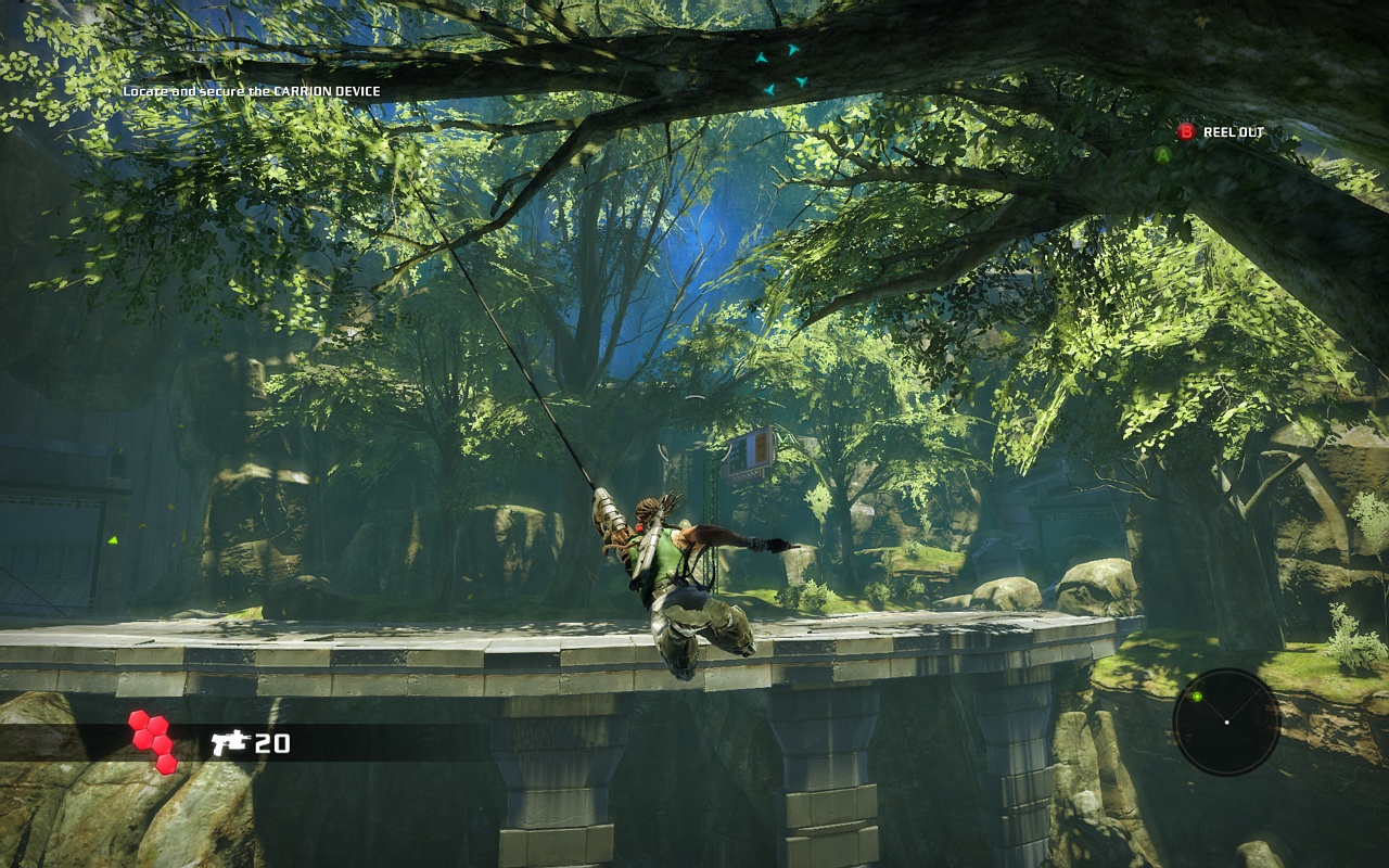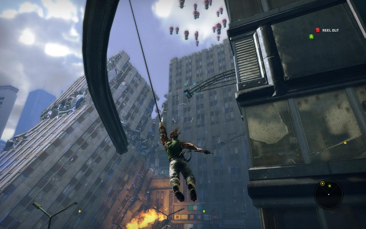 Главная звезда игры — это, конечно же, ваша бионическая конечность. Она не просто для красного словца: с её помощью вы будете не только раскачиваться между небоскрёбами, как современный Тарзан, но и хватать врагов, поднимать их над головой и швырять в толпу, будто это плюшевые игрушки. А ещё можно использовать её как мощнейший хлыст для групповых атак или как якорь для быстрого рывка прямо в самую гущу боя. Геймплей Bionic Commando строится вокруг этой уникальной механики, заставляя вас постоянно думать не «как подойти», а «как лучше всего просвинговать». Это создаёт невероятно динамичные и зрелищные перестрелки, которые отличают игру от сотен других представителей жанра экшен и шутера. Каждая локация — это новая площадка для ваших акробатических трюков, и если вы освоите управление, то будете чувствовать себя настоящим супергероем.