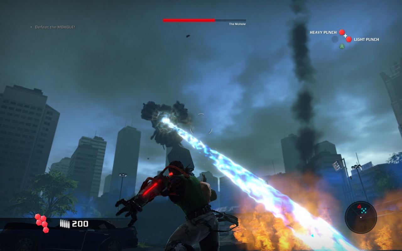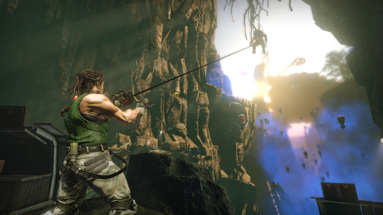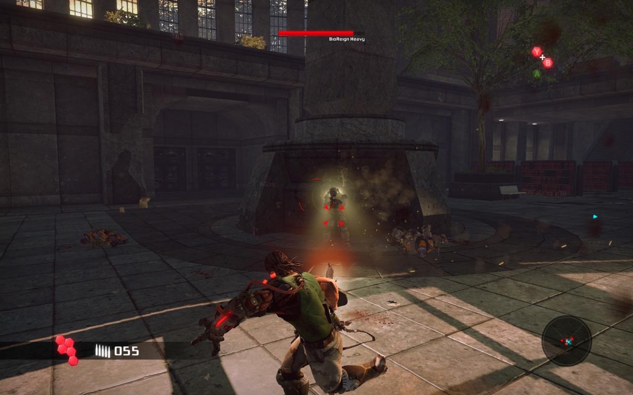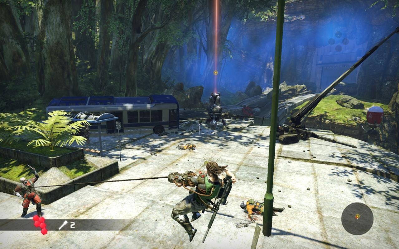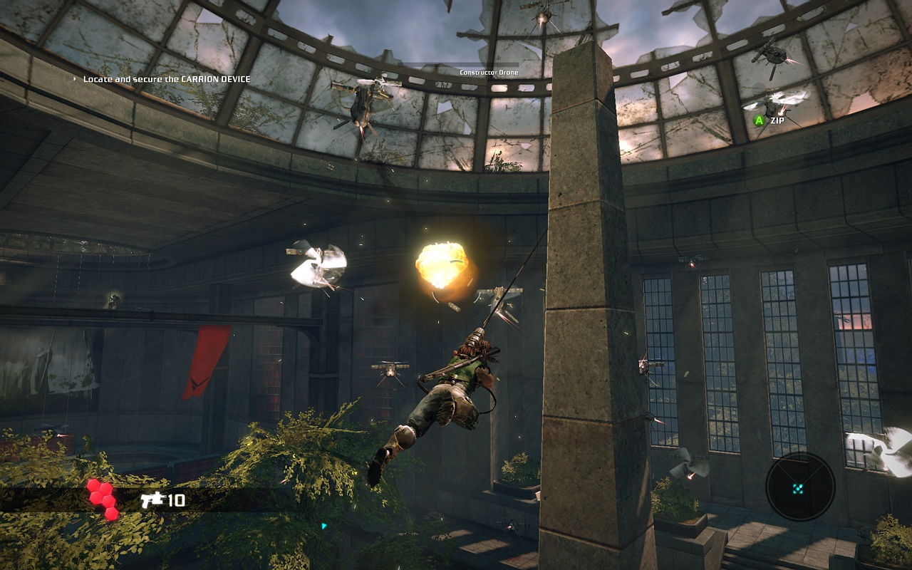 Главная звезда игры — это, конечно же, ваша бионическая конечность. Она не просто для красного словца: с её помощью вы будете не только раскачиваться между небоскрёбами, как современный Тарзан, но и хватать врагов, поднимать их над головой и швырять в толпу, будто это плюшевые игрушки. А ещё можно использовать её как мощнейший хлыст для групповых атак или как якорь для быстрого рывка прямо в самую гущу боя. Геймплей Bionic Commando строится вокруг этой уникальной механики, заставляя вас постоянно думать не «как подойти», а «как лучше всего просвинговать». Это создаёт невероятно динамичные и зрелищные перестрелки, которые отличают игру от сотен других представителей жанра экшен и шутера. Каждая локация — это новая площадка для ваших акробатических трюков, и если вы освоите управление, то будете чувствовать себя настоящим супергероем.