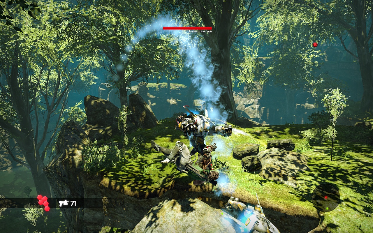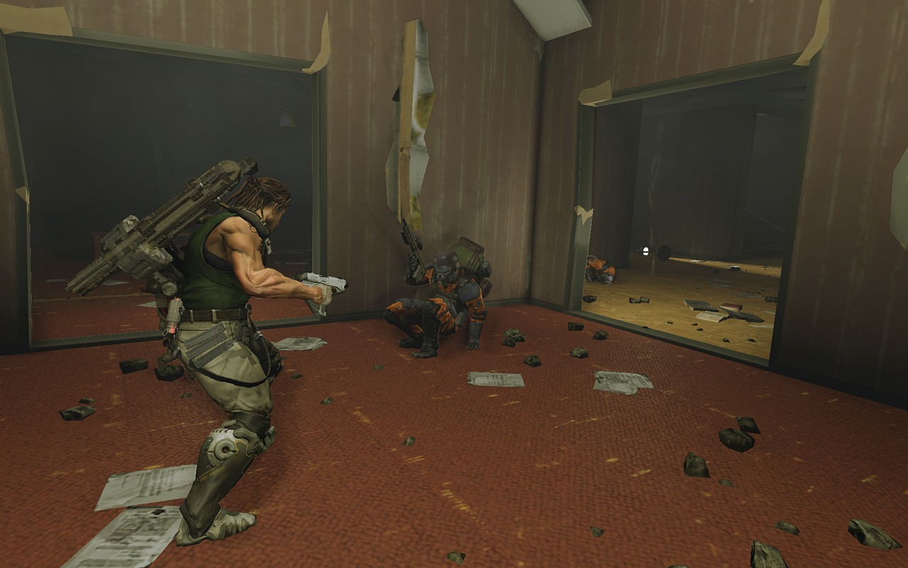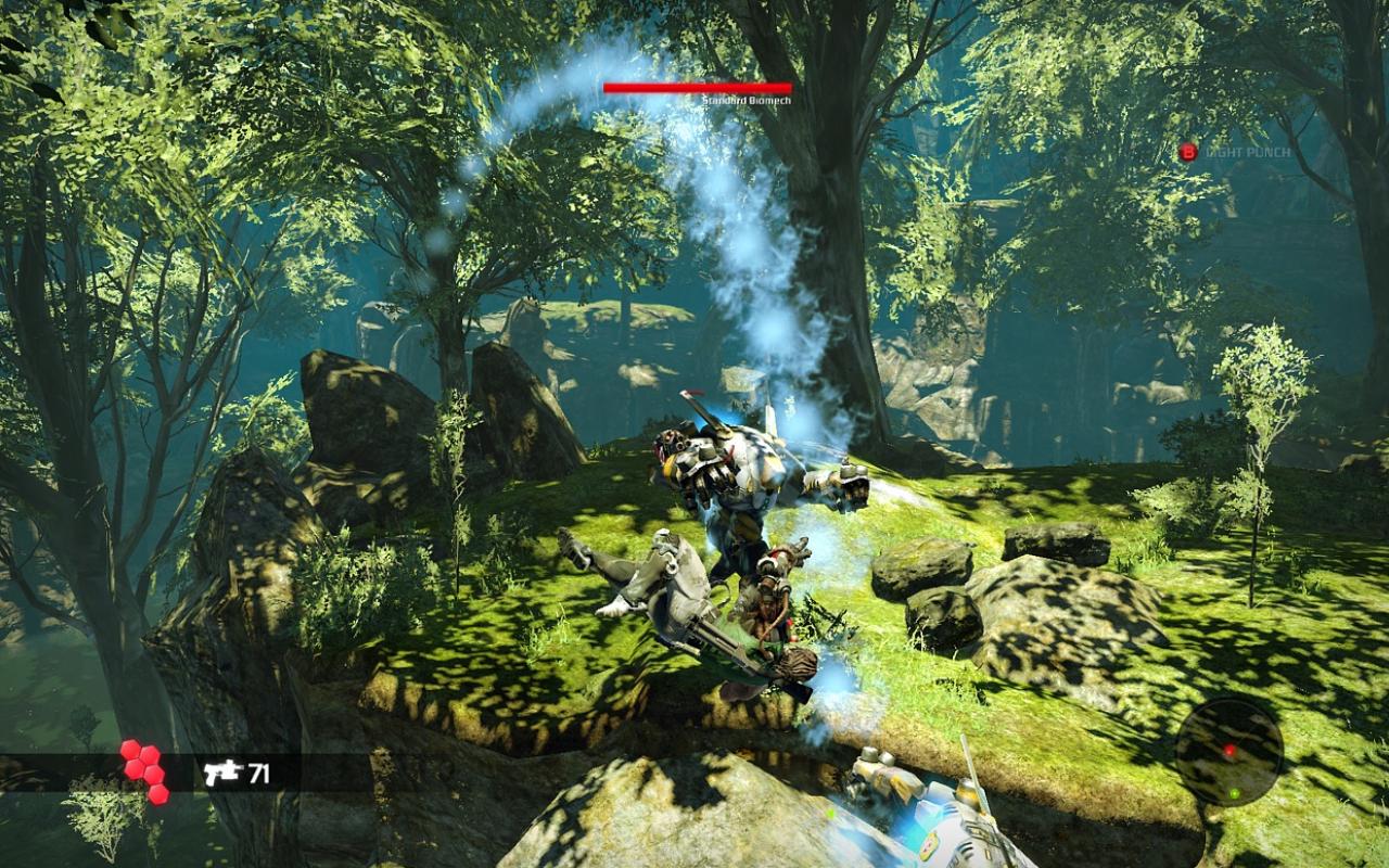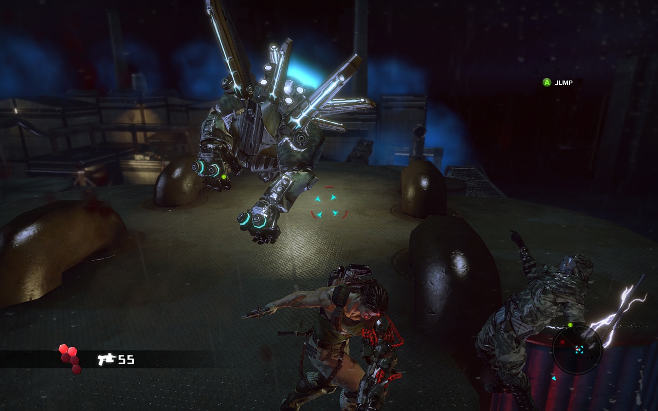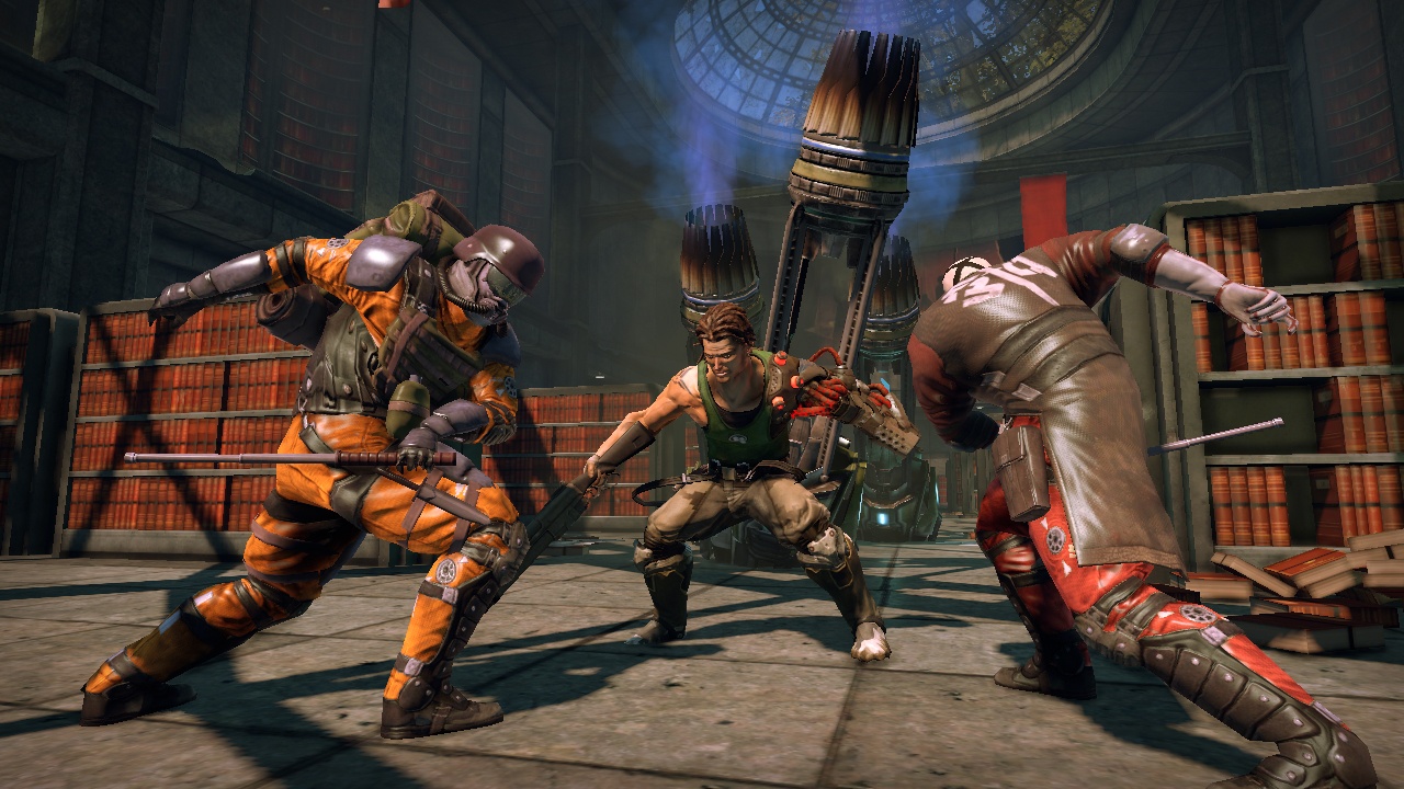 Главная звезда игры — это, конечно же, ваша бионическая конечность. Она не просто для красного словца: с её помощью вы будете не только раскачиваться между небоскрёбами, как современный Тарзан, но и хватать врагов, поднимать их над головой и швырять в толпу, будто это плюшевые игрушки. А ещё можно использовать её как мощнейший хлыст для групповых атак или как якорь для быстрого рывка прямо в самую гущу боя. Геймплей Bionic Commando строится вокруг этой уникальной механики, заставляя вас постоянно думать не «как подойти», а «как лучше всего просвинговать». Это создаёт невероятно динамичные и зрелищные перестрелки, которые отличают игру от сотен других представителей жанра экшен и шутера. Каждая локация — это новая площадка для ваших акробатических трюков, и если вы освоите управление, то будете чувствовать себя настоящим супергероем.