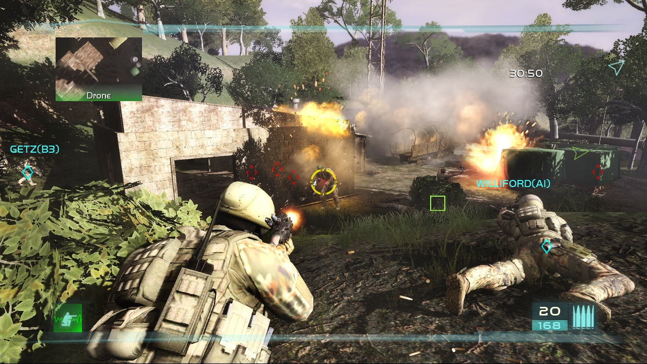 Геймплей Ghost Recon: Advanced Warfighter 2 — это не просто беготня с автоматом наперевес. Это школа настоящего командира! Благодаря продвинутой системе Cross Com вы получаете полный контроль над своим отрядом: отправляйте снайпера на вышку для прикрытия, прикажите штурмовику подавить огневую точку противника, а медика держите наготове. Каждое ваше решение может стать ключом к победе или привести к «игровому окончанию». Игра щедро снабжает вас современным оружием и гаджетами, которые делают вас похожим на героя из боевика. Хотите чувствовать себя как Джон Уик, только с целым взводом за спиной? Пожалуйста! Тактический шутер такого уровня требует не только меткости, но и стратегического мышления, ведь враги в Advanced Warfighter 2 ведут себя очень реалистично и не будут просто стоять мишенью.
