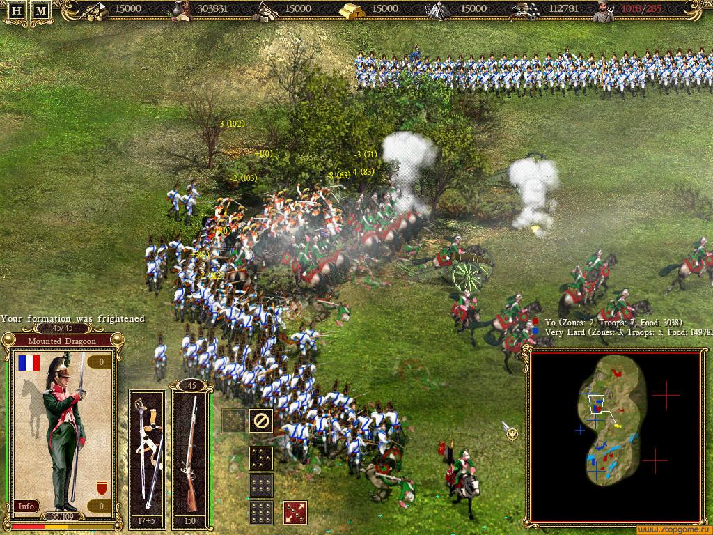 Казаки 2: Наполеоновские войны — военная стратегия в реальном времени, посвящённая историческому периоду войн начала 19 века между Наполеоном Бонапартом (Франция) и другими государствами Европы; продолжение знаменитой игры Казаки: Европейские войны. Суть игры – выбрать страну, стать полководцем, сформировать войско и захватить всю Европу. Предусмотрен одиночный и многопользовательский режимы. Игровые события строятся на реальных исторических баталиях. Для начала пользователь определяется с выбором нации, затем начинает строить сооружения, где производятся юниты и военная техника. Для каждой страны характерны разные типы пехотных и конных войск, артиллерии. Ведение боя отличается от современного – все соответствует наполеоновской эпохи. В процессе игры нужно не просто выстрелить в противника, а сделать это в правильное время и теми войсками, боевой дух которых на высоком уровне. Одна выверенная атака по врагу может дестабилизировать большее в несколько раз войско и привести к победе. Игроку предоставляется возможность расставлять пехоту тремя способами: каре; колонна; линия. Каждая позиция несет свои плюсы при определенных условиях. Изначально под руководством полководца оказываются несколько крестьян, вооруженных вилами. С накоплением опыта персонаж превращается в настоящего генерала и под его началом становится больше полноценно обученных солдат. Для найма и содержания войск нужно золото и ресурсы, которые можно добыть в сражениях или добыть/произвести в поселении. Золото требуется для безопасного прохода через чужие территории или заключения договора о ненападении при игре на глобальной карте Европы.
