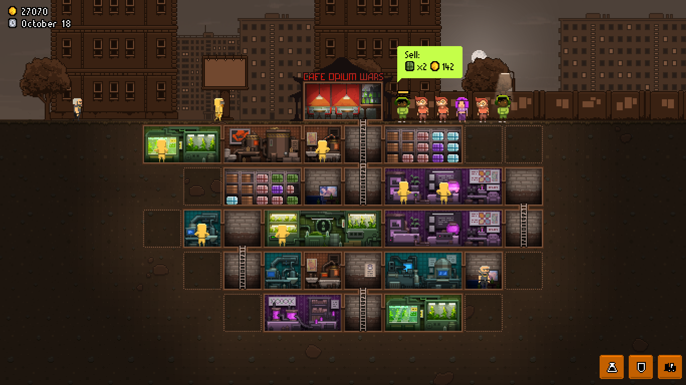 В Basement вы — мастер своего подпольного царства. Вам предстоит не только смешивать химикаты и создавать «специальный продукт», но и выстраивать целую производственную цепочку: от закупки сырья до продажи готового товара через фальшивые магазины-прикрытия. Это настоящий симулятор нарколорда для новичков! Вы будете нанимать работников (надеясь, что они не болтуны), модернизировать оборудование, чтобы повысить чистоту продукта, и манипулировать ценами на черном рынке. И все это под постоянной угрозой, что вашу лабораторию накроет полиция или, того хуже, ФБР. Каждая игровая сессия — это новый вызов, где вам нужно балансировать между прибылью и безопасностью.