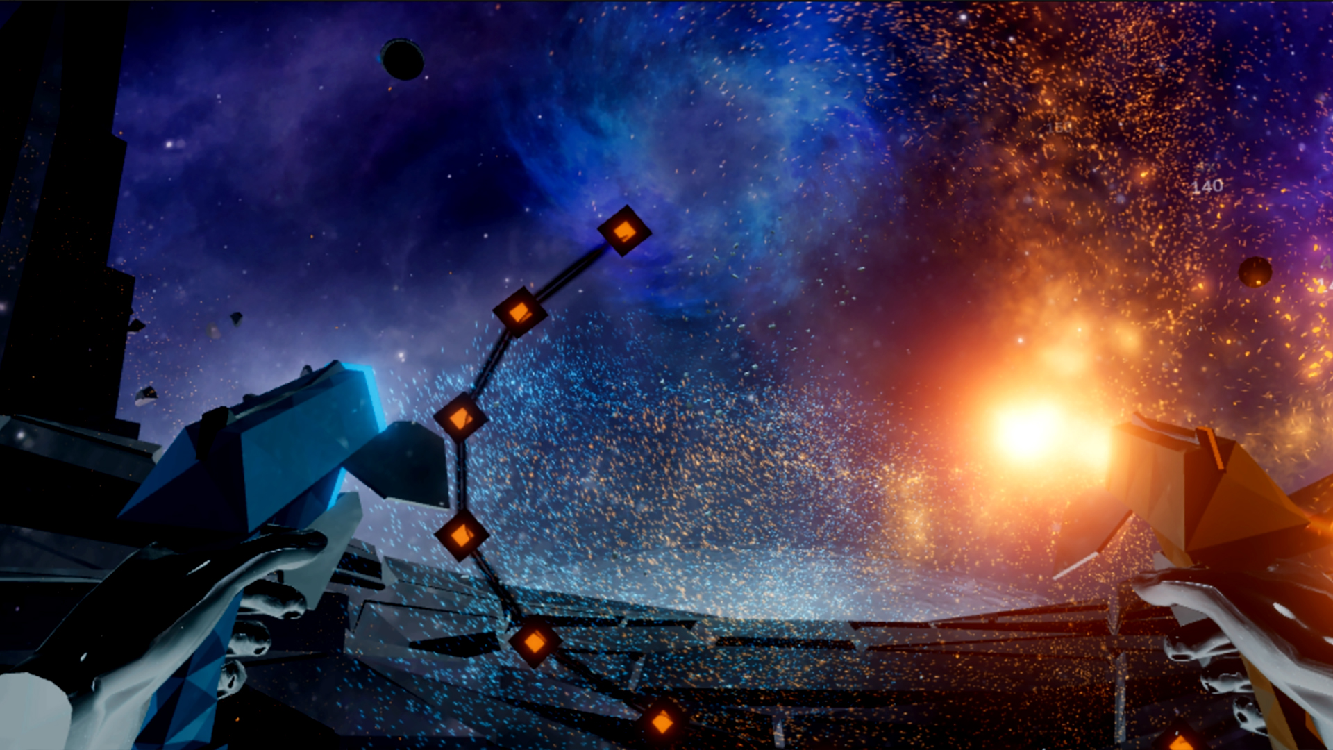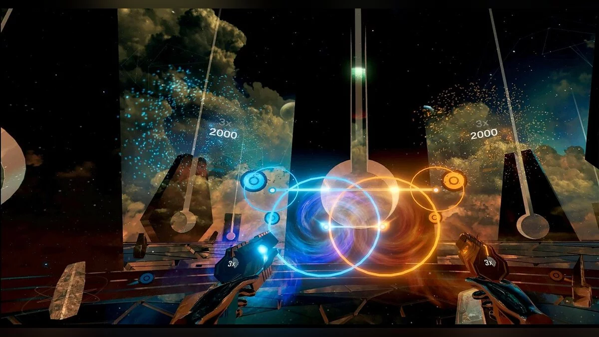 Забудьте про скучные тренажёрки и унылые пробежки! Встречайте Audica — это не просто VR-ритм-игра, это ваш личный билет в мир, где вы становитесь Джоном Уиком от музыки, вооружённым парой ритм-бластеров и готовым расстреливать ноты в такт хитам. Разработанная легендарной студией Harmonix (да-да, теми самыми, кто подарил миру Rock Band), эта игра берёт всё лучшее от жанра ритм-шутера и смешивает это в коктейль из адреналина, электронной музыки и космических пейзажей. Ваша задача проста: стрелять, бить, ломать и уворачиваться от летящих мишеней, идеально попадая в ритм. Каждый выстрел — это нота, каждый взрыв — аккорд, а вы — дирижёр этого безумного симфонического огнестрела.