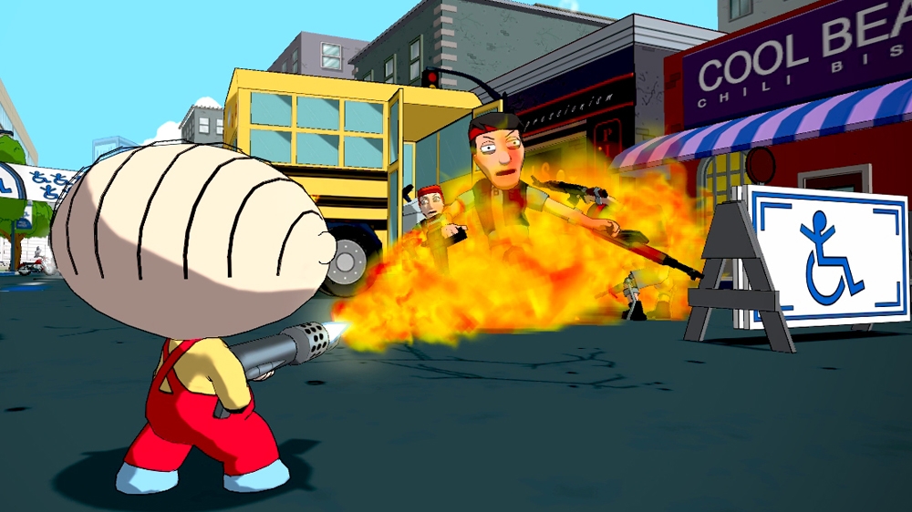 С точки зрения геймплея, Family Guy: Back to the Multiverse — это кооперативный шутер от третьего лица, который идеально подходит для совместного прохождения с другом. Вы можете выбрать роль либо Стьюи с его лазерной пушкой и сарказмом, способным растопить лёд, либо Брайана, вооружённого... ну, в основном своим разочарованием в человечестве и парой пистолетов. Геймплей прост и интуитивно понятен: бегайте, прячьтесь за укрытиями и расстреливайте всё, что движется и представляет угрозу для мультивселенной (а иногда и то, что просто мешает вам пройти дальше). Ключевая фишка — это смена миров. Каждый уровень предлагает уникальную среду и врагов, так что вам никогда не станет скучно. Хотите пострелять в мире, стилизованном под «Звёздные войны»? Пожалуйста! А как насчёт того, чтобы сразиться с зомби в апокалиптическом Куахоге? Легко! Игра щедро делится отсылками к фильмам, сериалам и видеоиграм, создавая настоящее пиршество для фанатов.