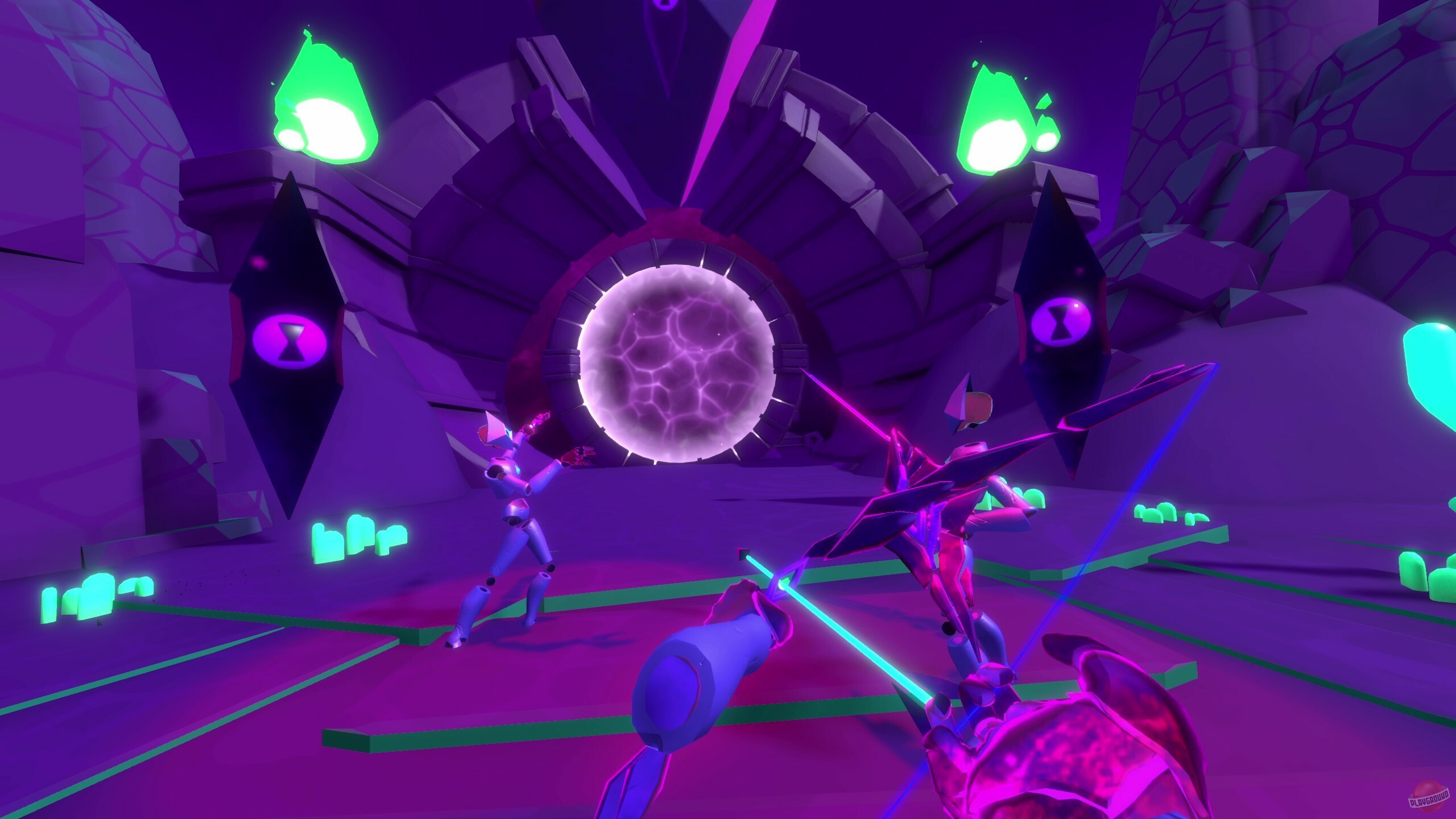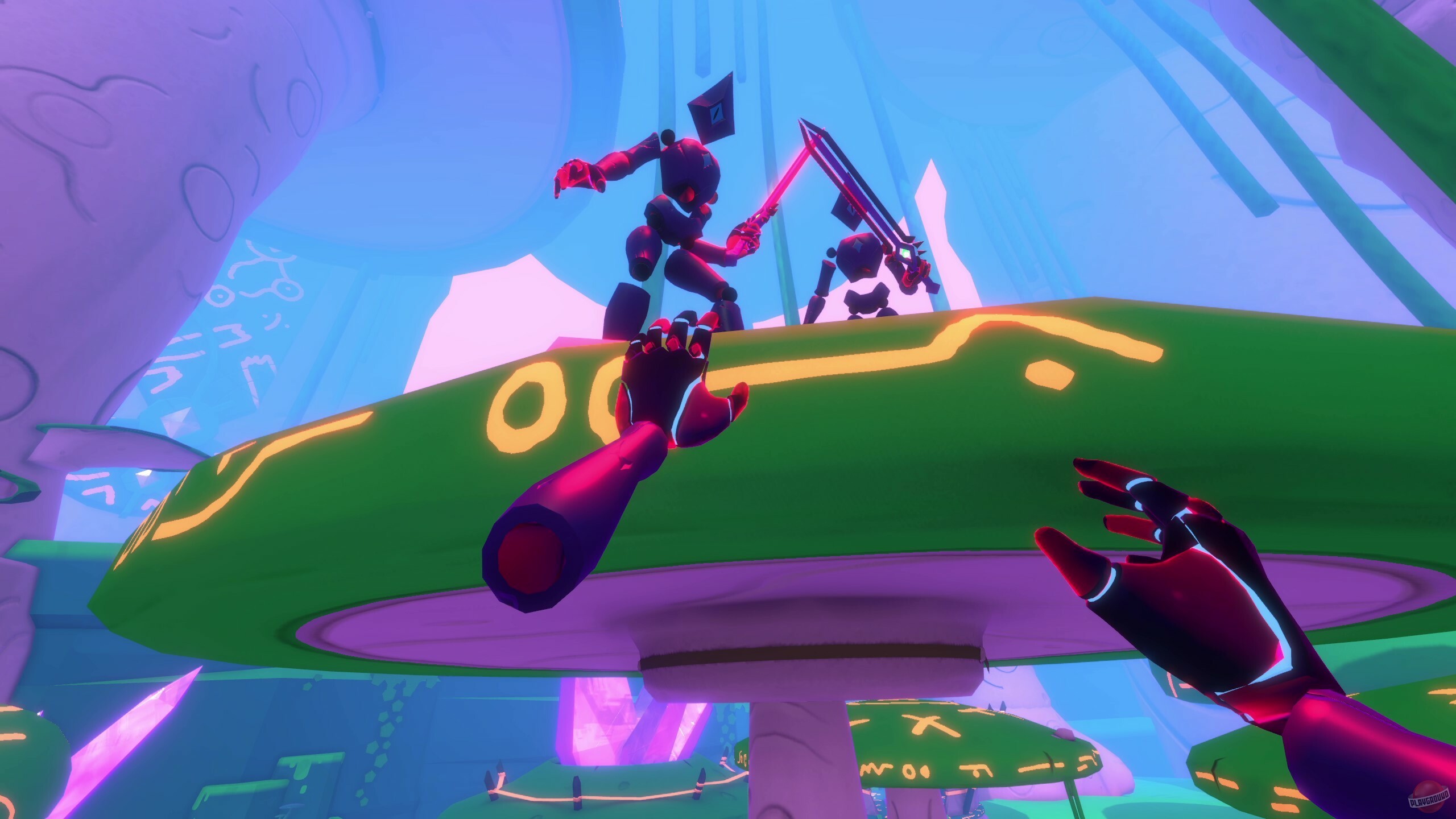 VR-игра про последователя какого-то Зикса, который носится по разным мирам и собирает хаос. Если говорить про жанр, то перед нами кооперативный «рогалик» с экшеном, где основная идея — врываться в локации, тырить из них ресурсы и использовать добычу для изменения следующих вылазок. Постепенно открываешь новые комбинации ресурсов и узнаешь больше о том, что это за Зикс такой. Играть можно с любого VR-шлема, а если у друзей нет виртуальной реальности — не беда, они могут подключиться с обычного компьютера в роли наблюдателей.