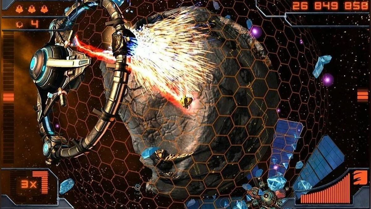 Геймплей Super Stardust Delta — это идеальный баланс между хаосом и контролем. Вы управляете своим истребителем, который может двигаться по круговой орбите вокруг планеты и одновременно стрелять во все стороны. У вас есть три типа оружия: лазер для расщепления астероидов, ракеты для борьбы с живностью и мощнейшая бомба, которая очищает весь экран — ваш последний козырь в безвыходной ситуации. Ключевой фишкой является система множителей: чем больше врагов вы уничтожаете подряд без перерыва, тем выше ваш счет и тем ценнее награды. Это превращает каждую сессию в захватывающий вызов, где вы не просто выживаете, а стремитесь к идеальной, почти танцевальной серии взрывов. Игра предлагает несколько режимов, включая классическую Аркаду, режим Сокрушения (Endless) для настоящих фанатов хардкора и даже кооперативный мультиплеер, чтобы разделить этот космический ад со своим другом.