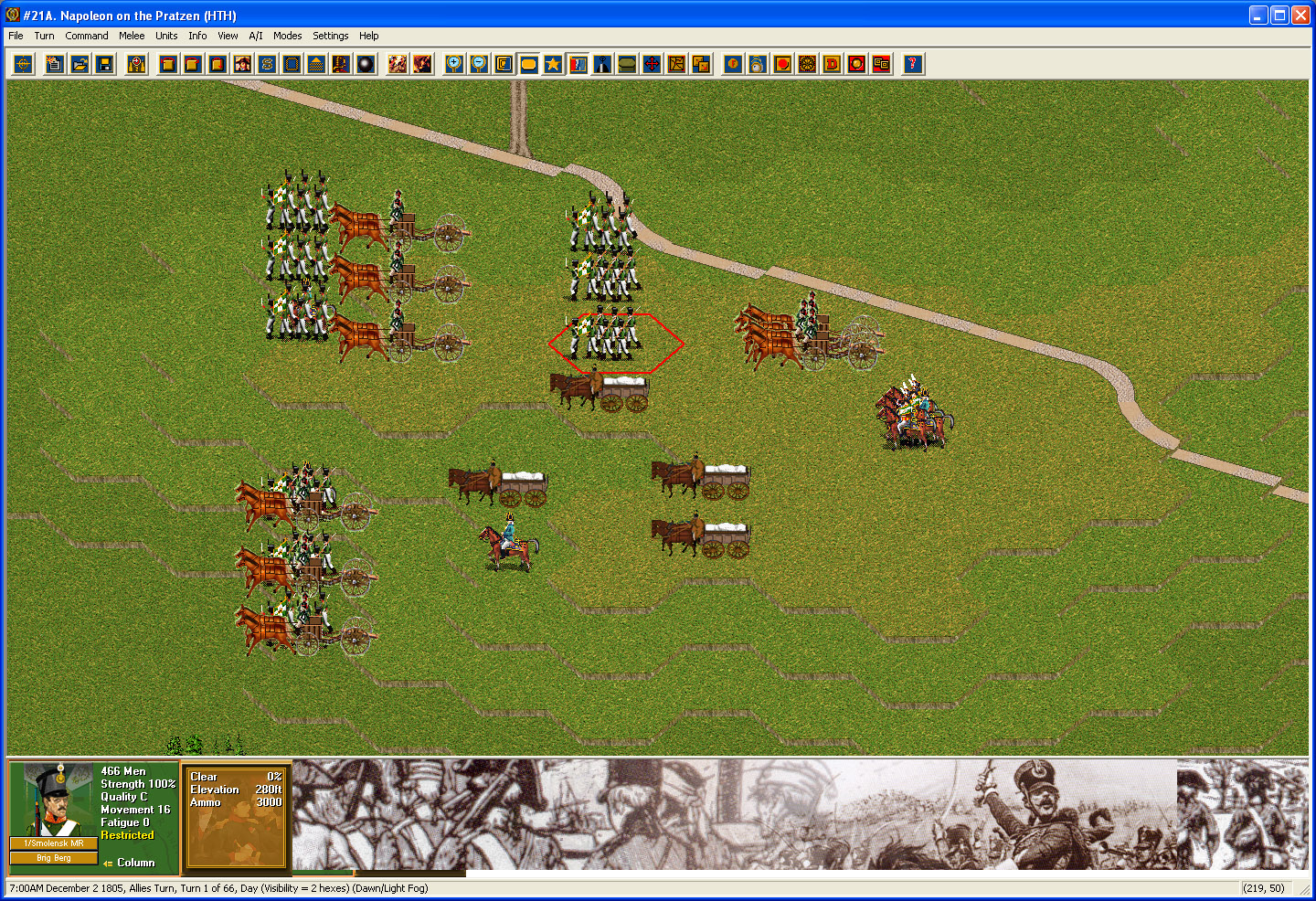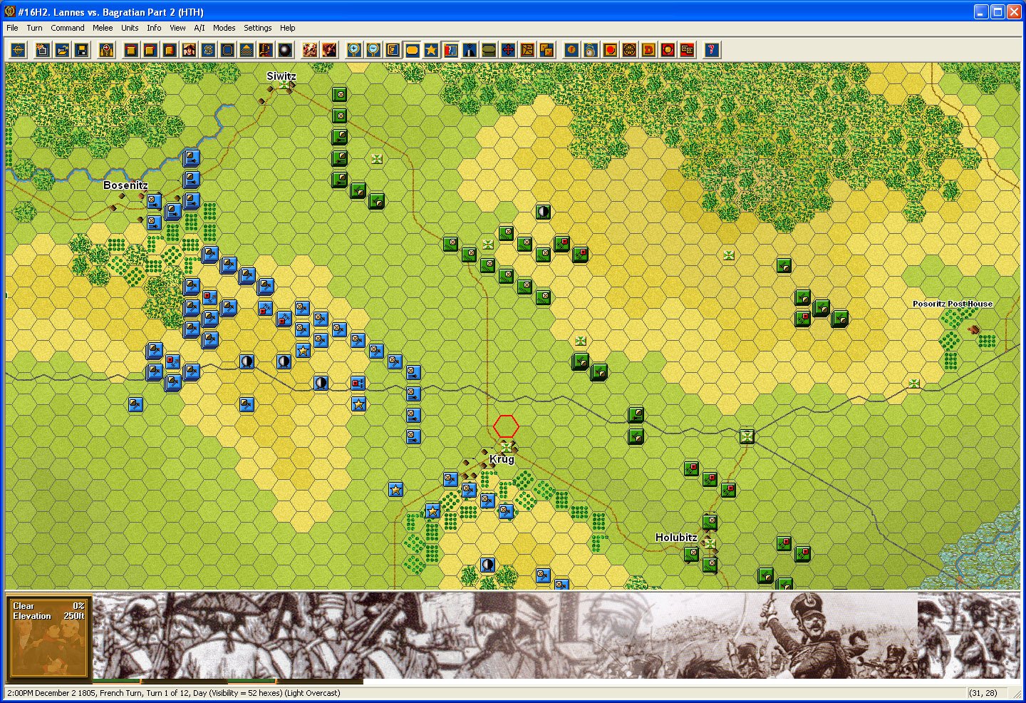 Napoleonic Battles: Austerlitz — это глубокий и аутентичный стратегический симулятор, посвященный одной из самых гениальных побед в военной истории. Вас ждут 60 уникальных карт, охватывающих ключевые сражения Наполеоновских войн, но сердце игры, безусловно, бьется на знаменитом поле под Аустерлицем. Вы можете выбрать свою судьбу: возглавить непобедимую Французскую империю с ее легендарной Grande Armée или собрать силы Антифранцузской коалиции (Австрия и Россия) и попытаться остановить восходящего императора. Геймплей сочетает в себе продуманную тактику, управление ресурсами и элементы «тумана войны», что делает каждое сражение напряженным и непредсказуемым. Здесь нет места бездумному тыканью — только холодный расчет, хитрые маневры и, конечно же, немного авантюризма, достойного самого Бонапарта.
