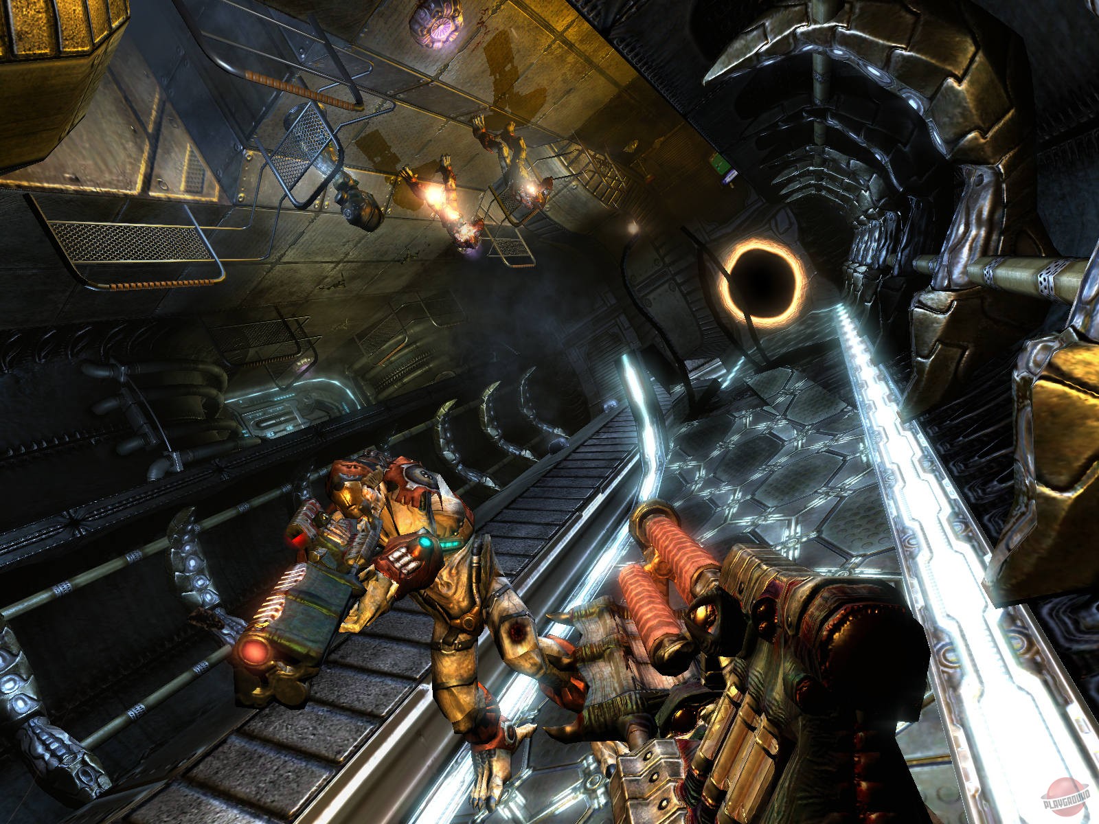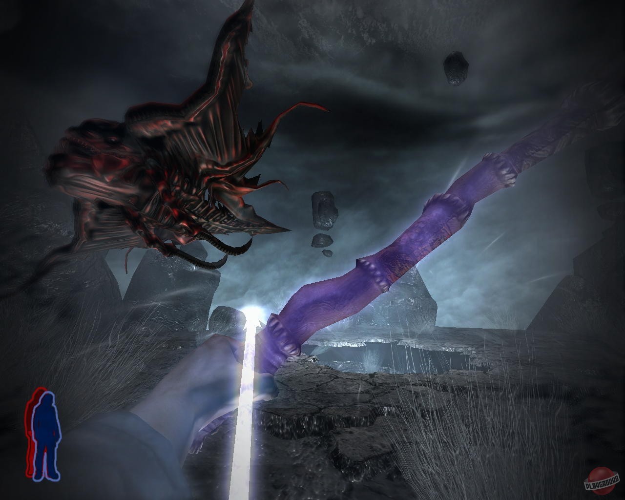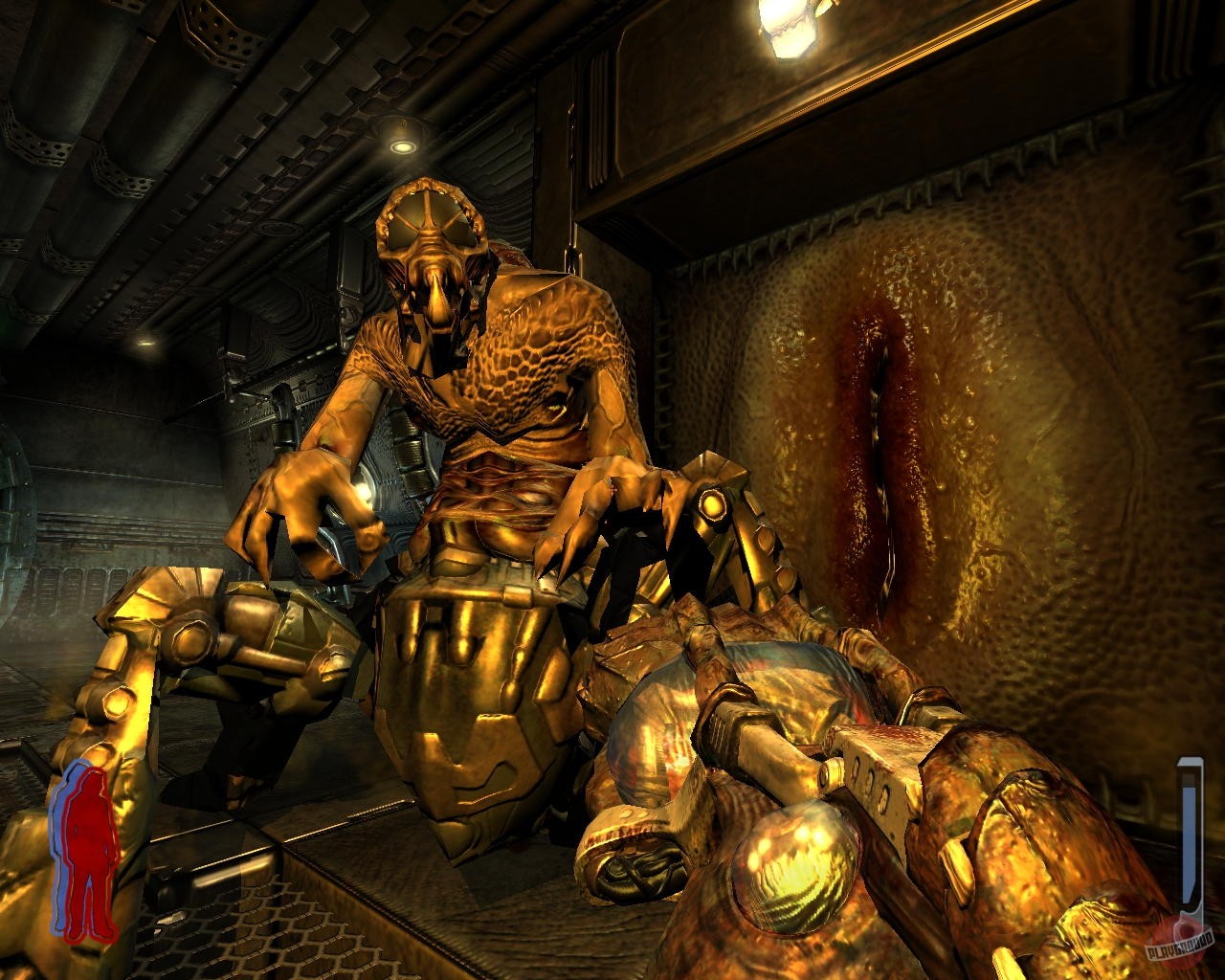 Prey (2006) — приключенческий шутер с видом от первого лица. В игре есть как однопользовательский, так и многопользовательский режимы. Игрокам предстоит сыграть за бывшего солдата армии США, механика Томми, потомка индейского народа. Герой получает особые способности от своих предков, которые помогут ему в борьбе за человечество. Центральный персонаж в игре – Домаси (Томми) Таводи родом из индейского народа чероки. Он живёт в Оклахоме, в индейской резервации. Однажды, когда он разговаривает со своей подружкой в баре, поступает предупреждение о чрезвычайной ситуации. После чего появляются зелёные лучи света, и героев переносит на борт инопланетного корабля. Томми, находясь в состоянии клинической смерти, попадает в «Страну Древних», где получает особые способности от своего умершего деда. Теперь герой может отделять душу от тела и получает в помощь дух своего ручного ястреба. С этого момента судьба человечества в руках Домаси. Сможет ли он справиться с инопланетными захватчиками? Основное место действия игры – инопланетный корабль под названием «Сфера». Пространство представляет собой множество узких коридоров и просторных залов, части корабля связаны между собой сетью порталов. В основном персонажу придётся отстреливаться от пришельцев, перемещаясь по кораблю, периодически приспосабливаясь к изменяющимся условиям окружающего пространства. Адаптироваться к переключению гравитации на корабле и палить по врагам, находясь вверх ногами, может быть нелегко. Особая способность героя отделять дух от тела поможет ему незаметно прокрадываться через толпы противников и пробираться сквозь защитные поля, чтобы отключить их. Конечно же, не обойдётся и без разнообразного инопланетного оружия. Здесь игроков ждут непривычные решения в виде живого оружия и гранат-жучков, взрывающихся при отделении конечностей. Каждый вид оружия имеет альтернативный режим стрельбы, а весь арсенал вооружения можно носить с собой.