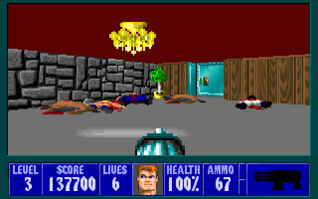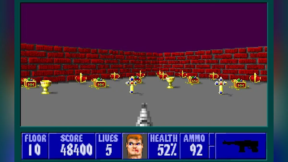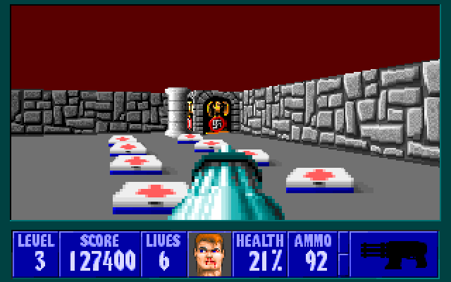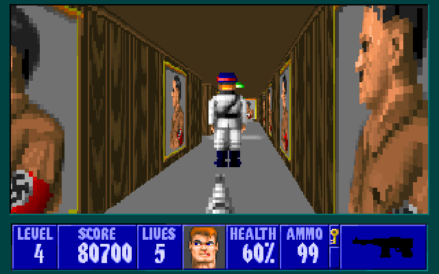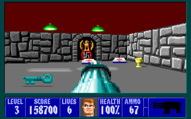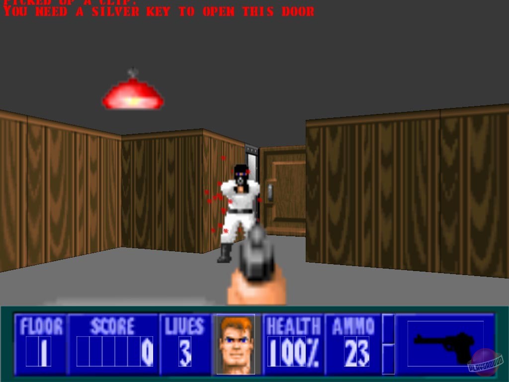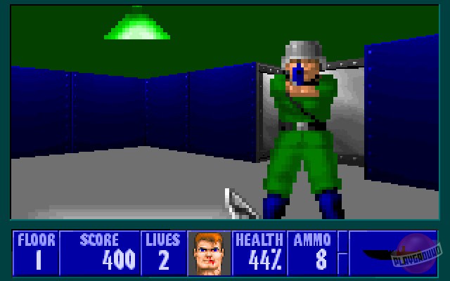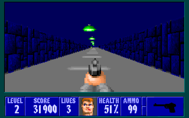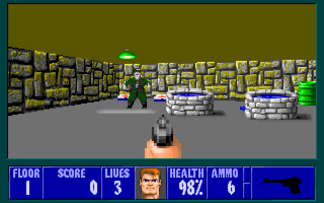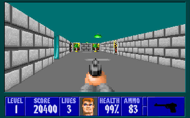 Wolfenstein 3D - один из первых псевдотрехмерных шутеров от первого лица. Главному герою, американскому агенту Уильяму "Джею" Блазковицу, предстоит в одиночку выбраться из тюрьмы, расположенной под сверхзащищенным Замком Вульфенштейн, который контролируют нацистские войска. Помимо отстрела врагов и беготни по коридорам игра так же может предложить нахождение всех секретных локаций и сбор золота, которое разбросано в самых неожиданных местах.