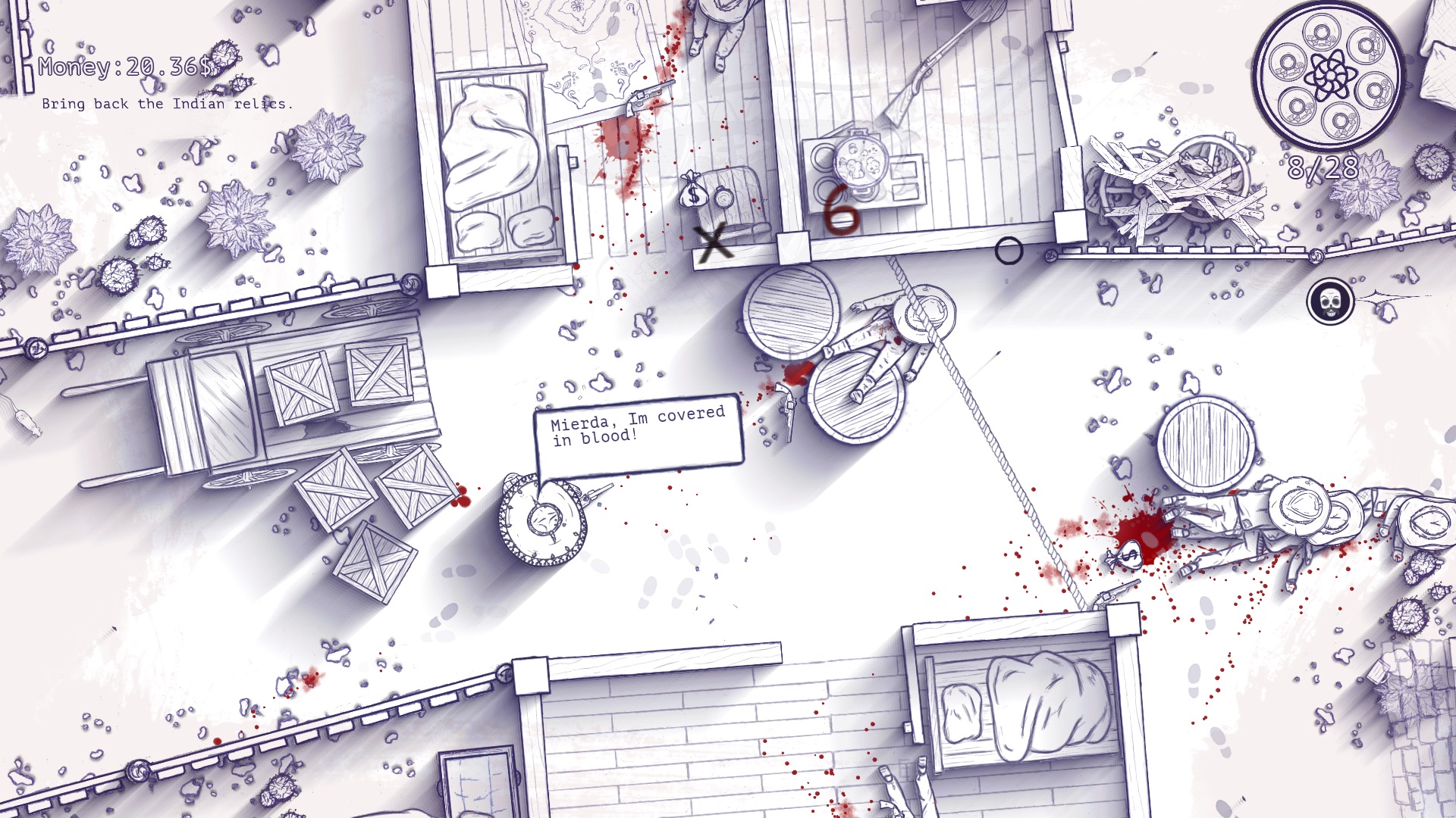 12 is Better Than 6 — хардкорный экшен с видом сверху от инди-разработчиков из студии Ink Stains Games. Игра расскажет историю одного мексиканца, который потерял память, но не потерял желание вести перестрелки с гринго. Вас ожидает достаточно хорошая история, необычная механика боя и графика, напоминающая рисунки из детства.