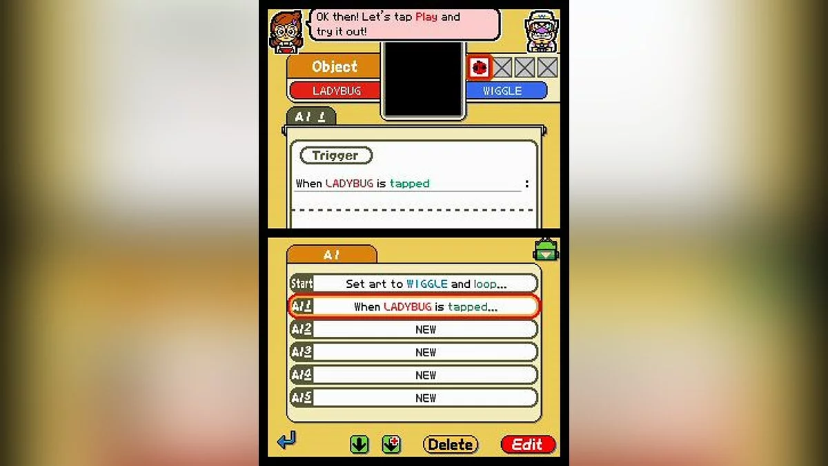 WarioWare: D.I.Y. - редактор мини-игр, который позволяет вам придумывать свои игры, выбирая для них стиль графики, музыку и геймплей. В главном меню есть кнопки: My House, где игрок мастерит свои игры, WarioWare инструкция и My Shop, где игрок записывает свои мини-игры на кассеты. Свои проекты можно закачивать на общий сайт, чтобы делиться ими с другими.