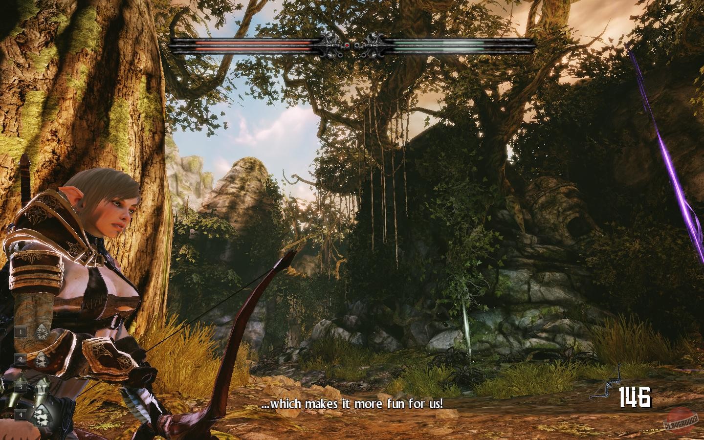 Сюжет Hunted: The Demon's Forge, на первый взгляд, прост, как топор Дару: демоны похищают людей, а вы — те самые ребята, которые должны это прекратить. Но по мере продвижения сквозь шесть глав линейного, но насыщенного приключений сюжета, вы узнаете куда больше о мире игры, его истории и истинных причинах нашествия. Мир здесь мрачный, грязный и опасный, но при этом удивительно живой благодаря отличной химии между главными героями, которые постоянно подкалывают друг друга. Их диалоги — отдельное удовольствие и главный источник юмора в этой, казалось бы, серьезной фэнтези-истории. Отзывы игроков часто сходятся в одном: одиночное прохождение — это зря потраченное время; вся магия раскрывается только в кооперативе, будь то на диване с другом или онлайн.