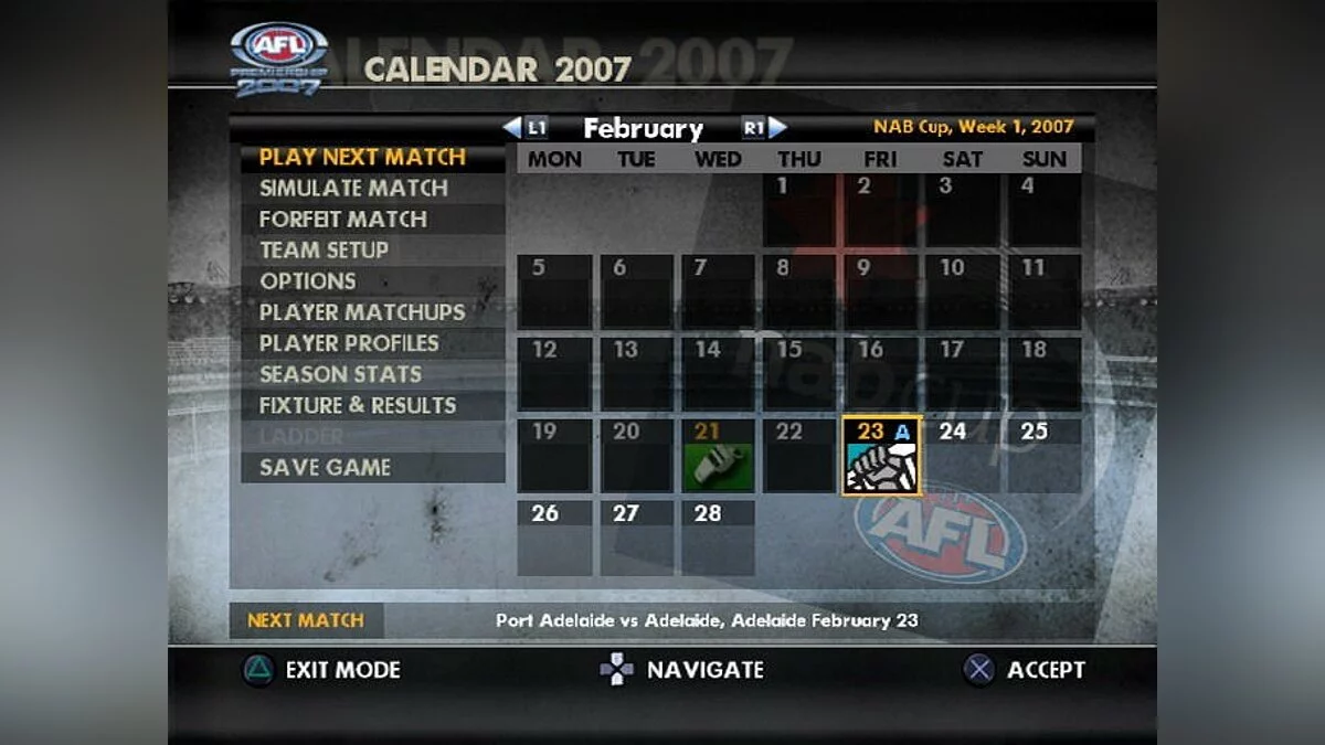 Но где же разнообразие? Не волнуйтесь, в AFL Premiership 2007 найдется занятие на любой вкус. Хотите быстро сыграть один матч? Пожалуйста! Мечтаете пройти весь сезон и завоевать Кубок? Вперед! А может, вы хотите прожить карьеру футболиста от новичка до суперзвезды? Режим карьеры к вашим услугам. Для тех, кто хочет отточить мастерство, есть специальный тренировочный режим, а самые отчаянные могут бросить вызов себе в режиме миссий, где каждая задача — это маленький квест на пути к славе. Игра предлагает множество стратегий, которые можно подстроить под свой стиль, превращая каждый матч в уникальную тактическую головоломку.