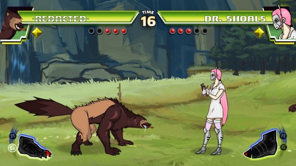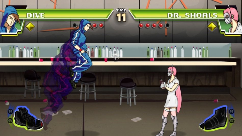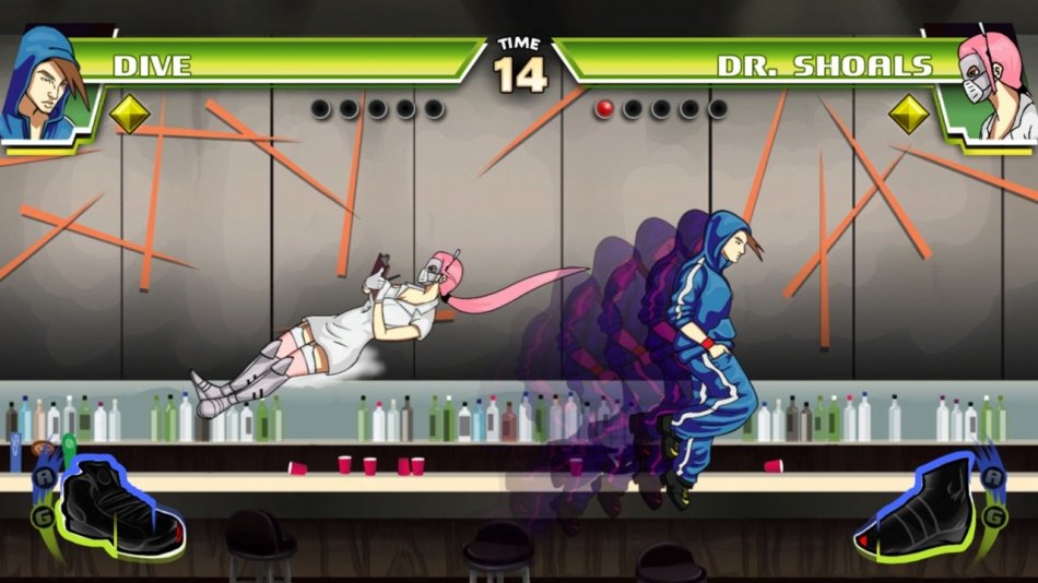 Divekick - это файтинг, где все управление построено на двух кнопках, и который является пародией на большинство существующих файтингов.