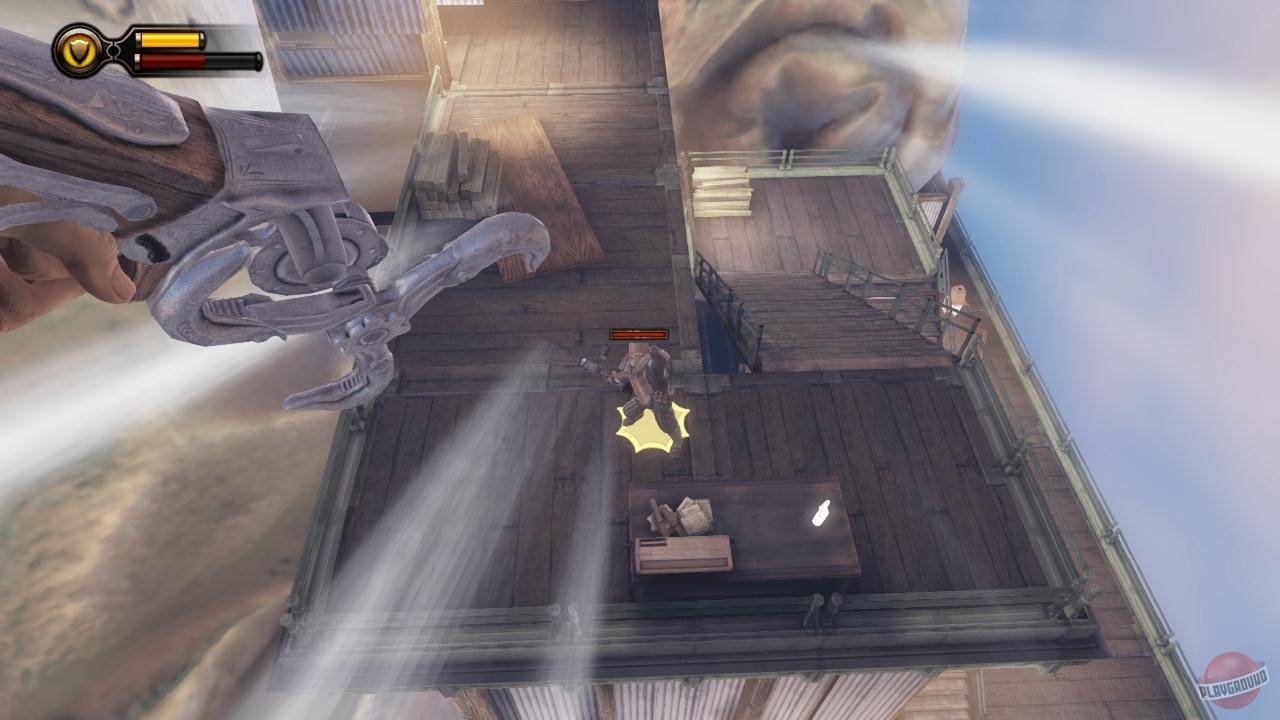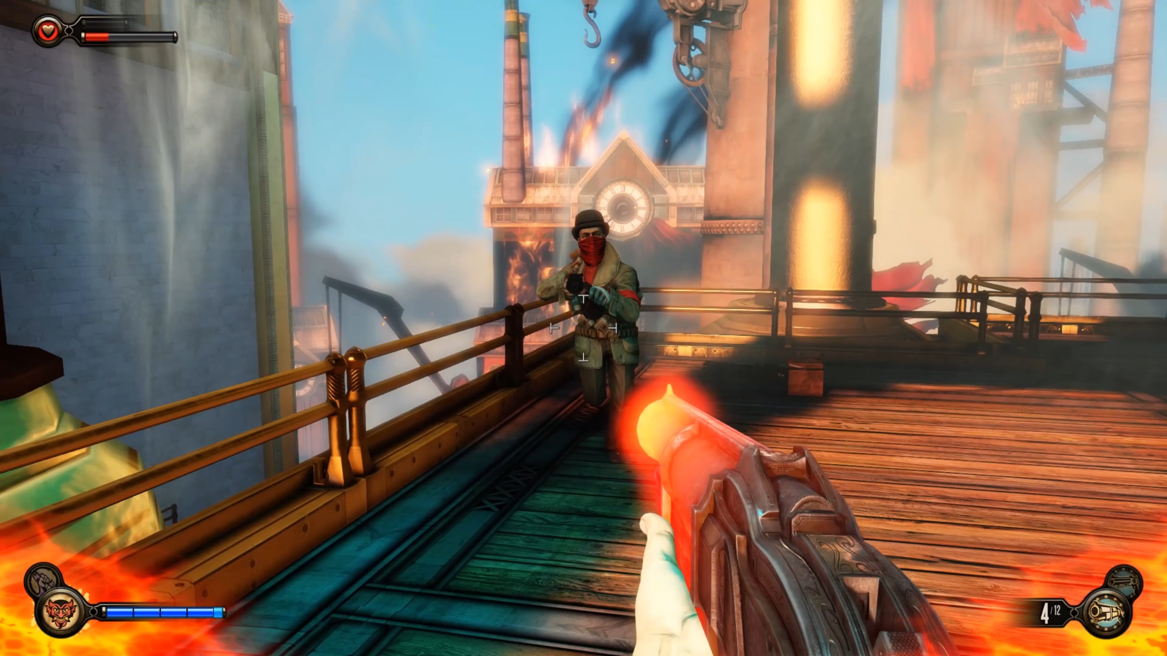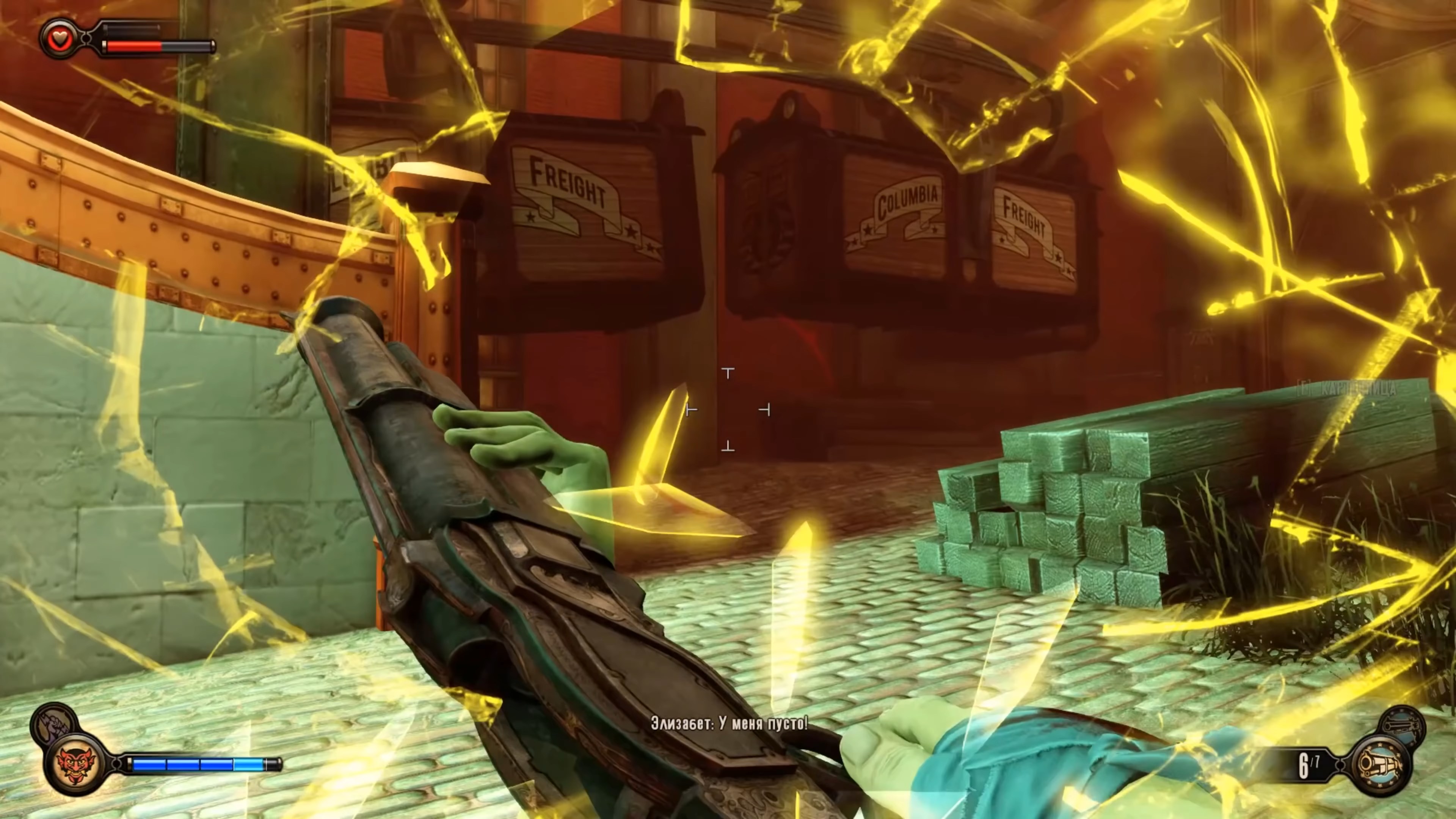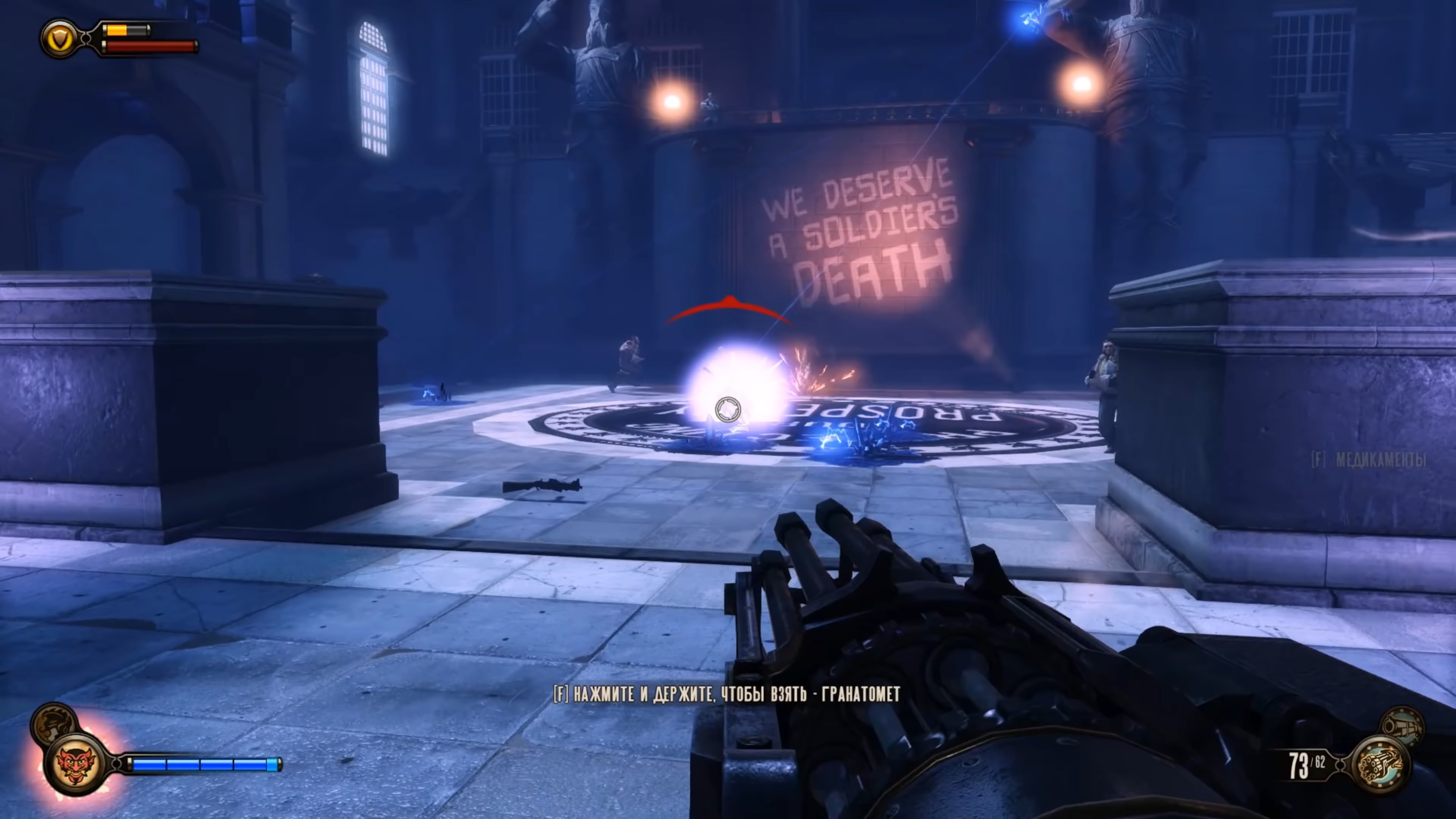 Геймплей BioShock Infinite — это настоящий экшен-коктейль для любителей шутеров от первого лица. Вы не просто стреляете по врагам; вы танцуете над пропастью! Благодаря своему верному «небесному крюку» (Sky-Hook), вы мгновенно перемещаетесь по специальным рельсам между островами Колумбии, устраивая воздушные акробатические номера прямо в разгаре перестрелки. Это не Call of Duty, друзья, это цирк высокого лета! А ещё у вас есть Вигоры — особые силы, которые позволяют вызывать бури, поджигать врагов или даже призывать союзников из других реальностей. Комбинируйте их с вашим оружием и окружением, и каждая схватка превратится в уникальное и зрелищное шоу. Главное — не забывайте про свою напарницу Элизабет, которая не просто стоит в сторонке, а активно помогает вам, доставая из карманов пространства-времени всё, что может пригодиться в бою.