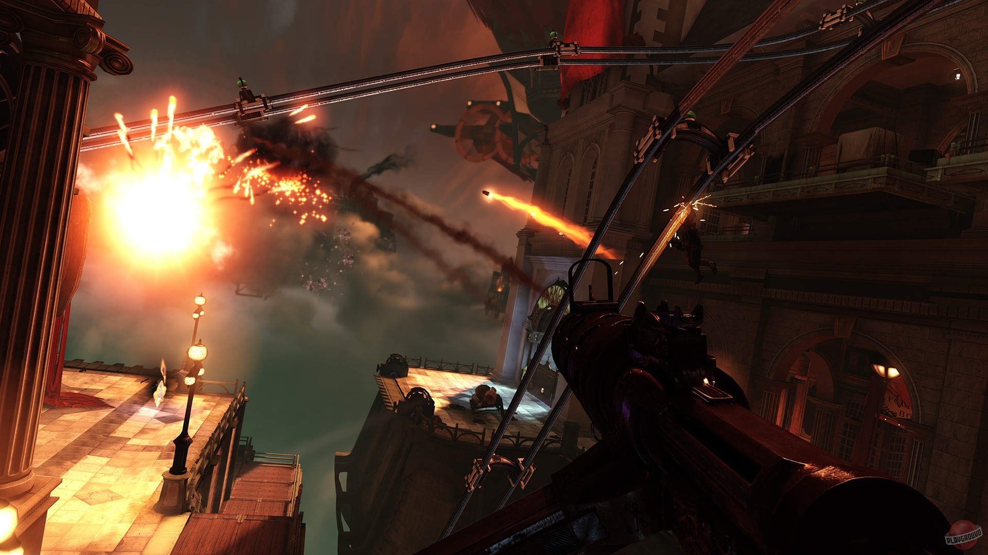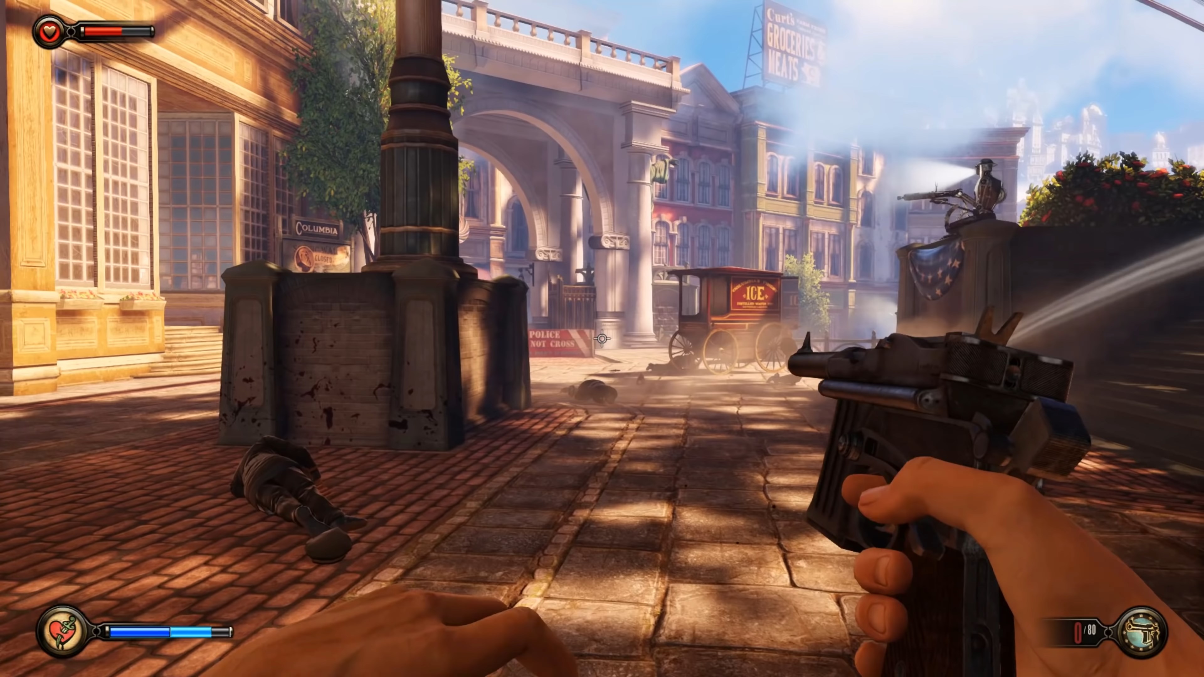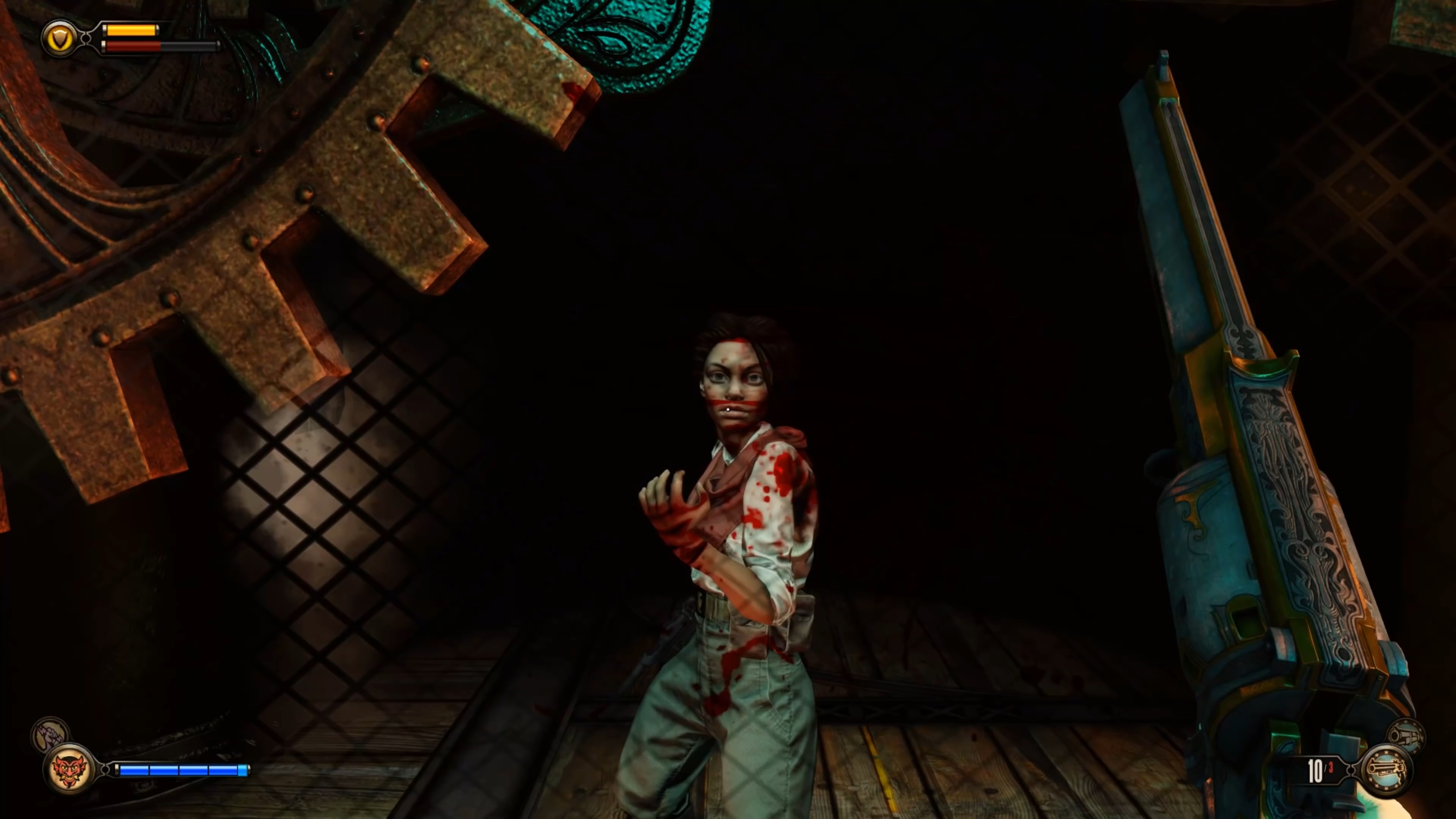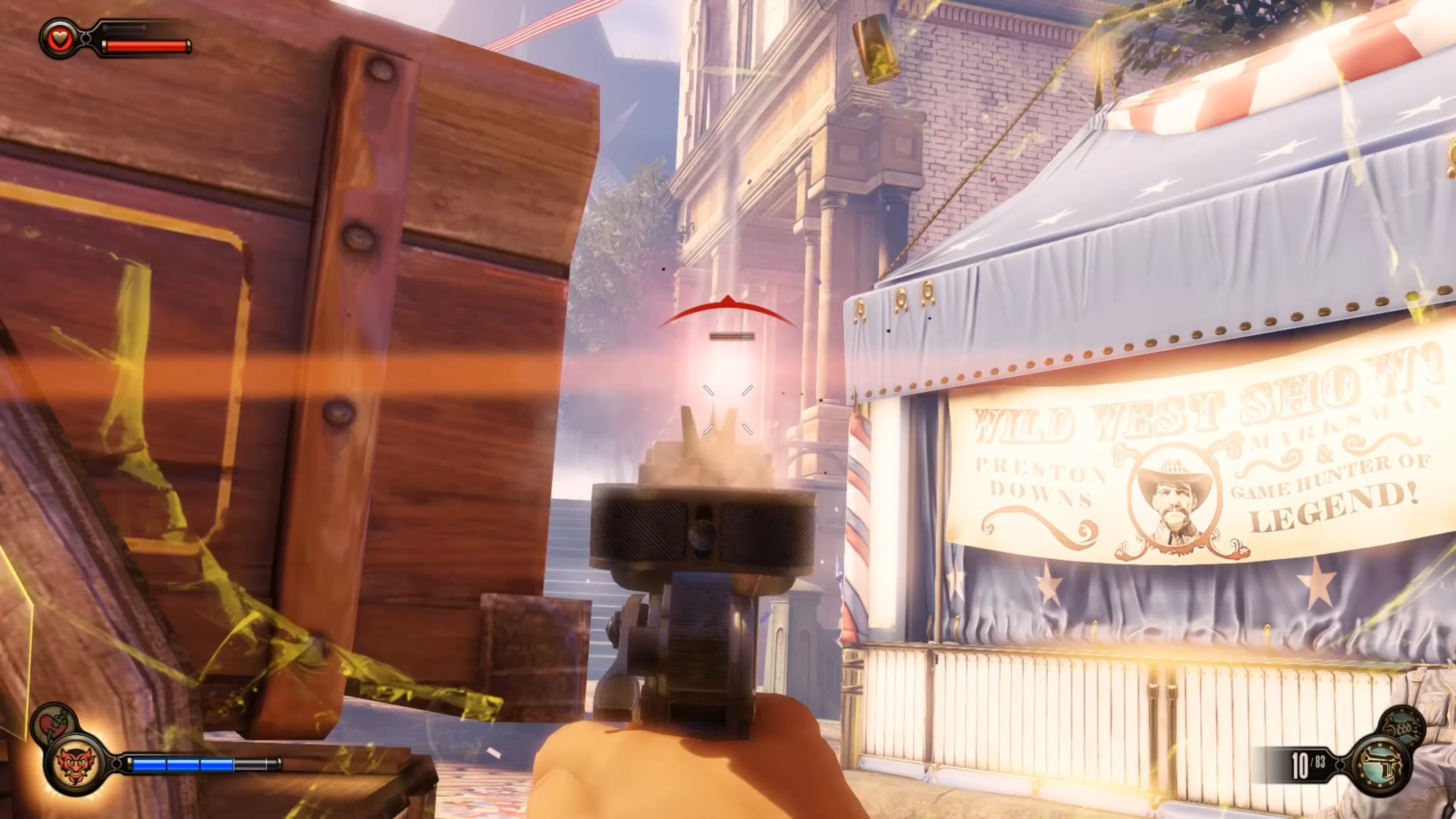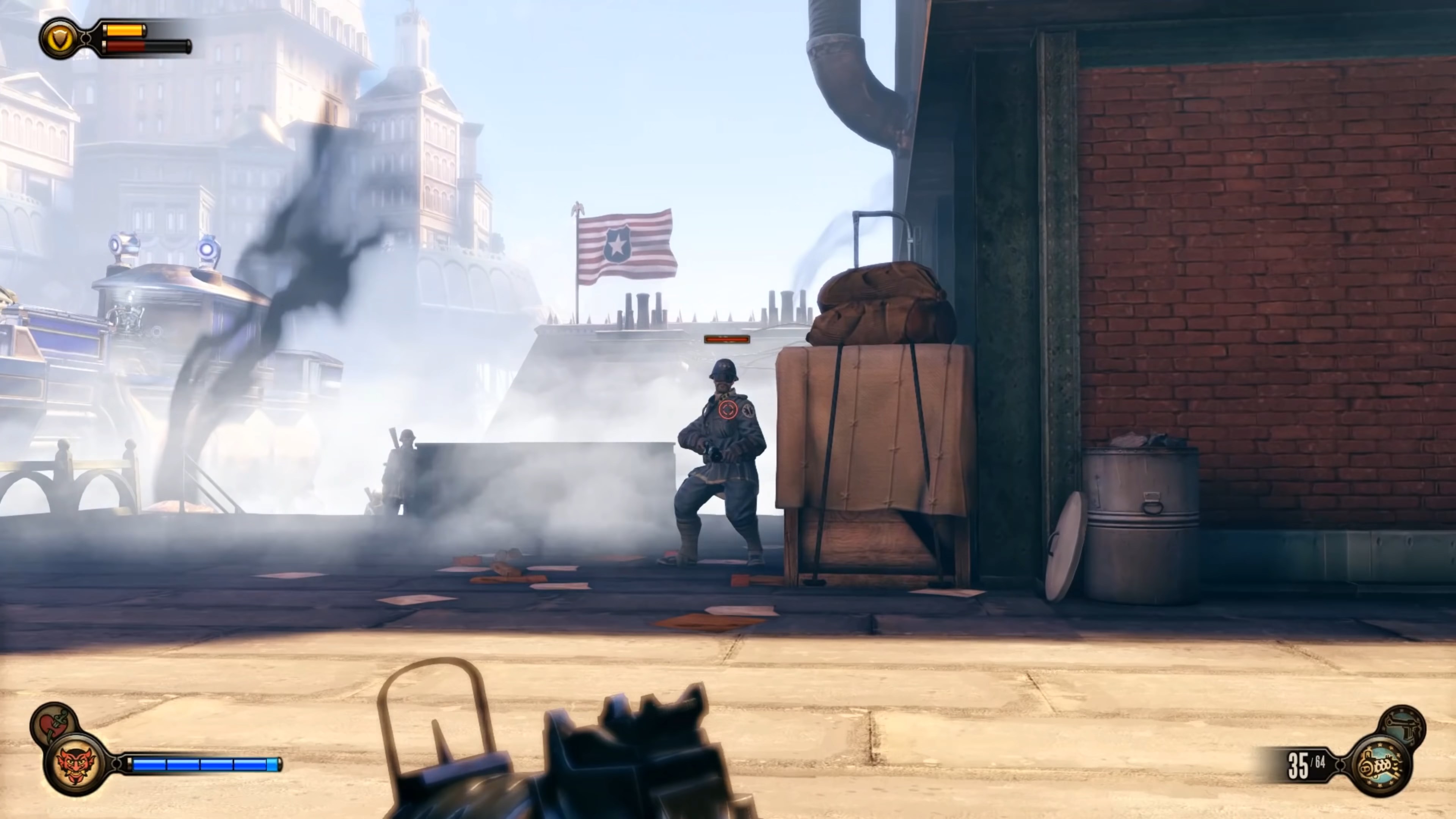 Геймплей BioShock Infinite — это настоящий экшен-коктейль для любителей шутеров от первого лица. Вы не просто стреляете по врагам; вы танцуете над пропастью! Благодаря своему верному «небесному крюку» (Sky-Hook), вы мгновенно перемещаетесь по специальным рельсам между островами Колумбии, устраивая воздушные акробатические номера прямо в разгаре перестрелки. Это не Call of Duty, друзья, это цирк высокого лета! А ещё у вас есть Вигоры — особые силы, которые позволяют вызывать бури, поджигать врагов или даже призывать союзников из других реальностей. Комбинируйте их с вашим оружием и окружением, и каждая схватка превратится в уникальное и зрелищное шоу. Главное — не забывайте про свою напарницу Элизабет, которая не просто стоит в сторонке, а активно помогает вам, доставая из карманов пространства-времени всё, что может пригодиться в бою.