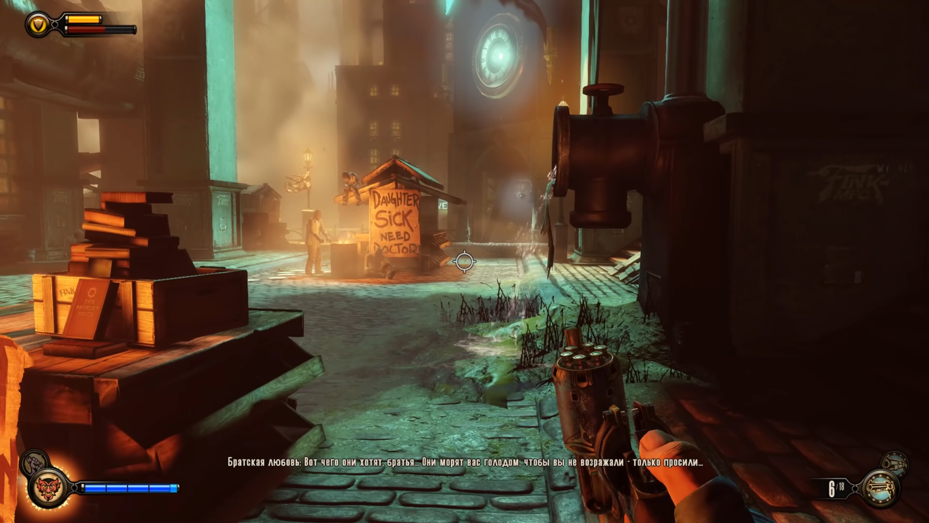 Но главная изюминка BioShock Infinite — это, конечно же, её гениальный, многослойный и совершенно безумный сюжет. На первый взгляд, это история о спасении девушки, но очень скоро вы поймёте, что всё гораздо сложнее. Игра исследует темы свободы воли, предопределения, американской исключительности и того, как одна маленькая монетка может изменить ход всей истории. Сюжет настолько крут, что после прохождения вы гарантированно проведёте несколько часов в интернете, пытаясь понять, что же всё-таки произошло (и да, вы будете пересматривать финал снова и снова). Это не просто игра, это интерактивный философский триллер, который заставит вас задуматься и, возможно, пересмотреть свои взгляды на вселенную.