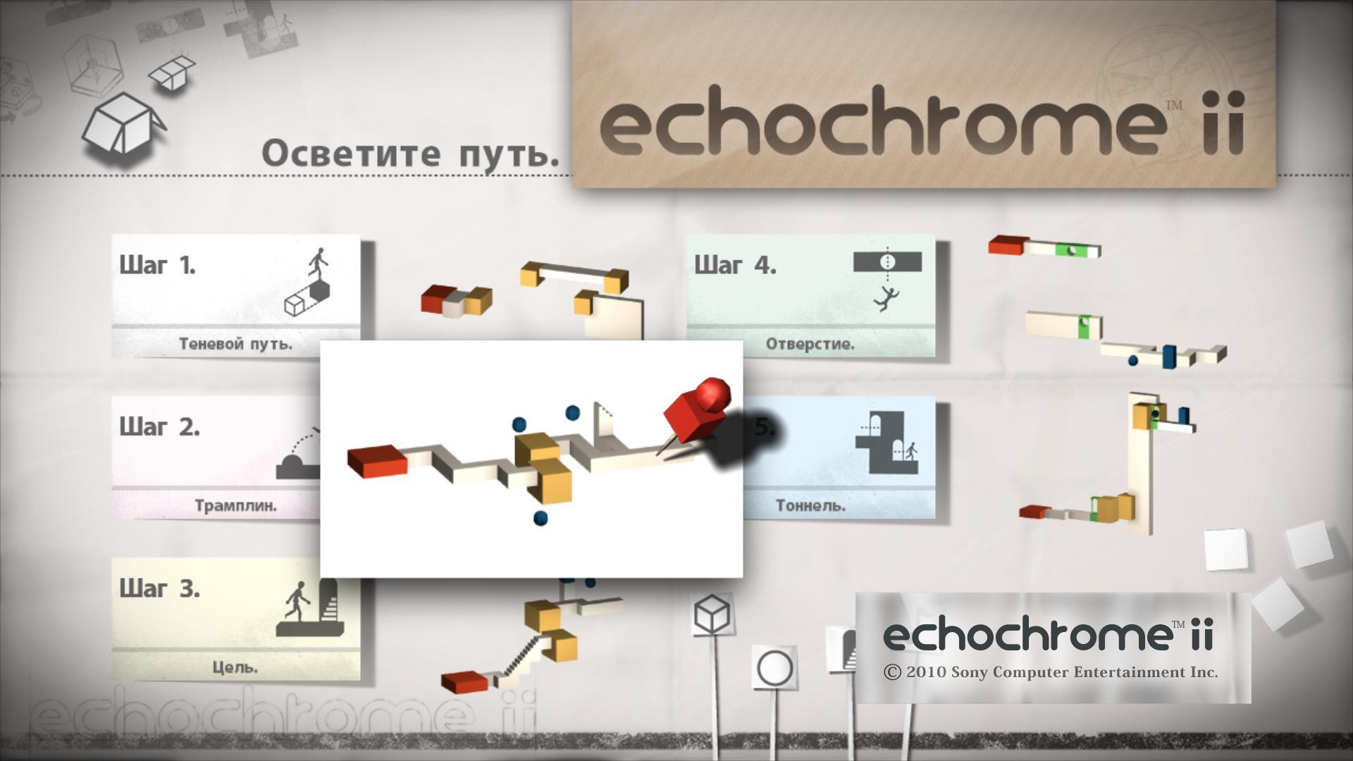 Echochrome II - вторая часть хитрой головоломки, для которой сделана поддержка контроллера Move. Персонаж самостоятельно передвигается по уровню. Ему нужно найти все свои тени, путь для которых мы и делаем безопасным. Теперь мы можем задать цвета окружению.