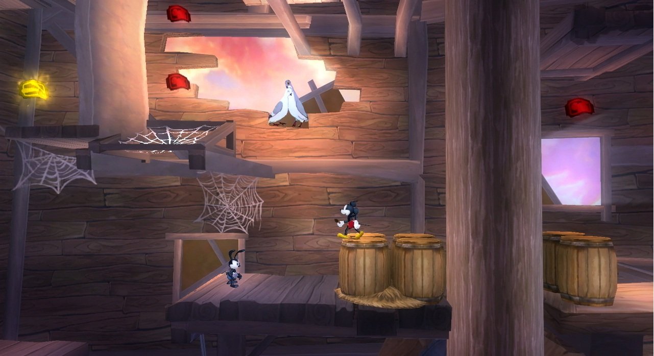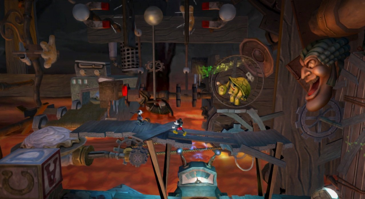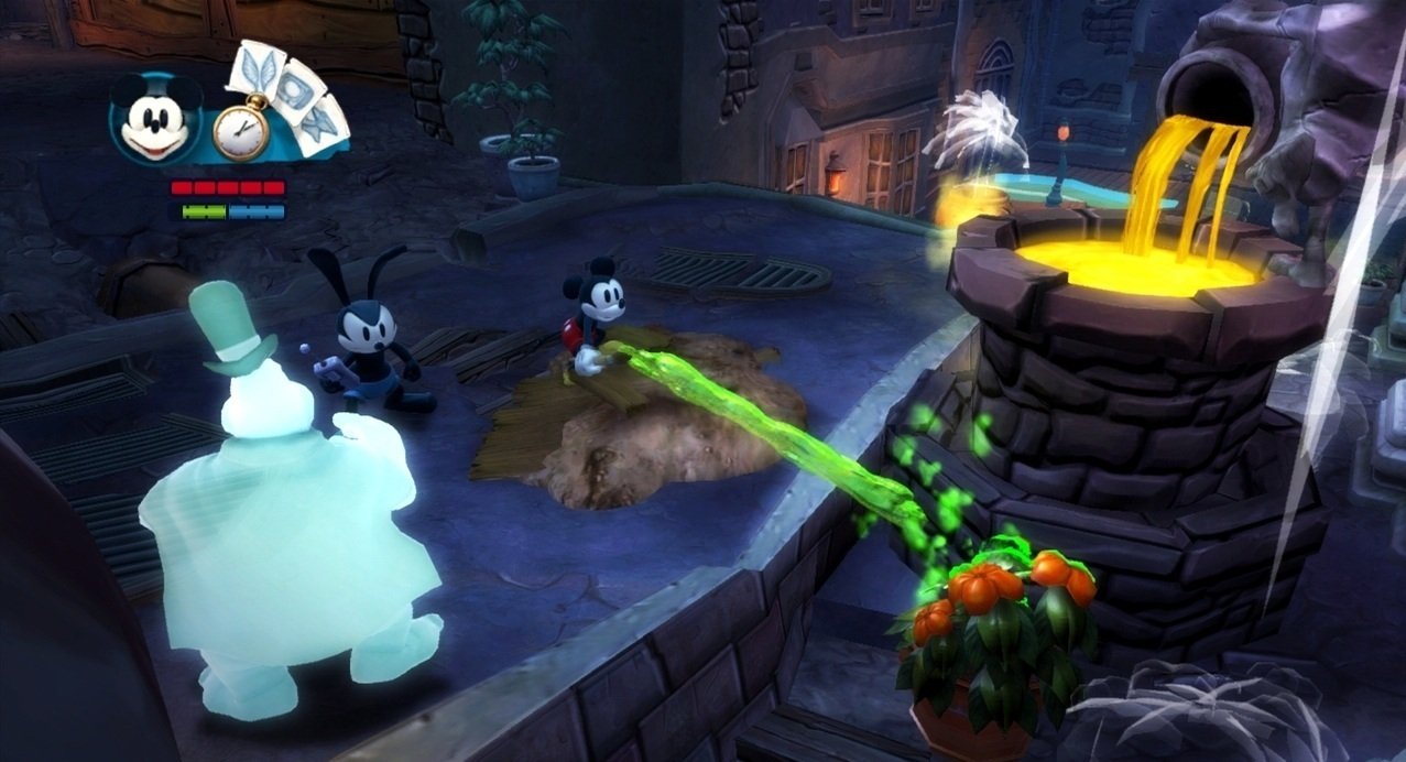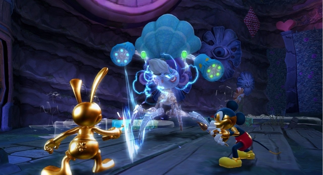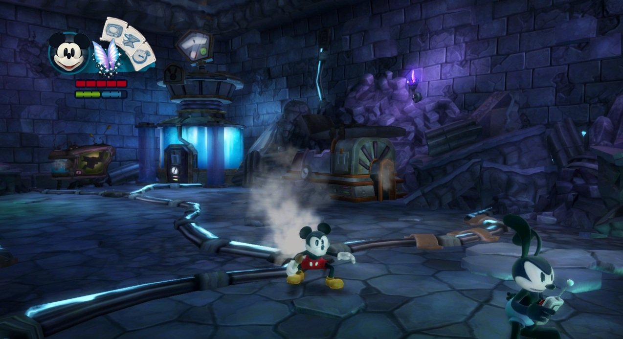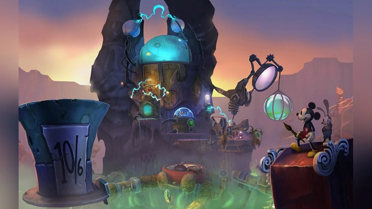 Геймплей Epic Mickey 2: The Power of Two строится на гениальной простоте: у Микки есть волшебная кисть, которой он может либо стирать врагов и препятствия чернилами, либо восстанавливать их краской. А у Освальда — электрическая отвертка и те самые знаменитые уши, которые позволяют ему летать и активировать специальные механизмы. Вместе вы будете решать головоломки, прыгать по платформам и общаться с толпой забытых диснеевских персонажей, каждый из которых готов рассказать свою грустную или смешную историю. Игра пестрит отсылками к классической анимации, так что внимательный глаз обязательно заметит десятки ностальгических деталей. Это не просто игра, это интерактивный музей истории Disney, только с возможностью все там сломать... или починить!