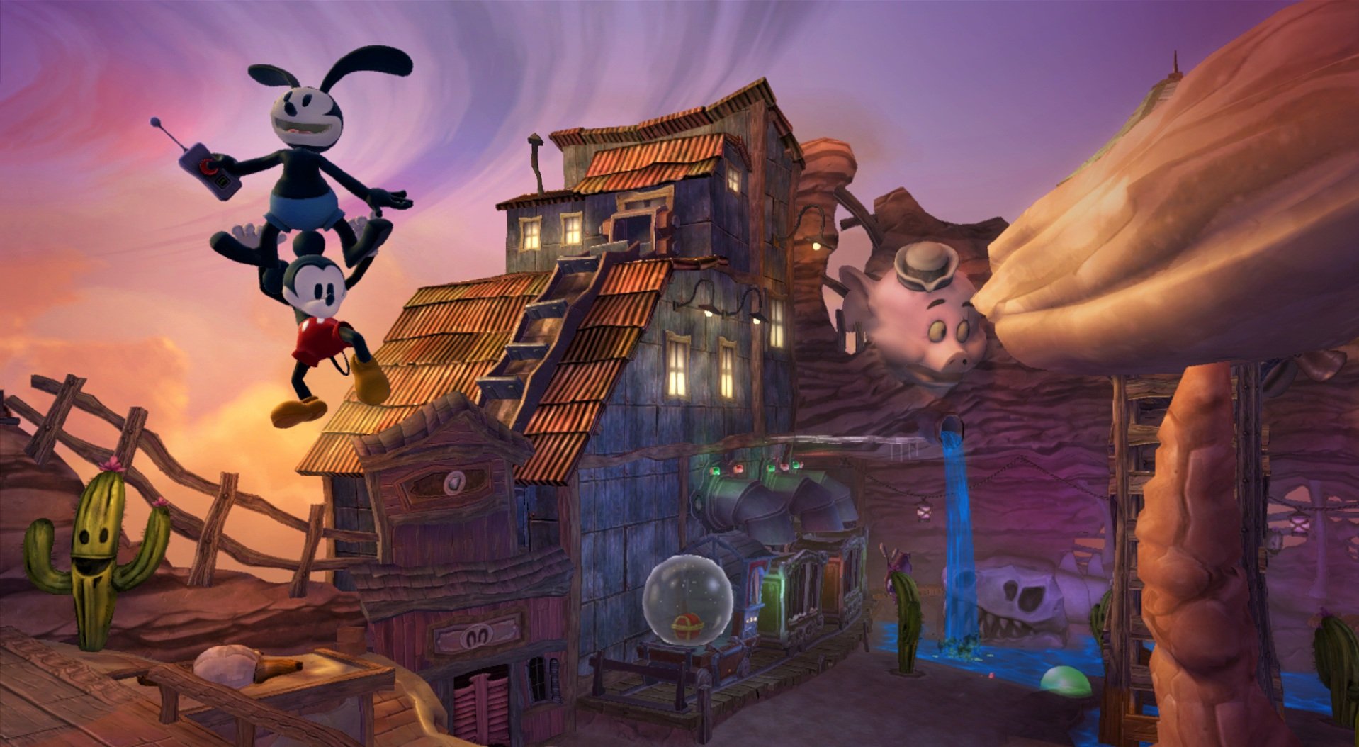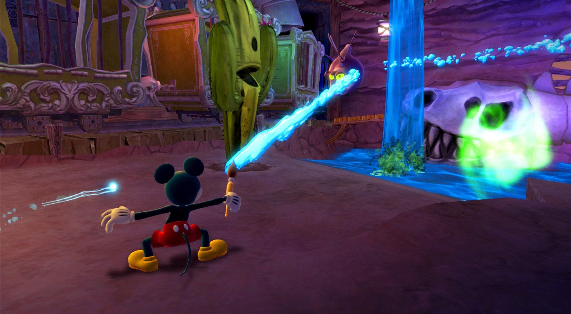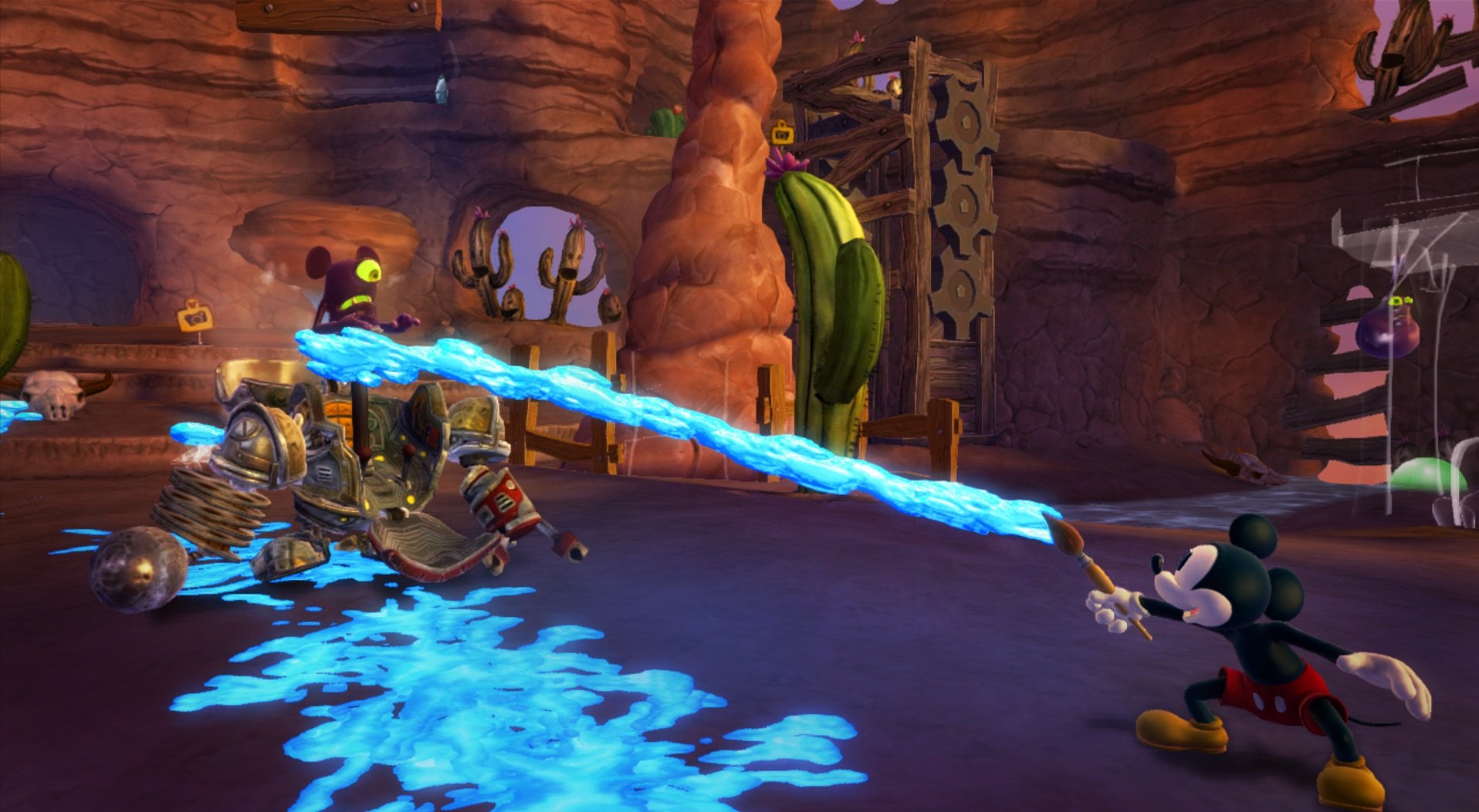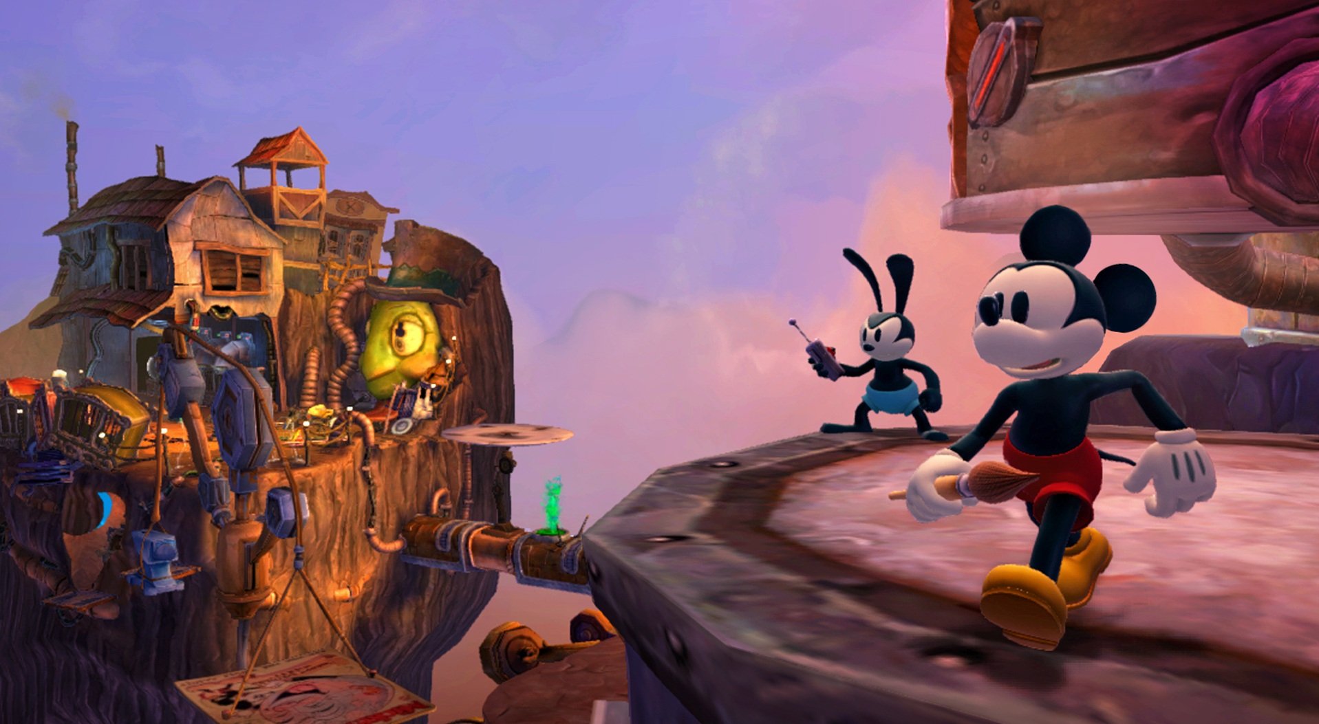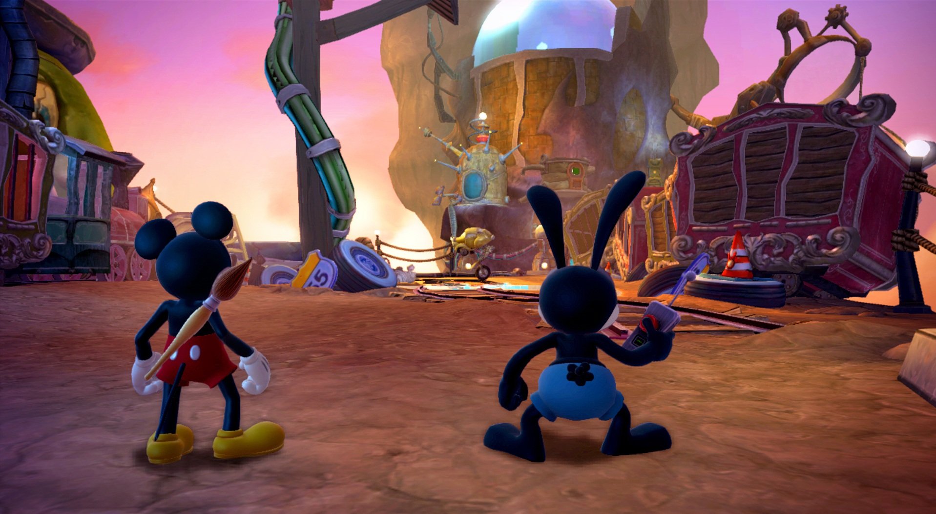 Геймплей Epic Mickey 2: The Power of Two строится на гениальной простоте: у Микки есть волшебная кисть, которой он может либо стирать врагов и препятствия чернилами, либо восстанавливать их краской. А у Освальда — электрическая отвертка и те самые знаменитые уши, которые позволяют ему летать и активировать специальные механизмы. Вместе вы будете решать головоломки, прыгать по платформам и общаться с толпой забытых диснеевских персонажей, каждый из которых готов рассказать свою грустную или смешную историю. Игра пестрит отсылками к классической анимации, так что внимательный глаз обязательно заметит десятки ностальгических деталей. Это не просто игра, это интерактивный музей истории Disney, только с возможностью все там сломать... или починить!