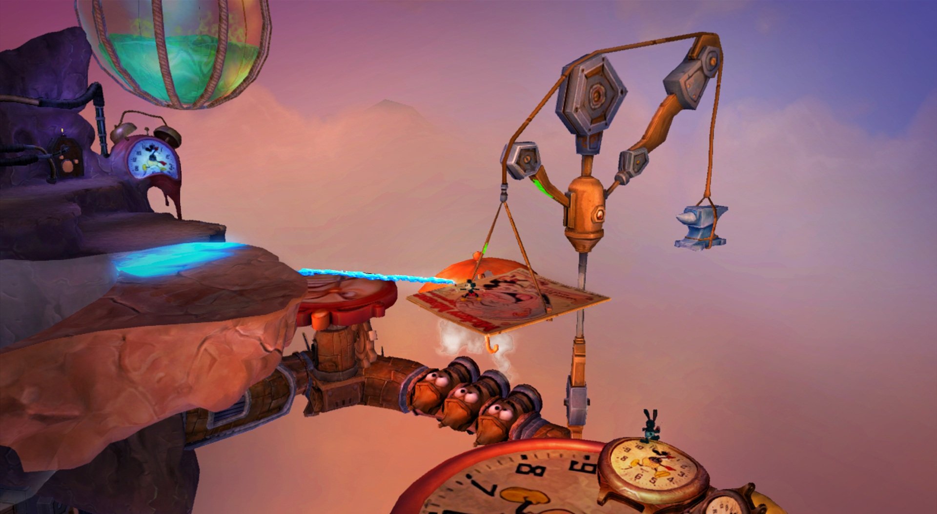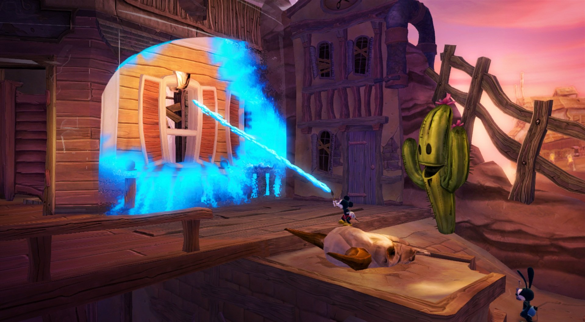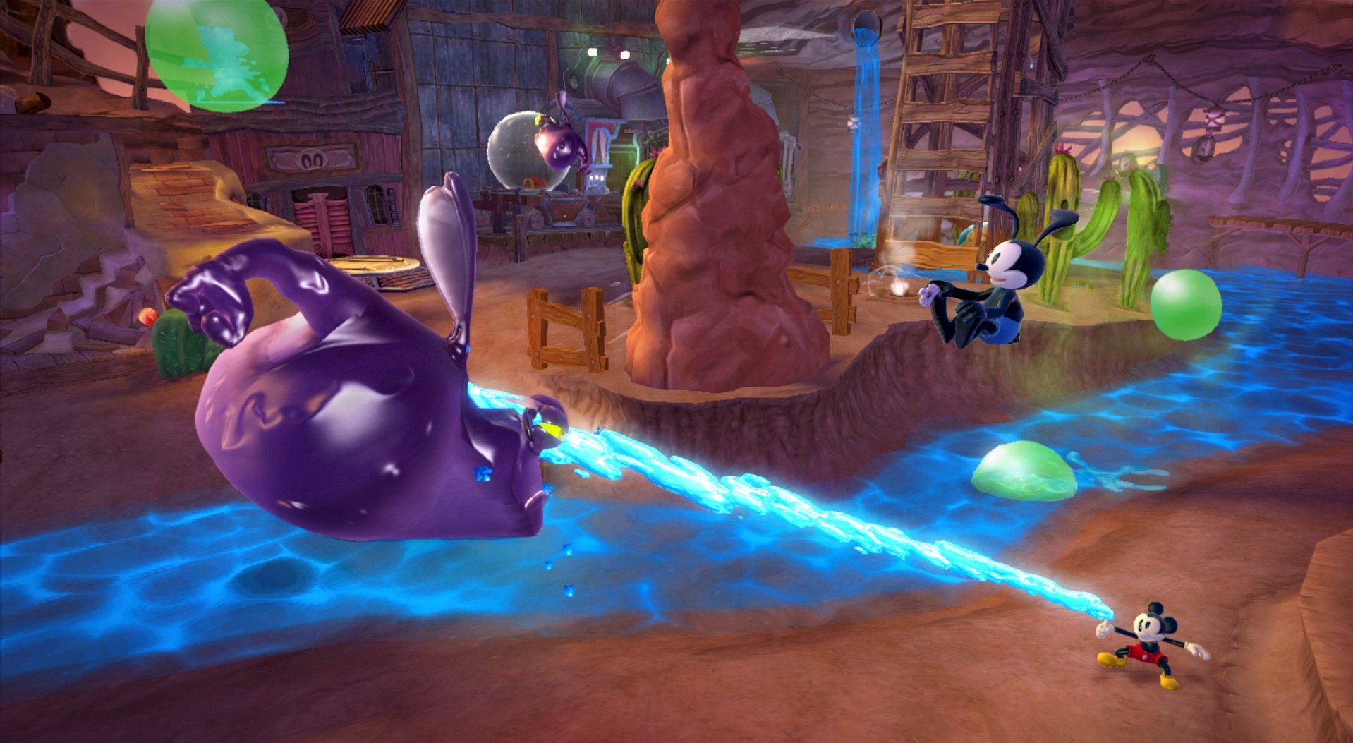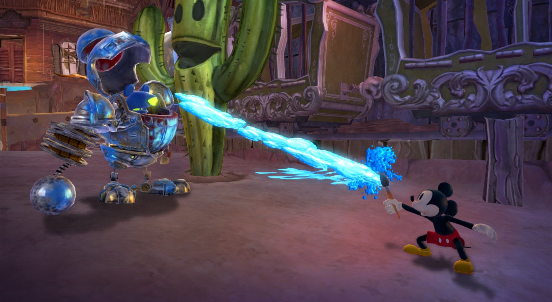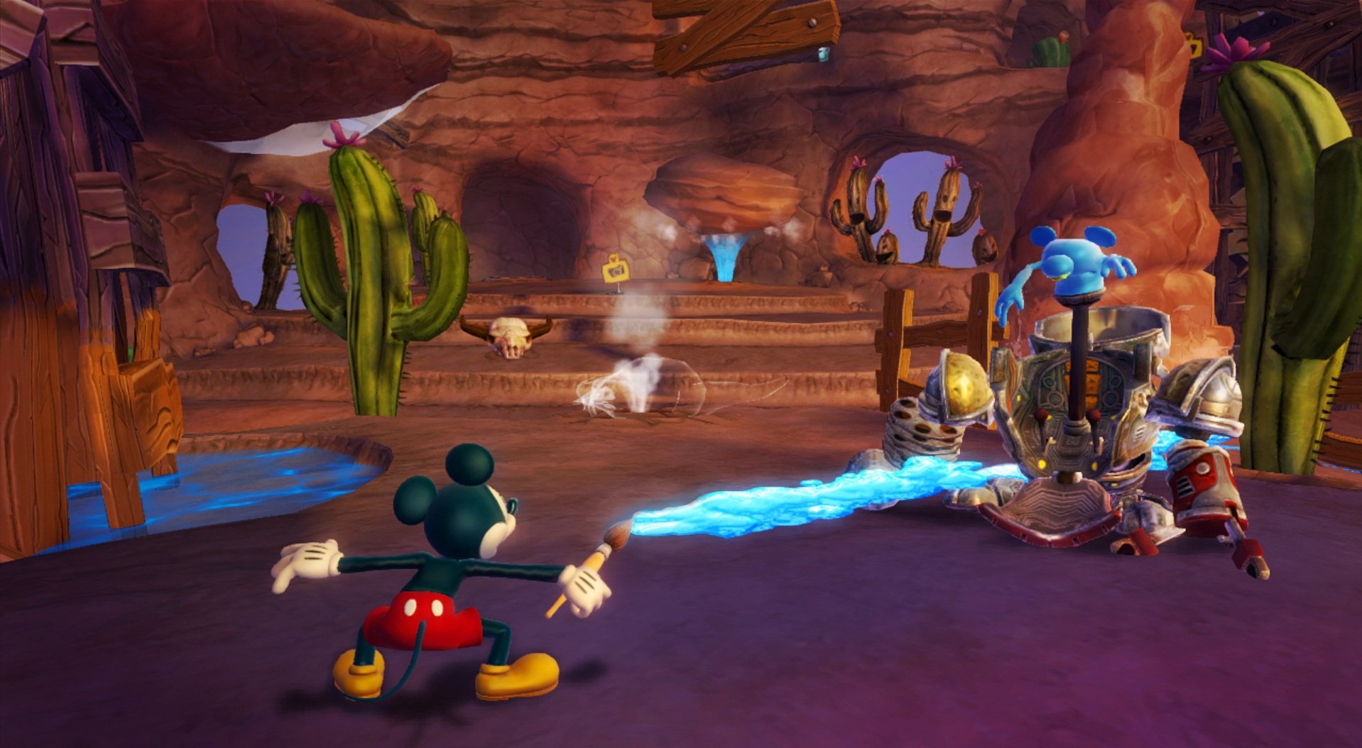 Геймплей Epic Mickey 2: The Power of Two строится на гениальной простоте: у Микки есть волшебная кисть, которой он может либо стирать врагов и препятствия чернилами, либо восстанавливать их краской. А у Освальда — электрическая отвертка и те самые знаменитые уши, которые позволяют ему летать и активировать специальные механизмы. Вместе вы будете решать головоломки, прыгать по платформам и общаться с толпой забытых диснеевских персонажей, каждый из которых готов рассказать свою грустную или смешную историю. Игра пестрит отсылками к классической анимации, так что внимательный глаз обязательно заметит десятки ностальгических деталей. Это не просто игра, это интерактивный музей истории Disney, только с возможностью все там сломать... или починить!
