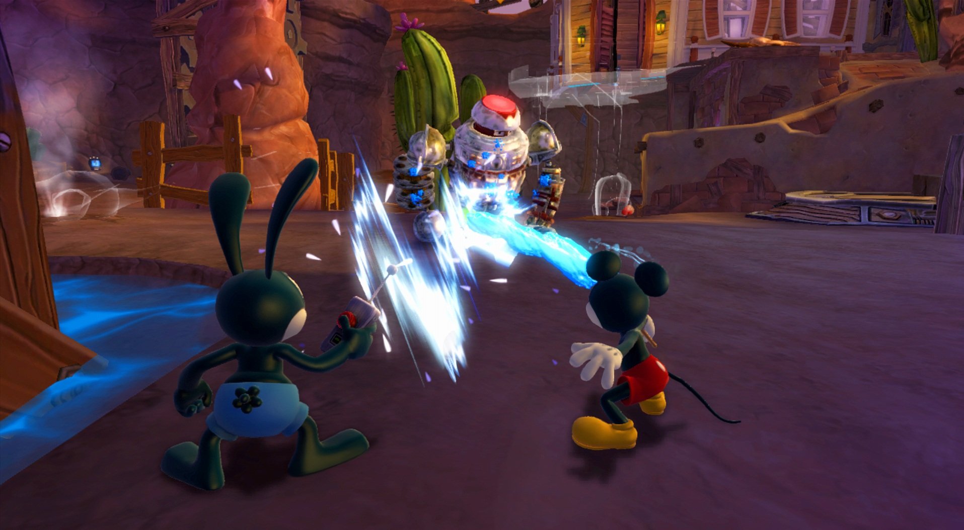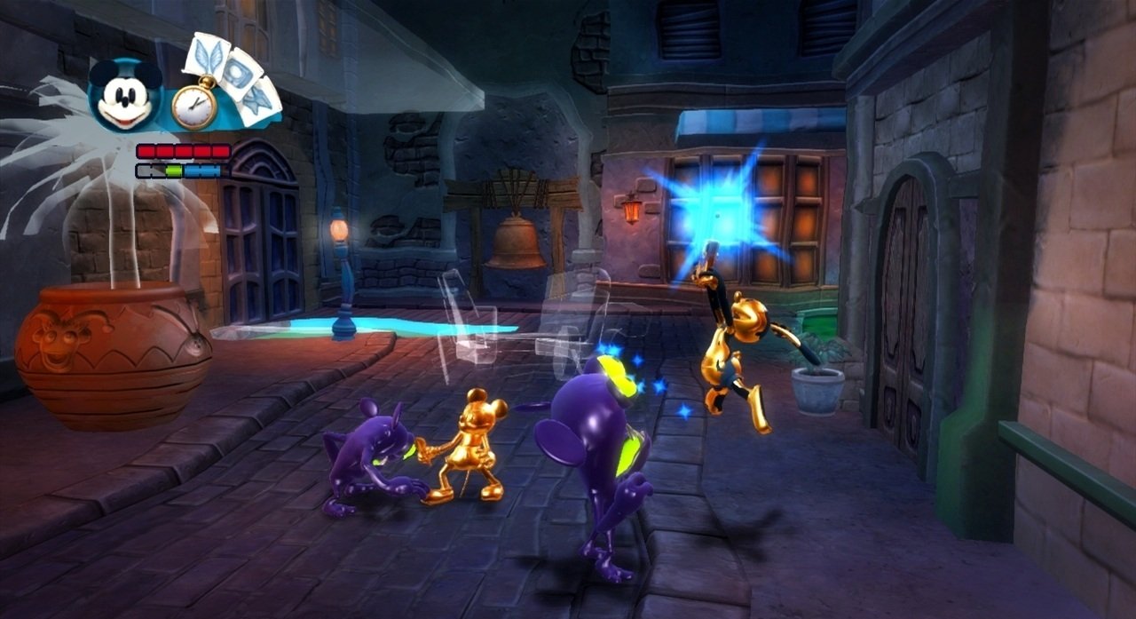 Особенность Epic Mickey 2: The Power of Two — в ее системе морального выбора. Ваши решения влияют на мир вокруг: будете ли вы милосердны и восстанавливать разрушенное, или пойдете путем хаоса и разрушения? Этот выбор отражается даже на концовке игры. Плюс ко всему, разработчики добавили музыкальные номера прямо в геймплей — да-да, герои будут петь вам о своих проблемах, как в настоящем мюзикле! Хотя стоит честно сказать, что управление и камера временами могут вас подводить, особенно если вы играете в одиночку и вам приходится переключаться между персонажами. Но в кооперативе все эти шероховатости легко забываются, ведь куда важнее — это веселье, которое вы получите, спасая мир вместе с двумя самыми необычными героями.