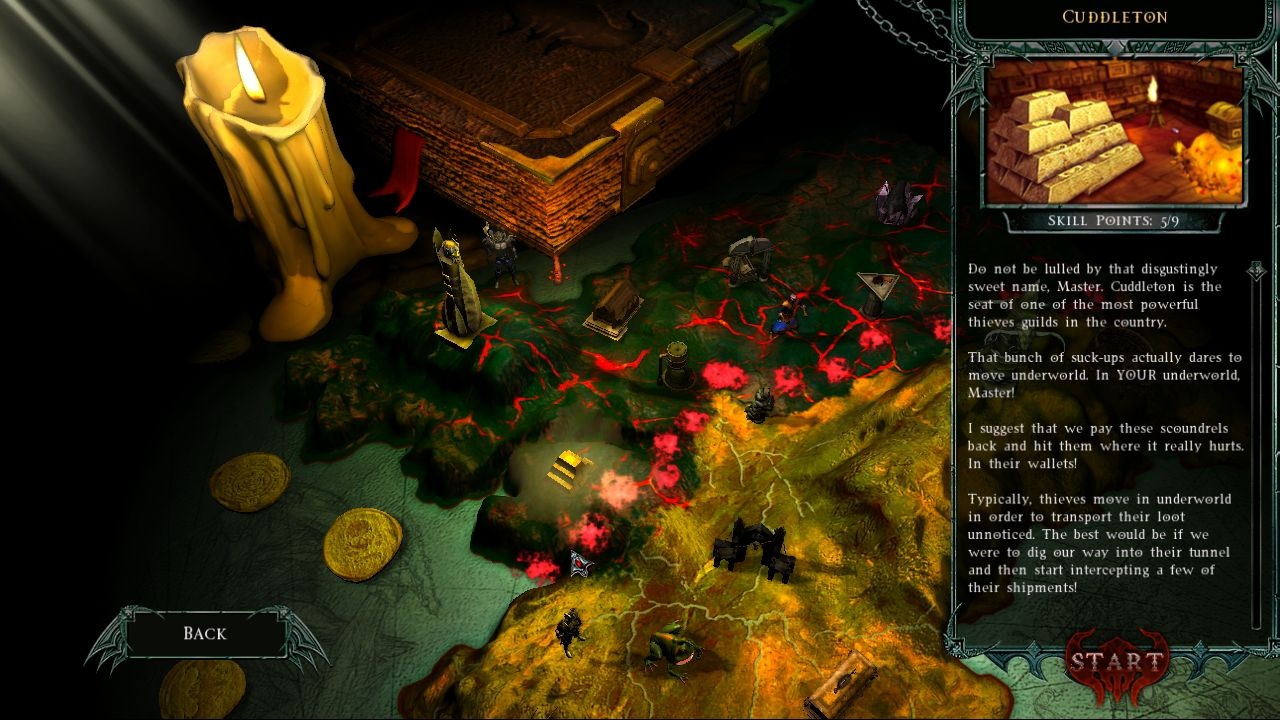 Геймплей Dungeons — это гениальное переворачивание жанра стратегий и игр про подземелья с ног на голову. Вы не управляете отрядом храбрецов, а являетесь злым (ну, или скорее предприимчивым) гением, который строит ловушки, нанимает монстров и тщательно планирует интерьер своих владений. Каждый герой — это источник ценных ресурсов: опыта и души. Но просто убить его — дело неблагодарное. Нужно заманить его в вашу «зону комфорта», где он будет веселиться, пока его внутренняя энергия потихоньку перетекает в ваши закрома. Это как быть владельцем самого странного тематического парка в мире, где посетители — это эльфы, орки и паладины, а аттракционы — это комнаты с монстрами и сокровищами. Сюжетная кампания предлагает 20 заданий, в которых вам предстоит доказать, что именно вы достойны стать единственным правителем всех подземелий.