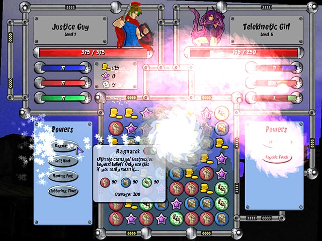 Геймплей Spandex Force строится на увлекательном миксе матч-3 головоломок и классических элементов RPG. Каждый ваш день начинается с патрулирования улиц, где вы будете выслеживать злодеев через мини-игры и решать головоломки, чтобы их обезвредить. Захватили банду карточных мошенников? Отлично, теперь вам предстоит обыграть их в интеллектуальную игру! Победа дарит не только чувство выполненного долга, но и ценные очки опыта для прокачки ваших суперспособностей. Хотите стать мастером телекинеза или, может, предпочитаете ловкость и акробатику? Все в ваших руках! Игра предлагает множество вариантов развития вашего персонажа, делая каждый прохождение уникальным. А еще вас ждет целая команда таких же эксцентричных коллег-супергероев, с которыми можно объединяться для выполнения особо сложных заданий.