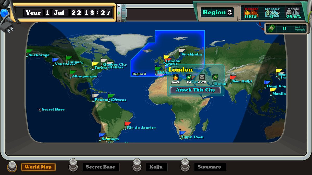 Kaiju-a-Gogo — это аркада с изометрическим видом с элементами стратегии от мастеров из студии Kerberos Productions. Издает игру компания Kerberos Productions.