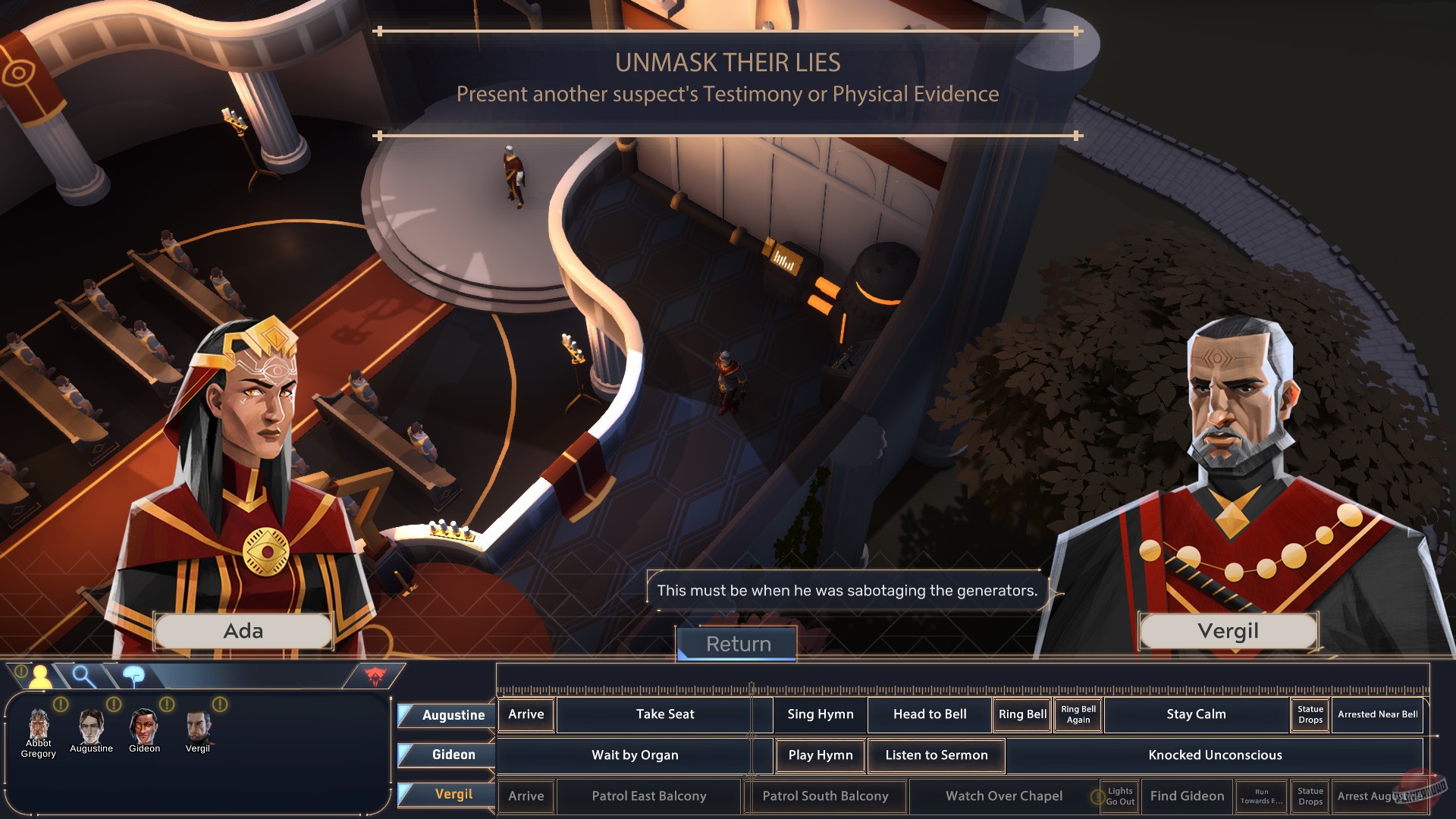 Lucifer Within Us — это инновационный детективный квест от создателей The Shrouded Isle, который полностью отказывается от надоевших QTE и головоломок ради чистой, неразбавленной расследовательской работы. Суть геймплея проста, но гениальна: вы анализируете показания свидетелей и подозреваемых, а затем используете уникальную способность «переключаться» между разными версиями событий — альтернативными временными линиями. Заметили нестыковку? Отлично! Вы нашли ключ к разгадке. Эта механика «временных потоков» превращает каждый диалог в захватывающую интеллектуальную дуэль, где каждое слово может быть ложью, а каждая деталь — уликой. Забудьте про поиск ключей от сундука; здесь вы ищете противоречия в рассказах, чтобы докопаться до демонической сути преступления.