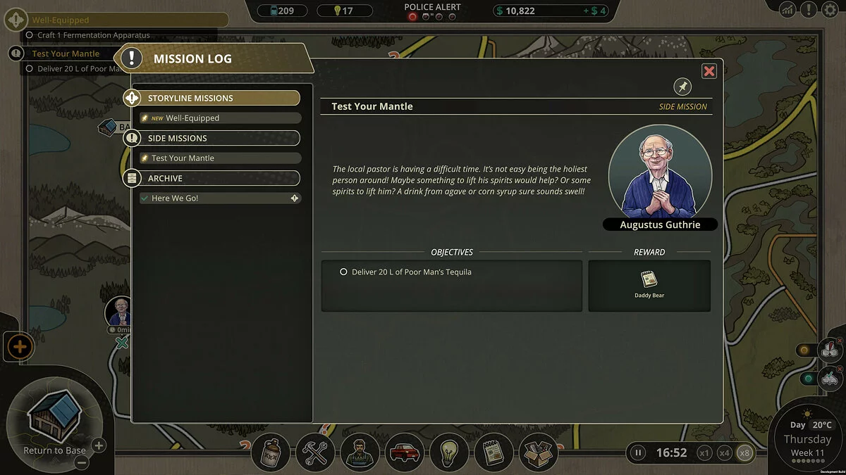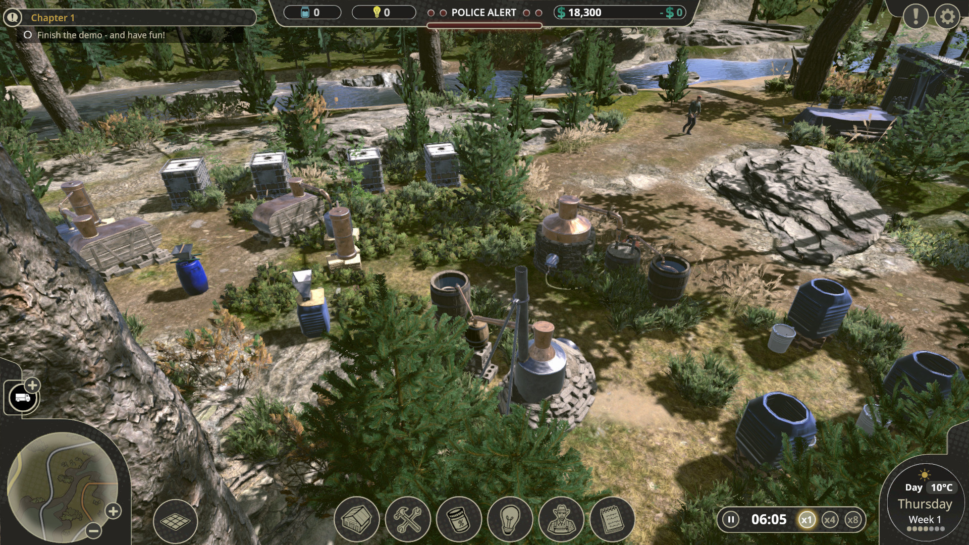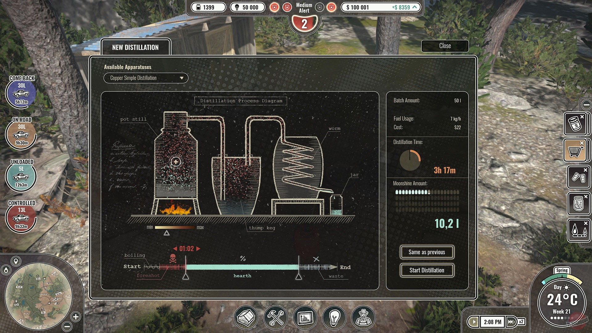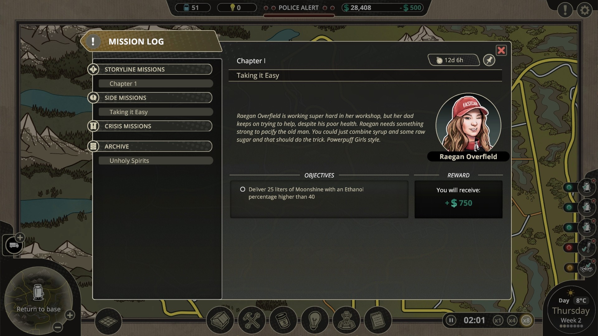 Главный герой руководит империей самогоноварения. По мере прохождения он нанимает работников и старается избегать полицейских с федеральными агентами. Также, он сталкиваться с дорожными событиями во время доставки. Как закончится история, зависит исключительно от игрока.
