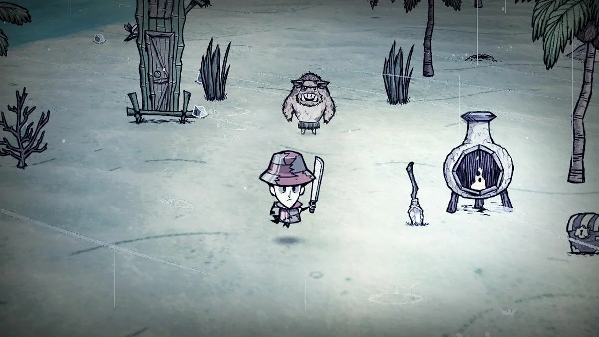 Don't Starve: Shipwrecked — это симулятор выживания в открытом мире с процедурной генерацией, где каждый запуск дарит уникальную карту и новые кошмары. Основной геймплей строится вокруг знакомых по оригиналу механик: нужно собирать ресурсы (теперь это не только древесина, но и водоросли, кораллы и ракушки), готовить еду (осторожно, некоторые морепродукты могут быть... специфичными), строить убежища и крафтить полезные предметы. Но главная фишка — это море! Вам предстоит сконструировать свой первый плот (а потом и более продвинутые корабли), чтобы исследовать океан, находить новые острова с ценными ресурсами и тайнами, а также убегать от разъяренных кракенов и других морских ужасов. Сезонность здесь достигает новых высот: от ураганов, которые сносят ваши постройки, до засух, превращающих все в пепел, и вулканической зимы, где пепел сыплется с неба, как снежок из ада. Выживание в Don't Starve: Shipwrecked — это постоянный вызов, требующий стратегии, быстрой реакции и здоровой доли абсурдного оптимизма.