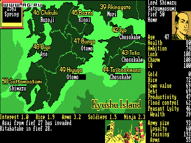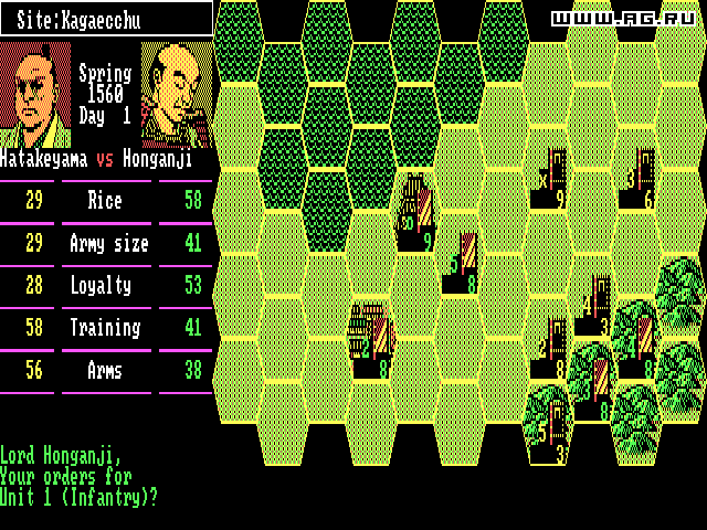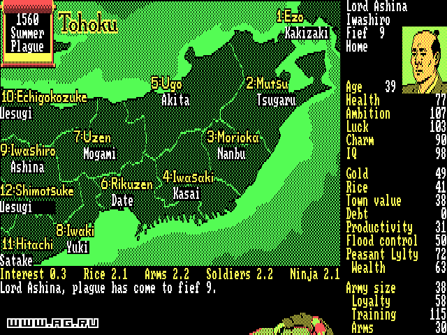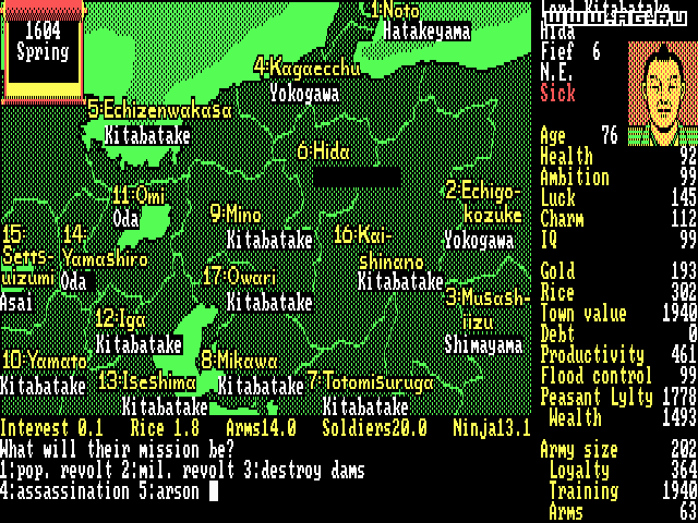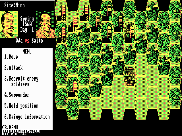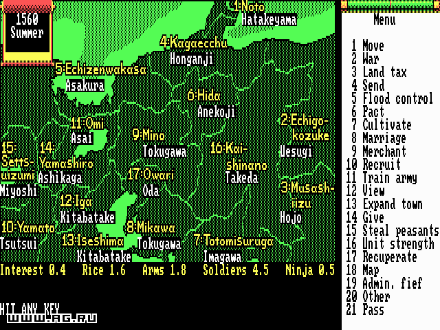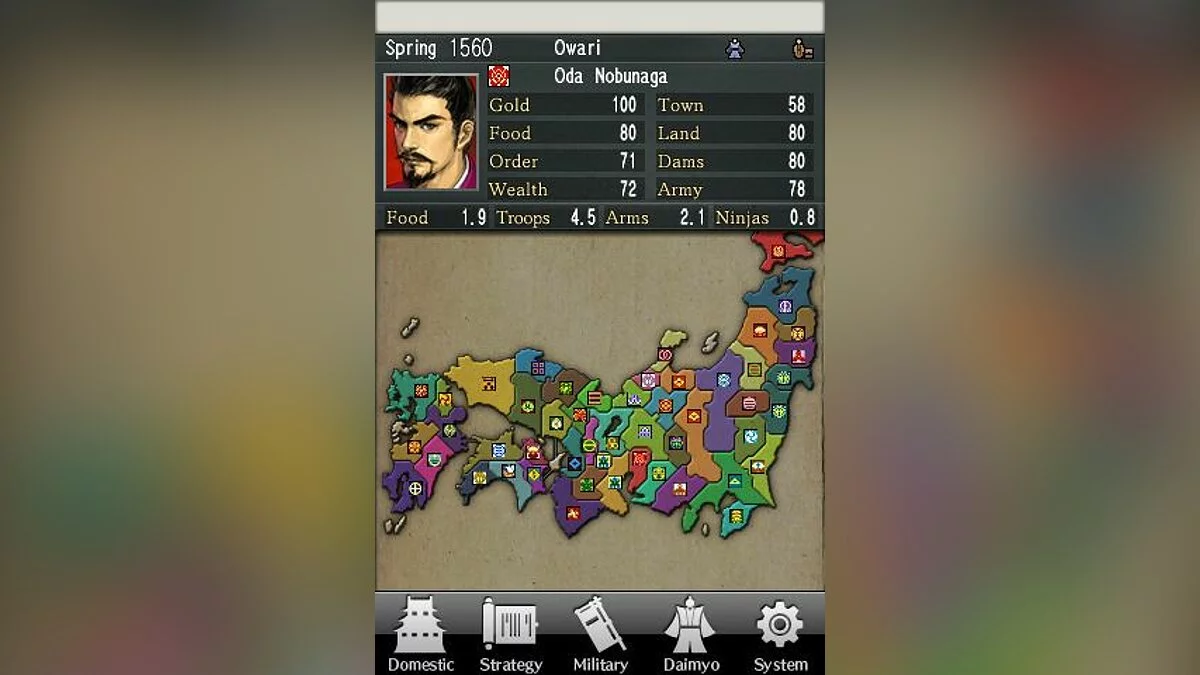 Nobunaga's Ambition — пошаговая историческая стратегия с видом сверху. События игры разворачиваются в Японии периода Сэнгоку 16 столетия. Вам предстоит выбрать свой путь к объединению страны, раздробленной на множество феодальных государств, под своим руководством.