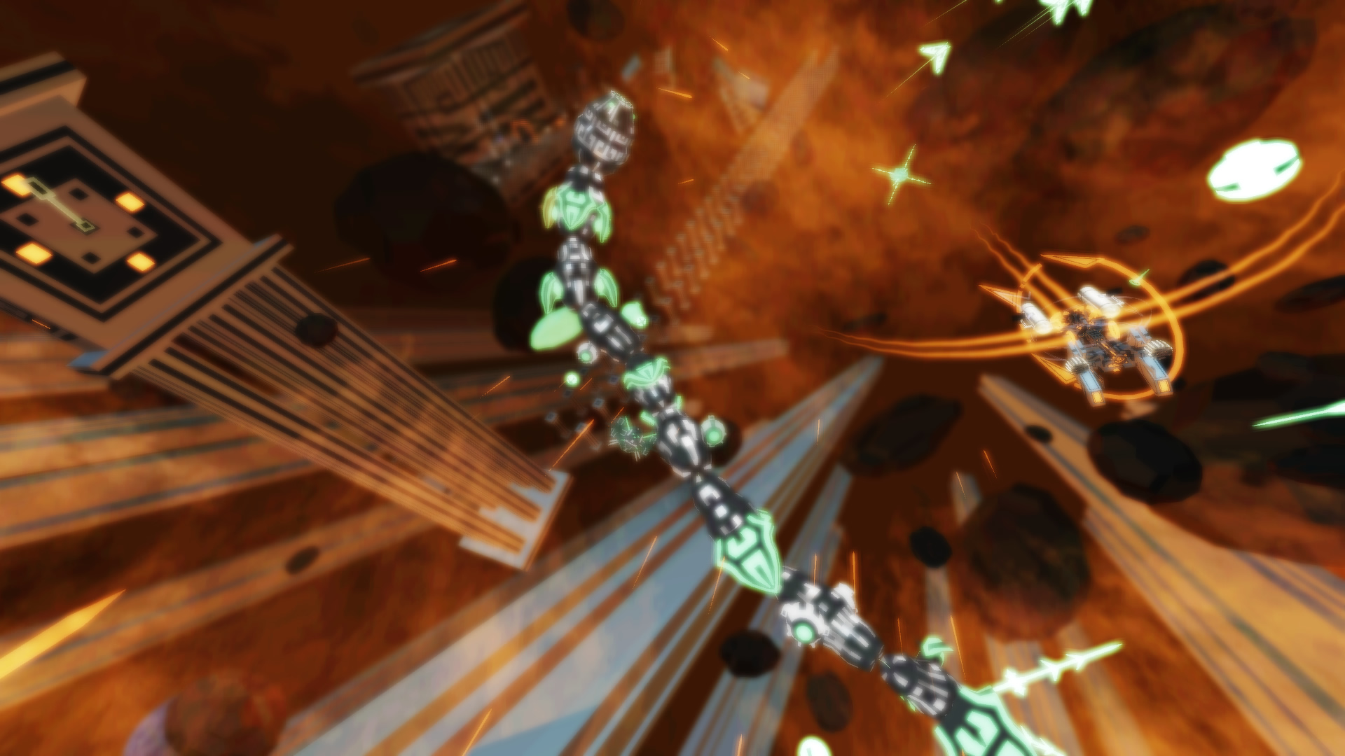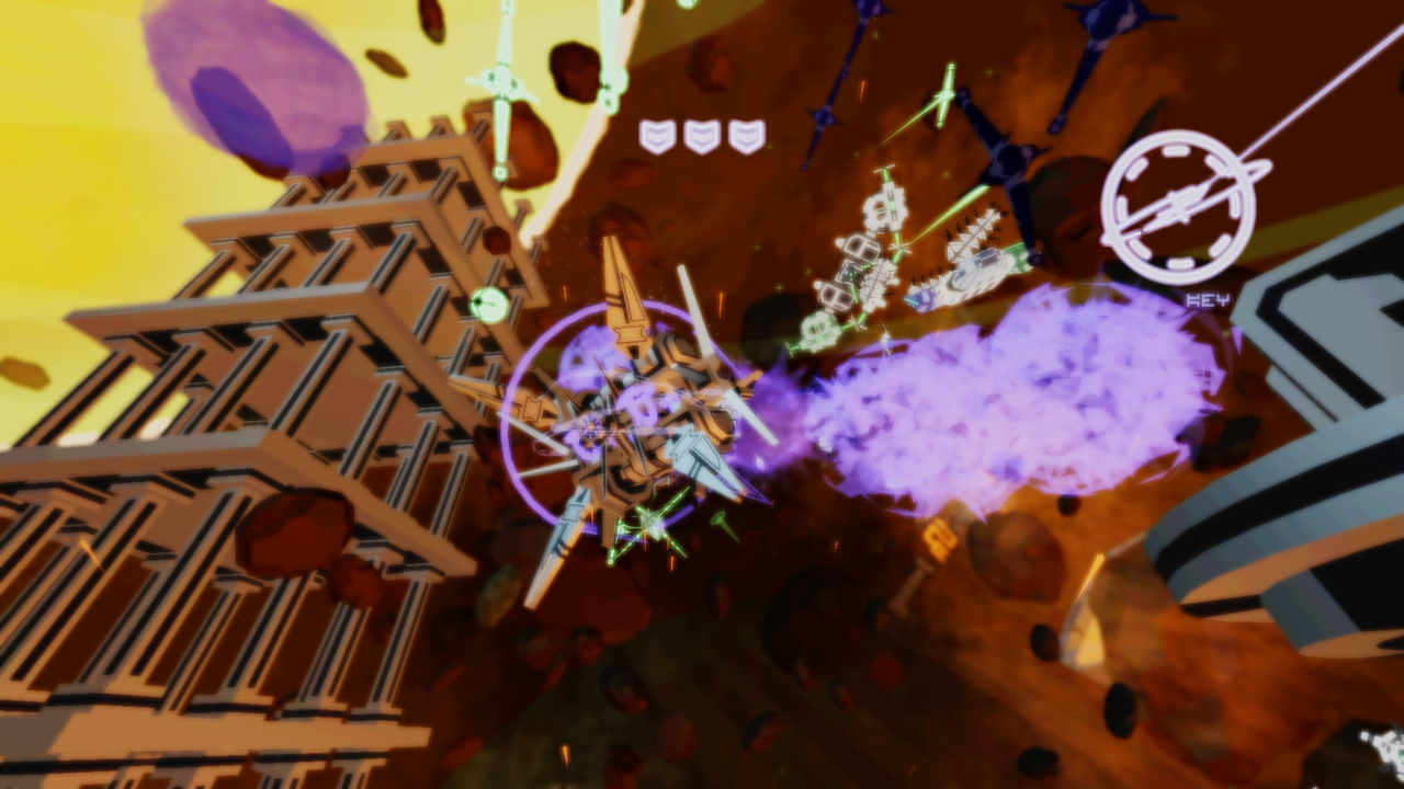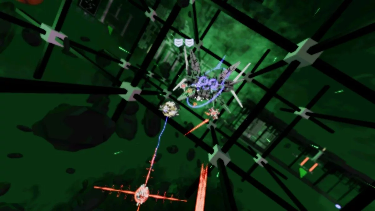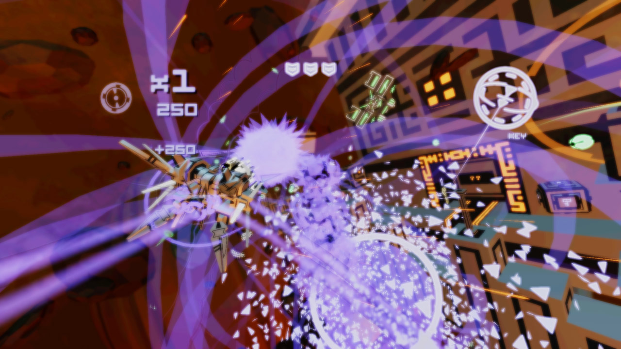 Ваша миссия, если вы решите её принять (а вы точно решите, ведь отказаться от такого безумия — грех!), — исследовать четыре уникальных уровня, каждый из которых представляет собой огромное поле боя, заполненное до краёв взрывоопасными врагами и их безумными паттернами атак. Ваша цель — найти двадцать компонентов прыжковых врат на каждом уровне, но, честно говоря, основная задача — просто выжить. Вас ждут гигантские боссы, которые заставят вас вспомнить все молитвы, и бесконечные волны дронов, стреляющих так плотно, что пробел на клавиатуре для ускорения станет вашим лучшим другом. Геймплей Kromaia — это чистый, нефильтрованный адреналин старой школы, перенесённый в футуристическое 3D-пространство. Это как если бы ТуХоу решила, что ей тесно в 2D, и отправилась покорять вселенную, захватив с собой всю свою фирменную красоту и безумие.