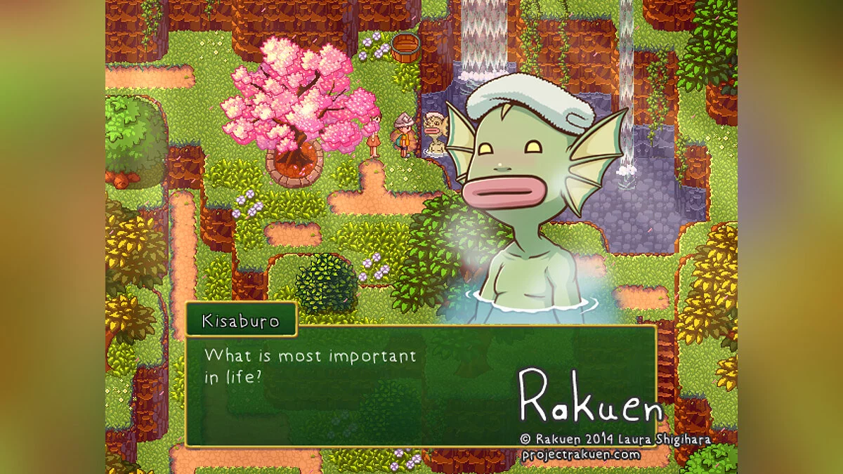Rakuen - это аркадная приключенческая игра про маленького мальчика, который живет в госпитале. Помогая своим соседям и другим жителям больницы мальчик таинственным образом взаимодействует и с фэнтезийным миром из его любимой книги. Конечная цель мальчика - заслужить желание, которое ему может даровать Хранитель леса.