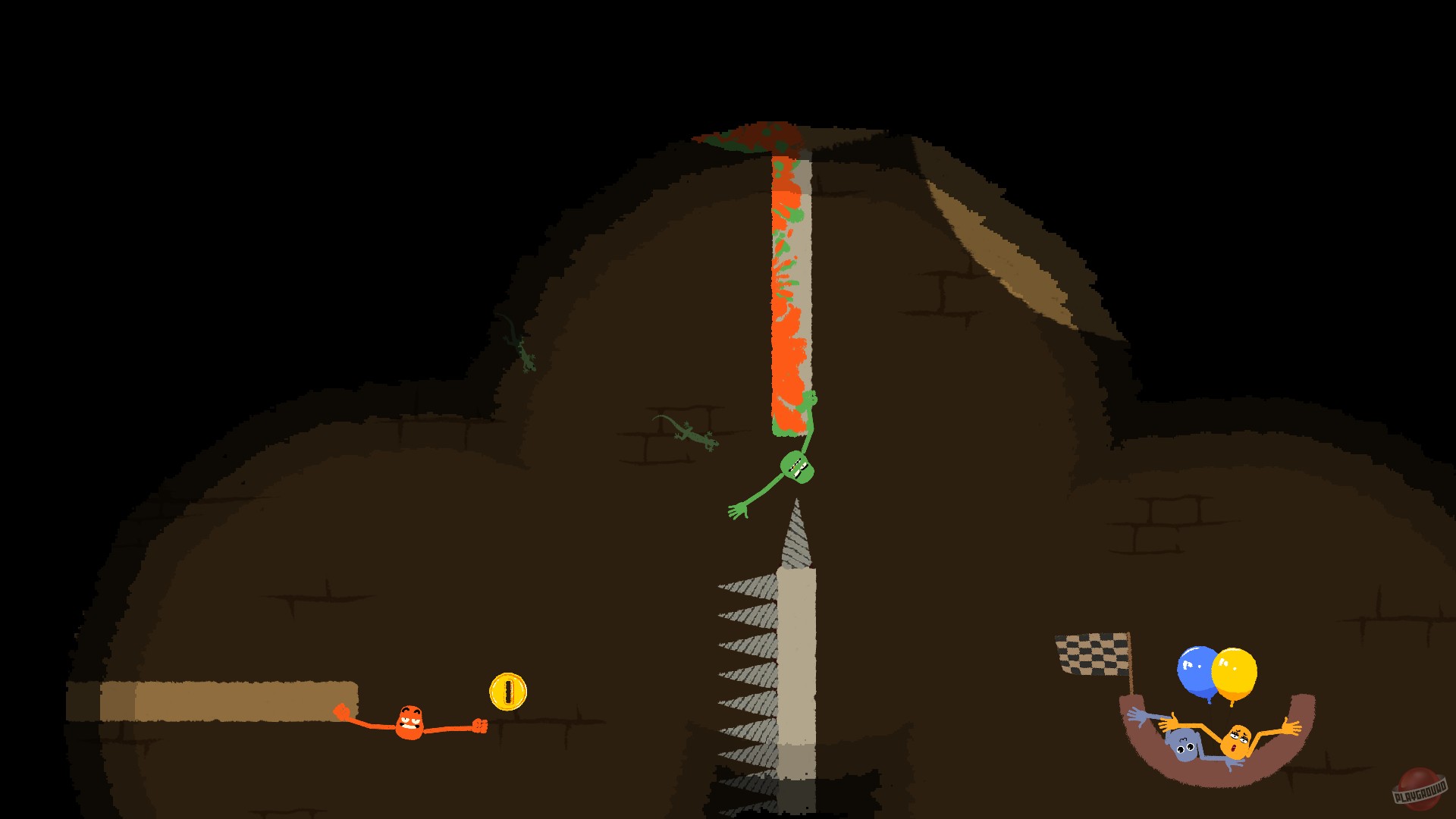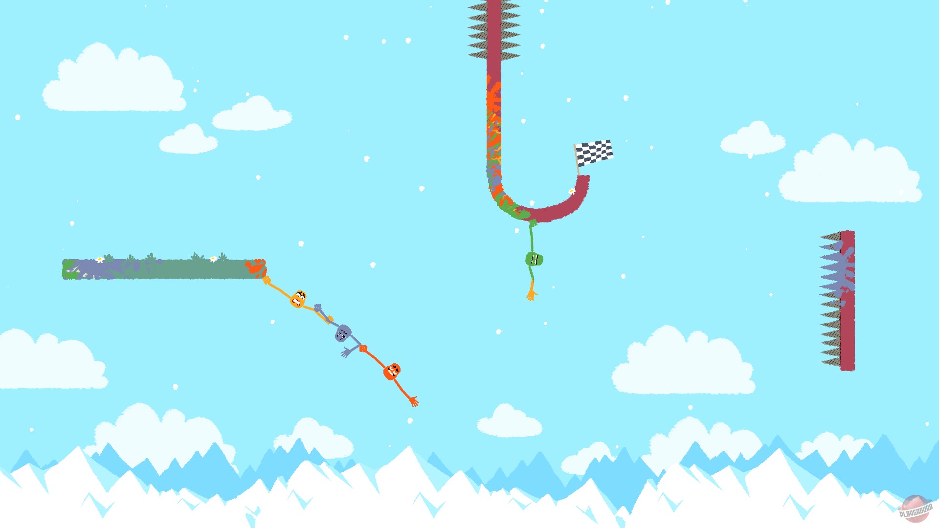 Геймплей Heave Ho настолько прост, насколько гениален: у вас есть две руки-хватачки и пара ножек для баланса. Ваша задача — перебраться от точки А к точке Б, используя только эти конечности. Звучит легко? Попробуйте сделать это, когда ваш лучший друг в панике хватает вас за голову вместо руки, а третий игрок уже готовится вас подкинуть прямо на шипы. Игра доступна как в локальном кооперативе на одном экране (couch co-op), так и онлайн через Steam Remote Play, что делает её идеальным выбором для вечеринок или для того, чтобы проверить, кто из ваших друзей на самом деле ваш друг. Каждый уровень — это новая головоломка, требующая слаженной работы команды, идеального тайминга и, конечно же, чувства юмора, потому что без смеха здесь не обойтись.