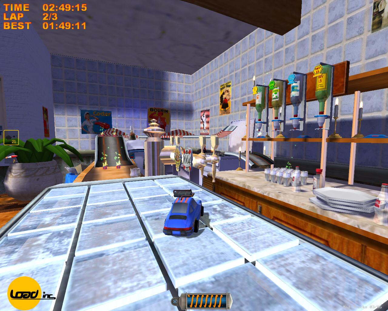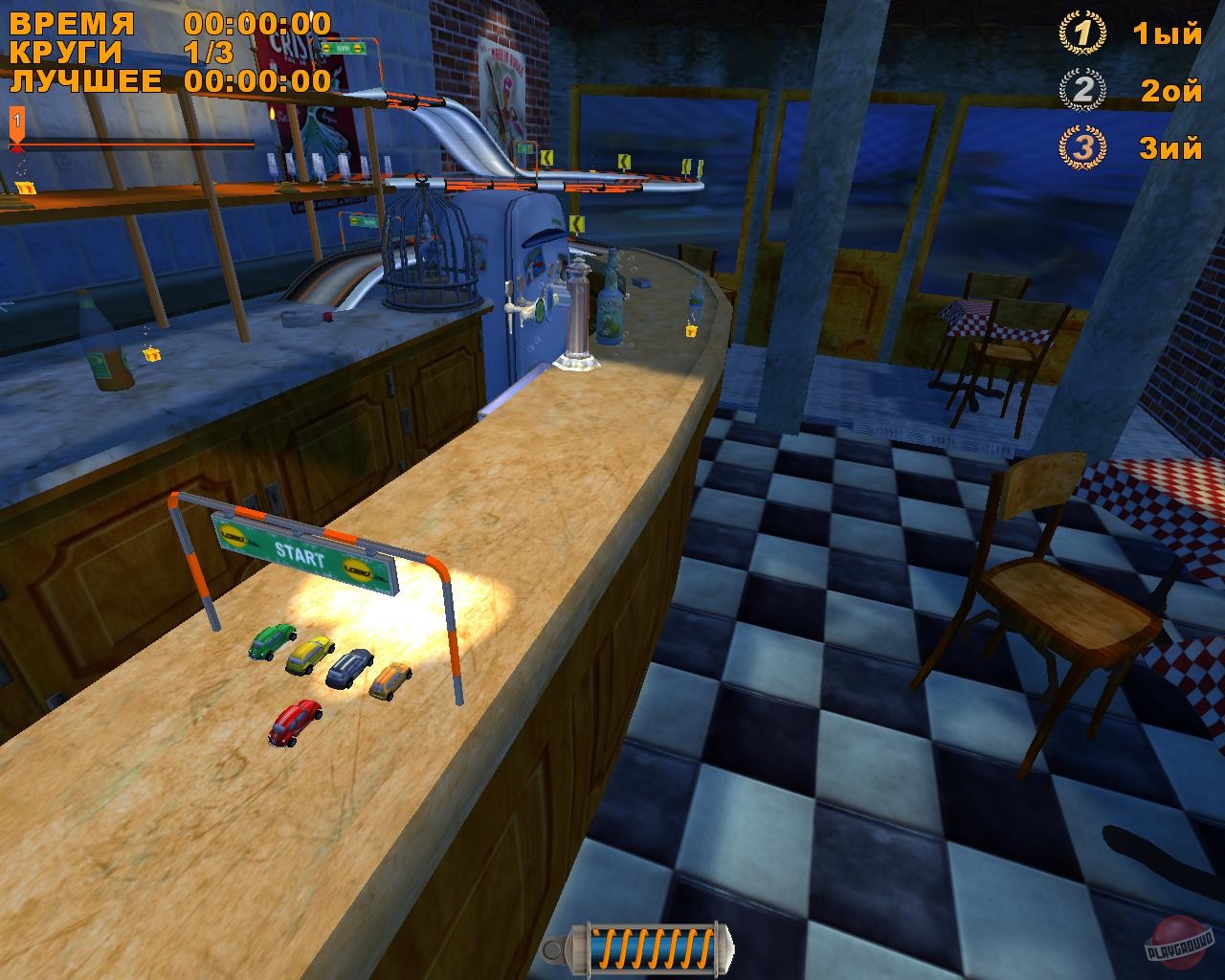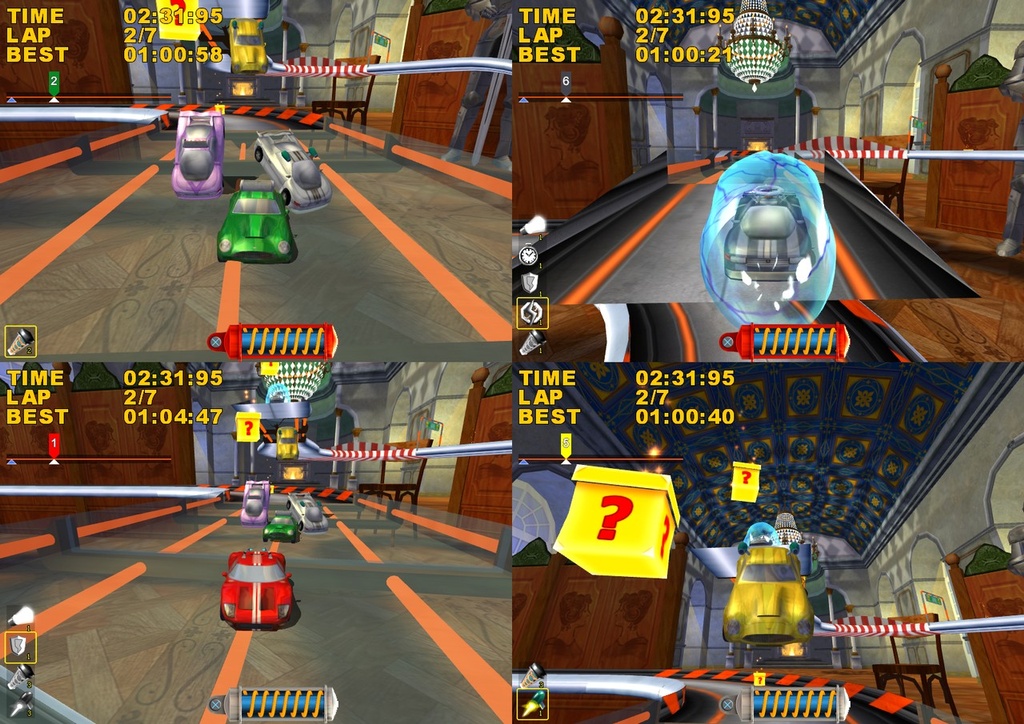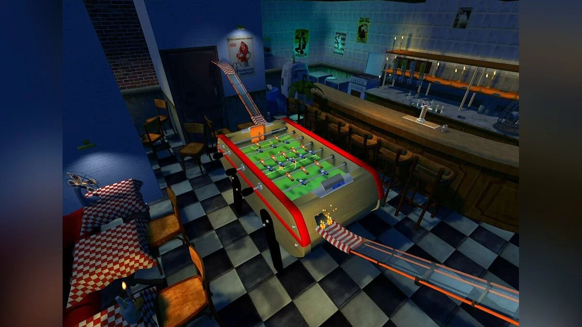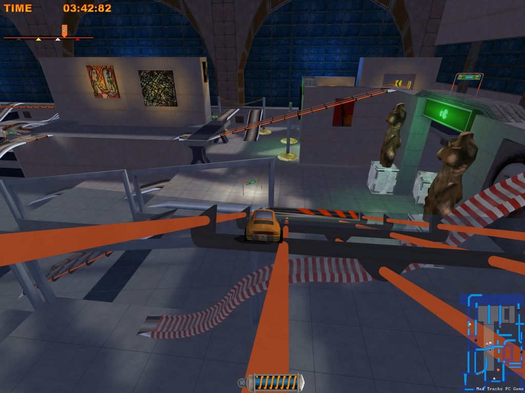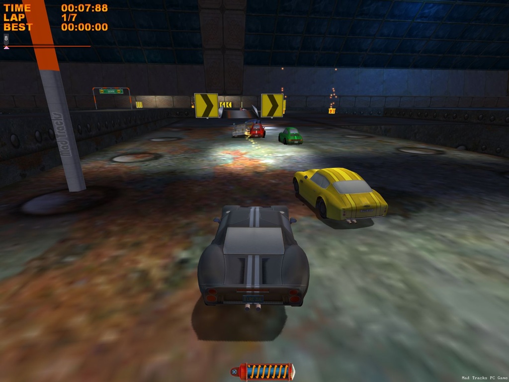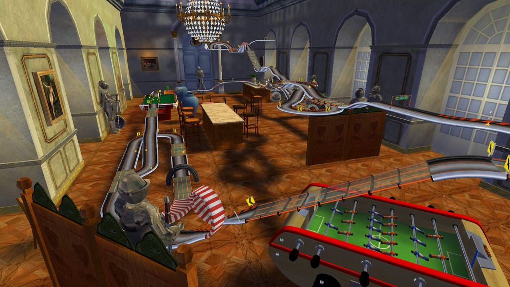 Забудьте всё, что вы знали о гонках! В Mad Tracks вас ждут не асфальтированные трассы Формулы-1, а настоящий хаотичный марафон по гигантским интерьерам, где ваш болид — это крошечная заводная машинка. Представьте: вы мчитесь на полной скорости через роскошную гостиную, делаете сальто на журнальном столике, пролетаете над диваном и устраиваете фейерверк из ракет прямо в баре, закрытом на ночь. Это не просто аркадные гонки, это безумное приключение в мире, где все предметы обихода превращаются в элементы сумасшедшего автодрома. Если вы всегда мечтали устроить гоночный апокалипсис на кухне или устроить погоню по крышам небоскрёбов в миниатюре, то эта игра — ваш идеальный выбор.