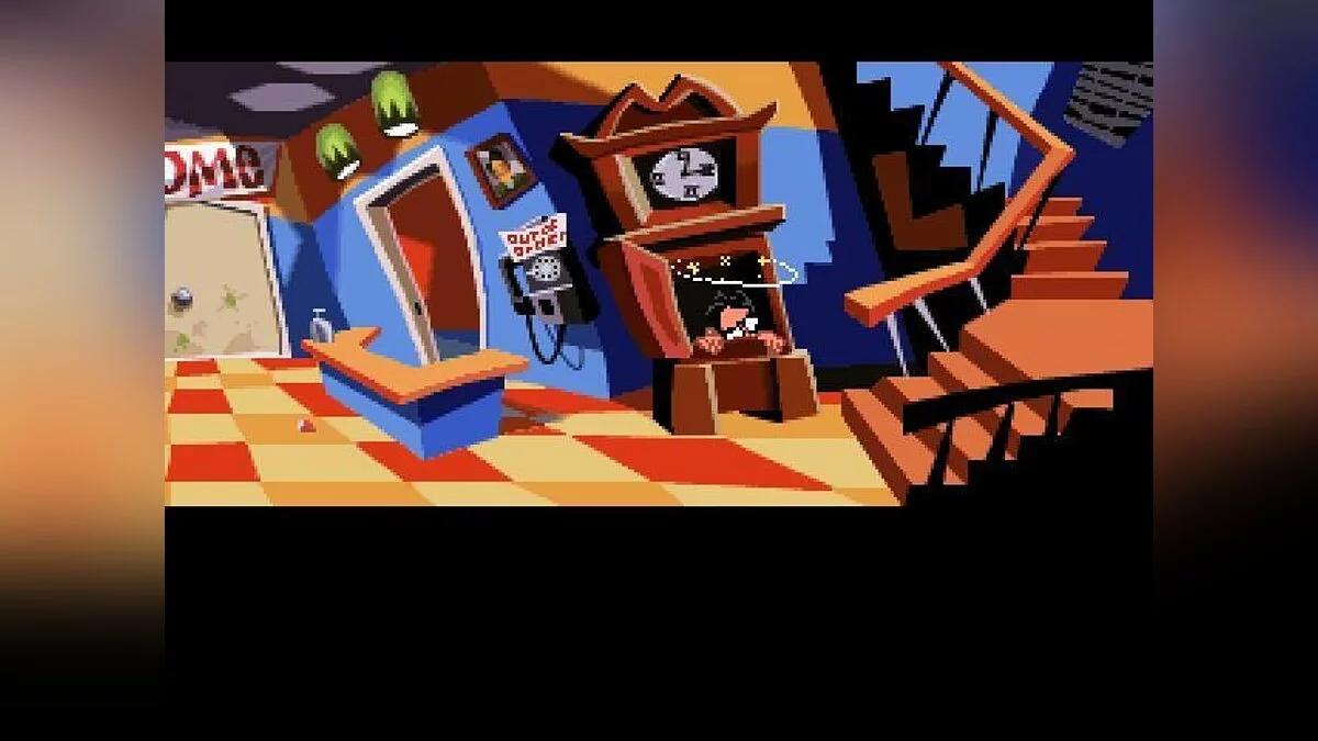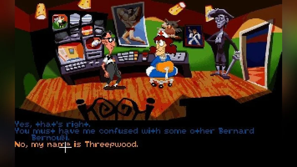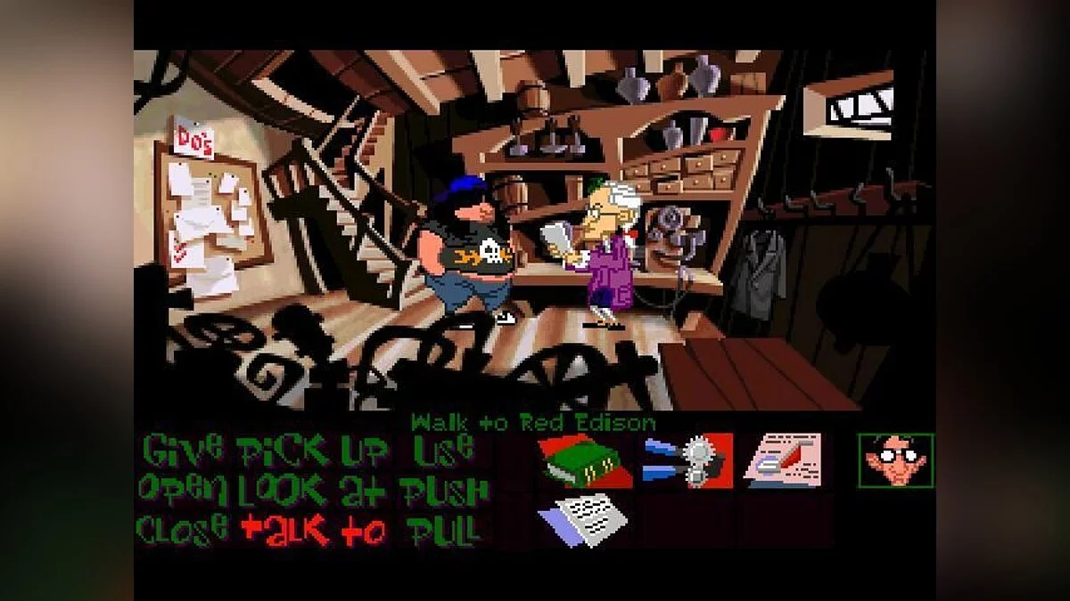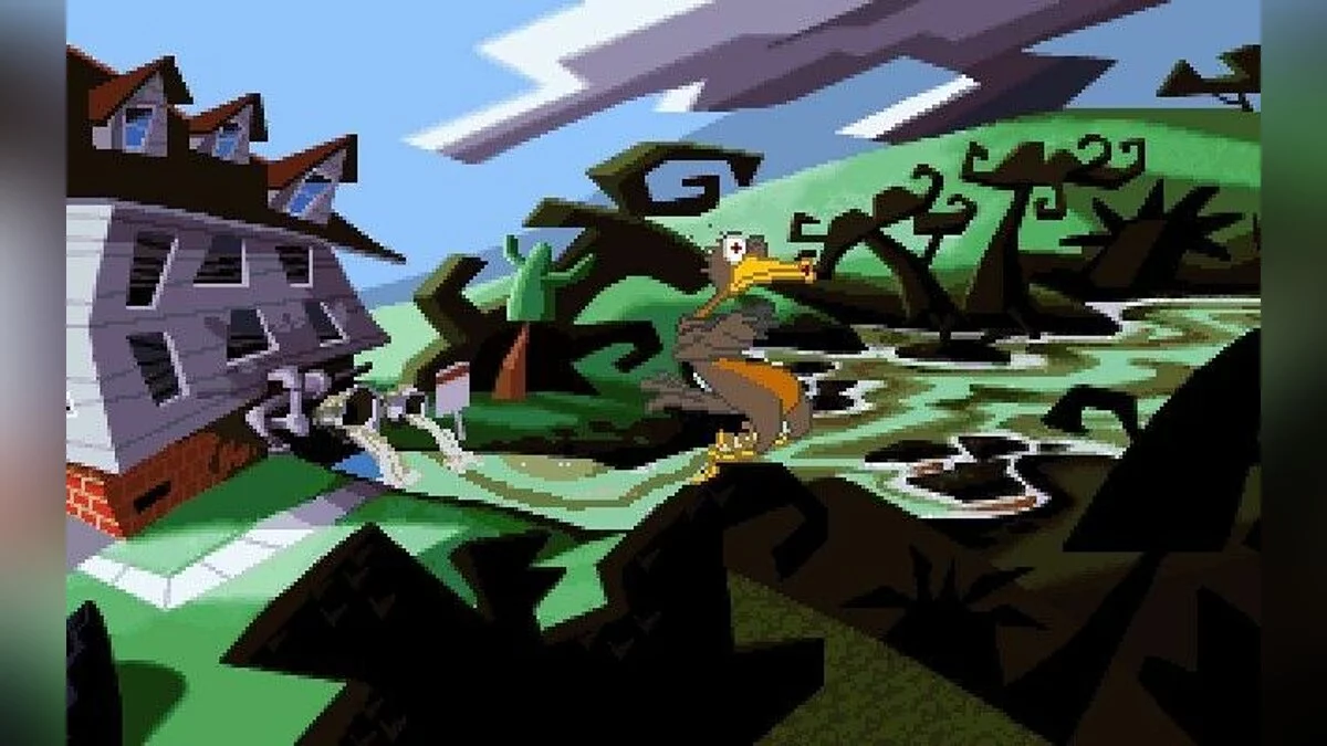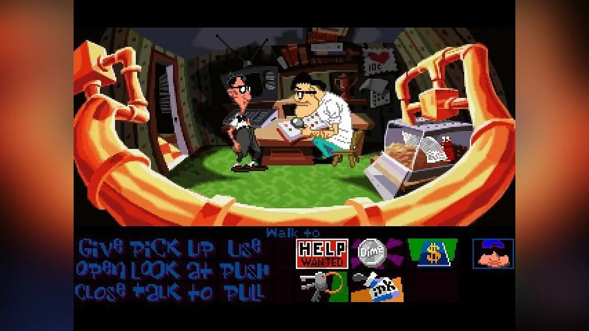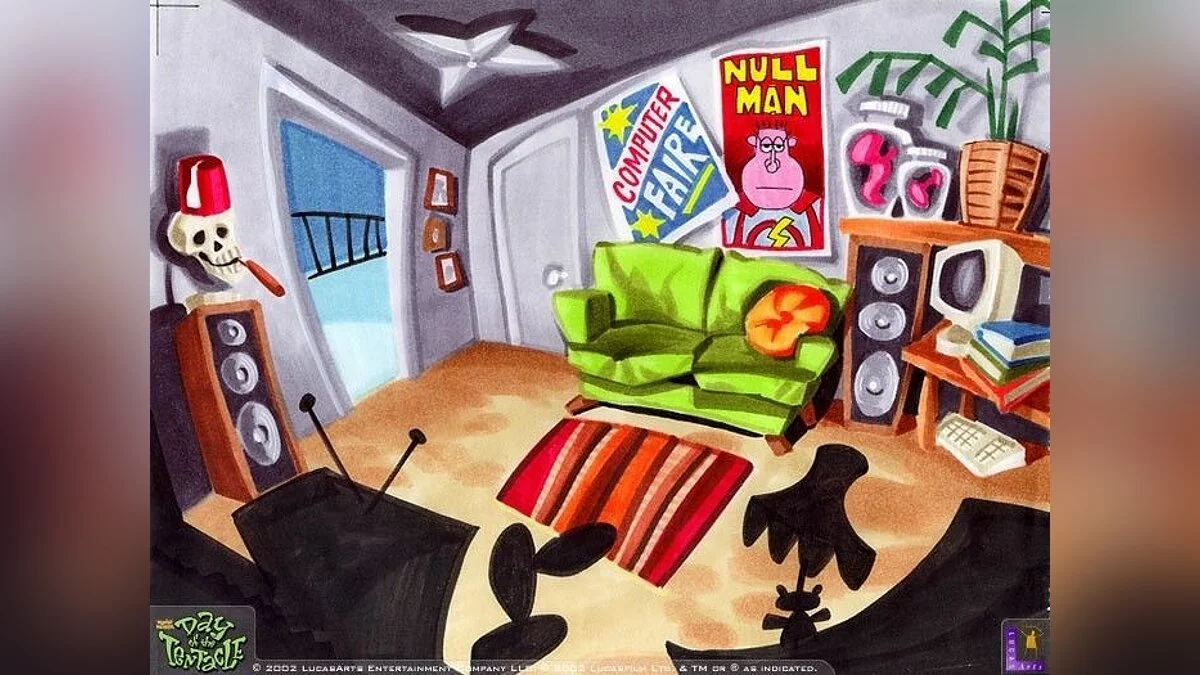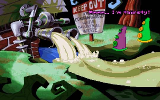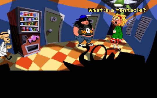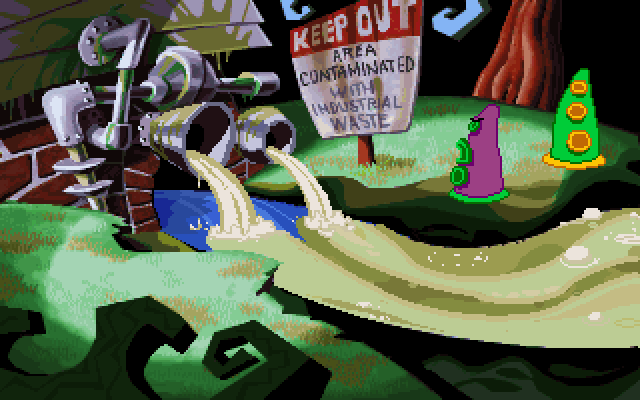 Day Of The Tentacle - одна из известнейших компьютерных игр жанра "квест", продолжение Maniac Mansion. По сюжету прошло три месяца с момента проишествия с Пурпурным метеоритом. Фиолетовое щупальце выпивает воду из реки в которую смывались токсичные отходы, в результате чего мутирует и решает захватить мир